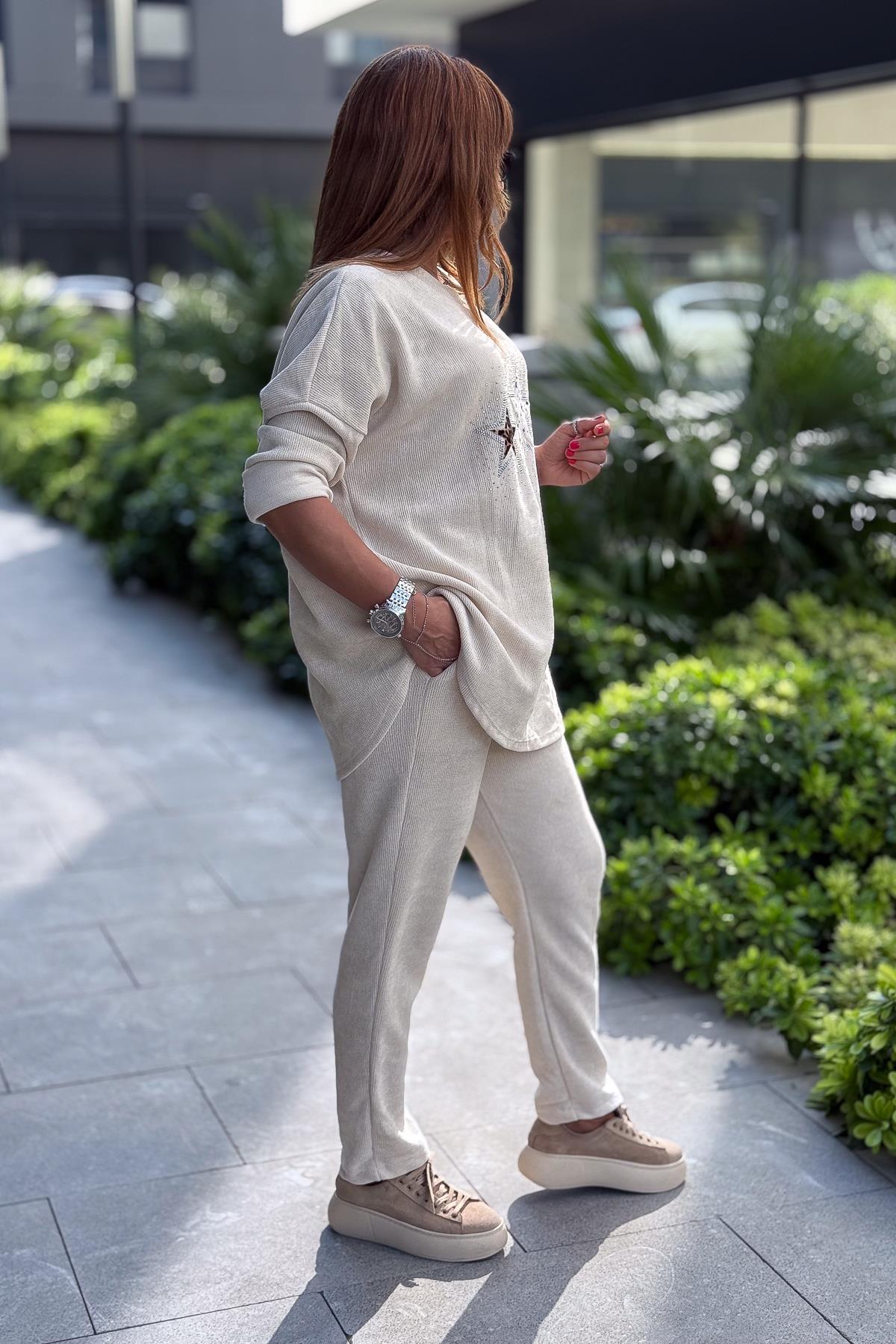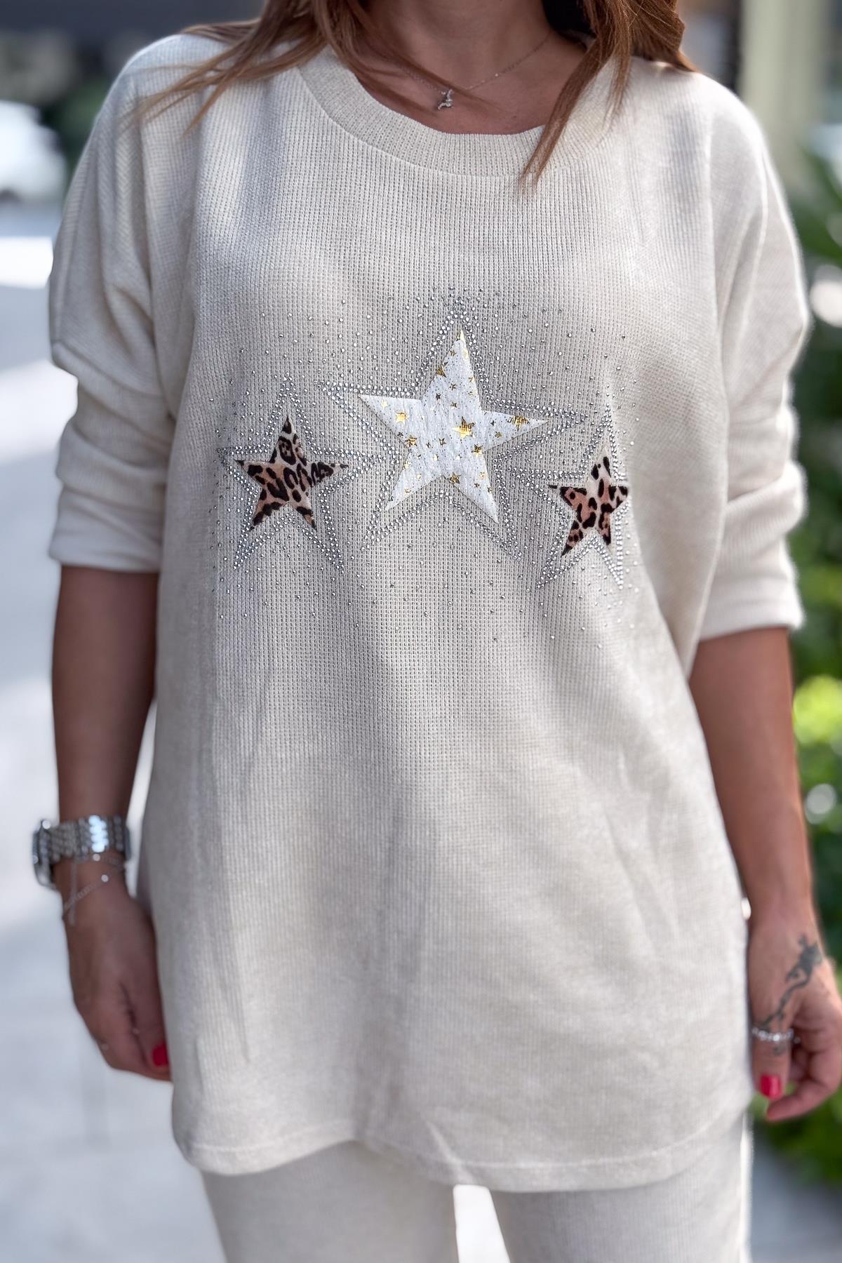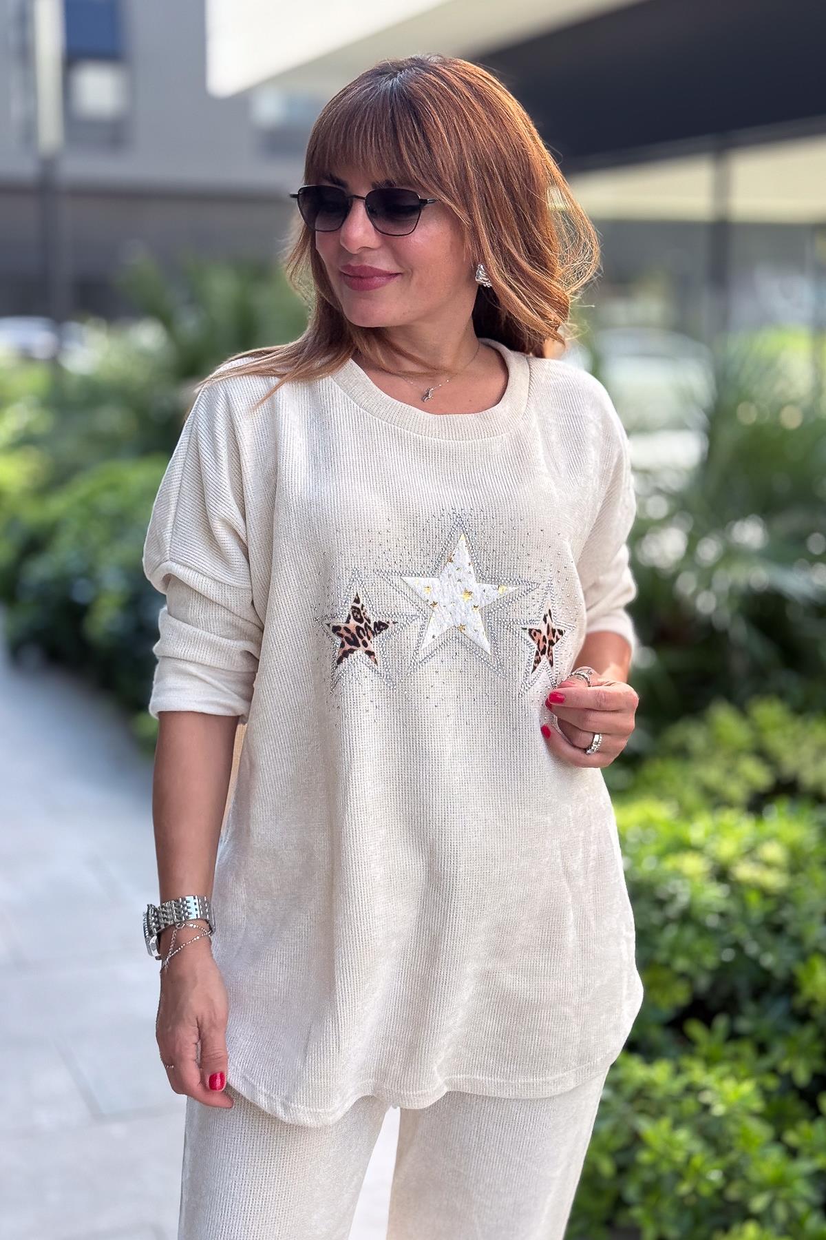 3 Yıldızlı Yuvarlak Yaka Kadife Sweet Krem Renk