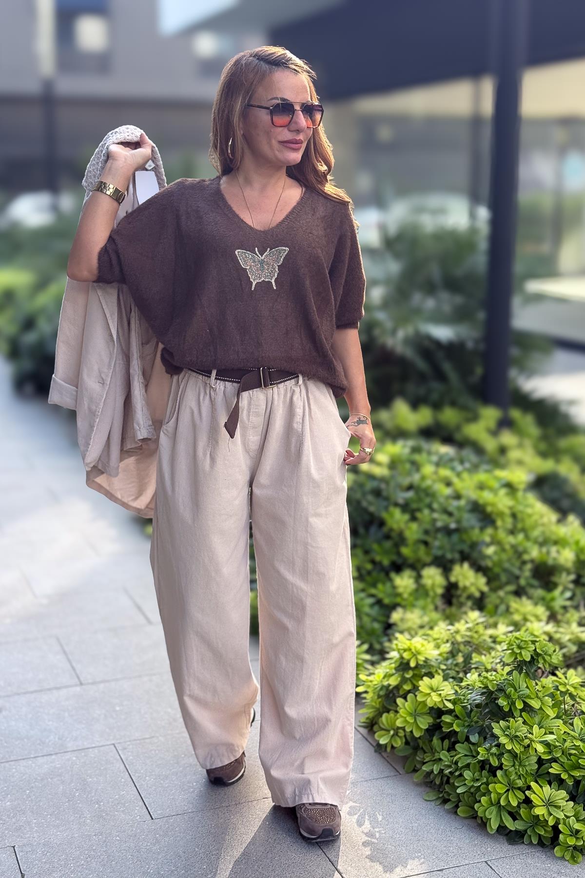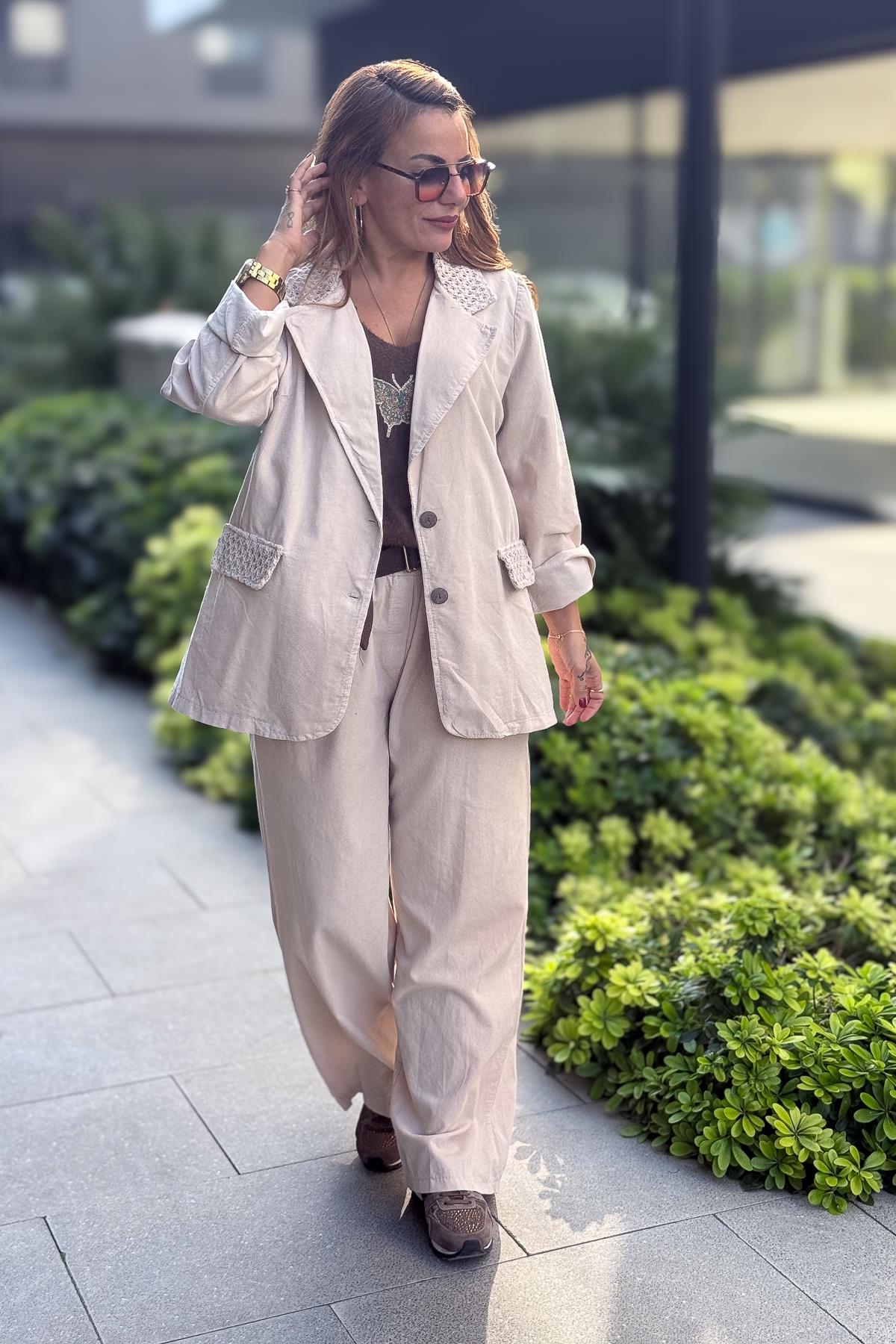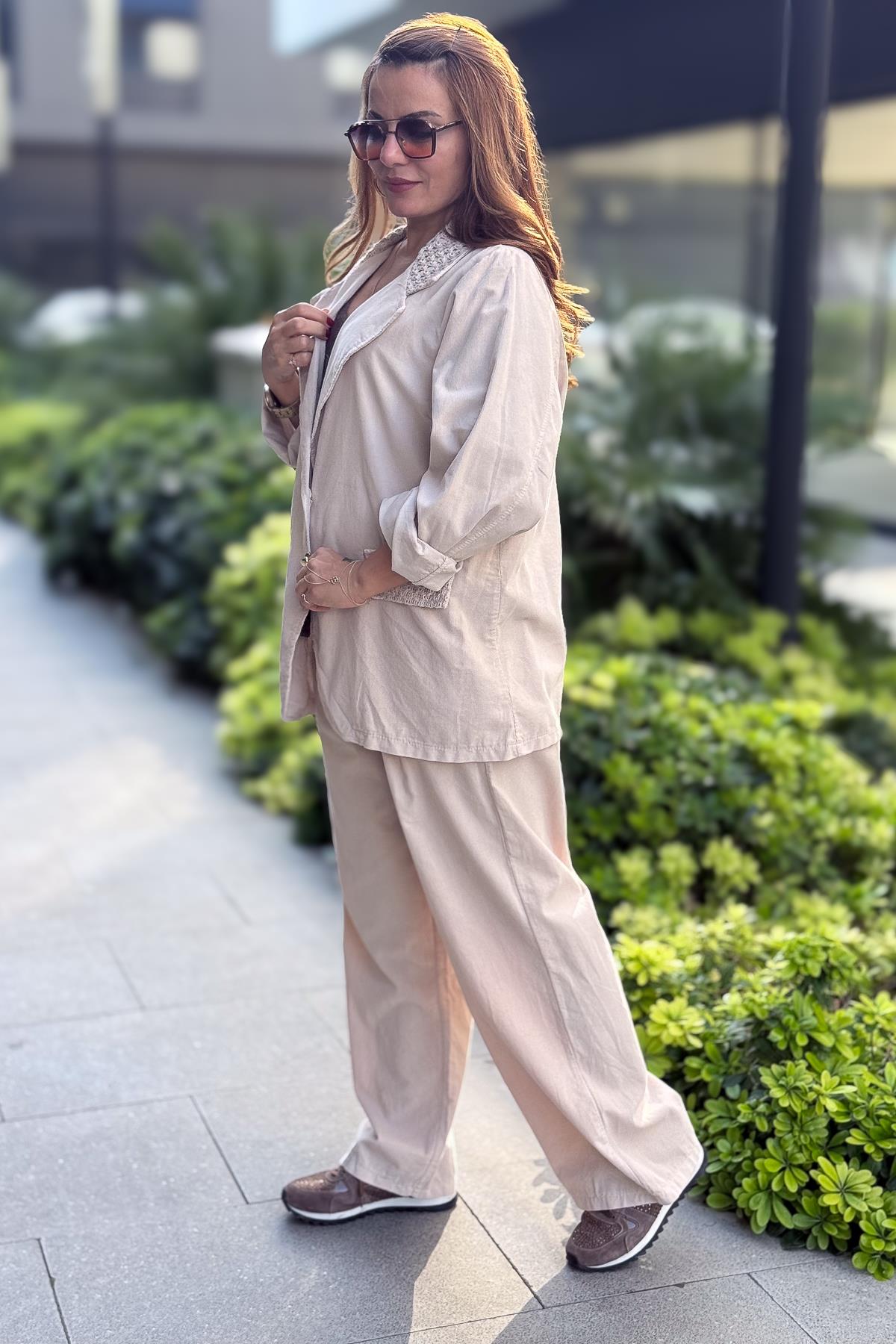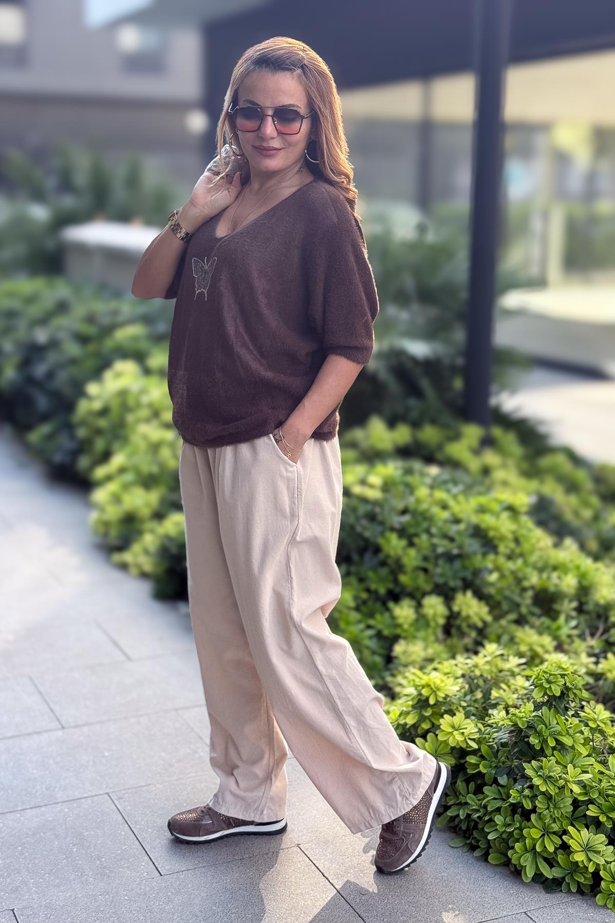 Bol Paça Geniş Kalıp İnce Fitilli Kadife Pantolon Krem Renk