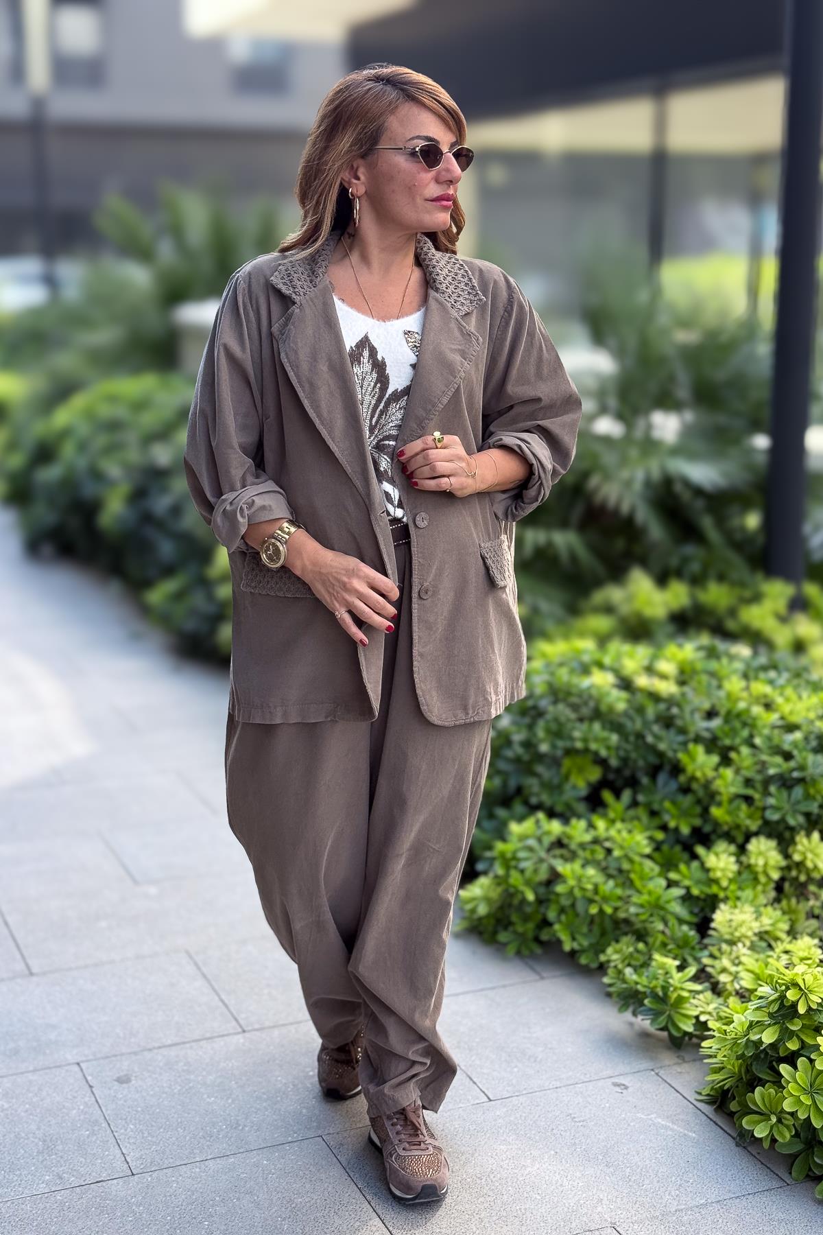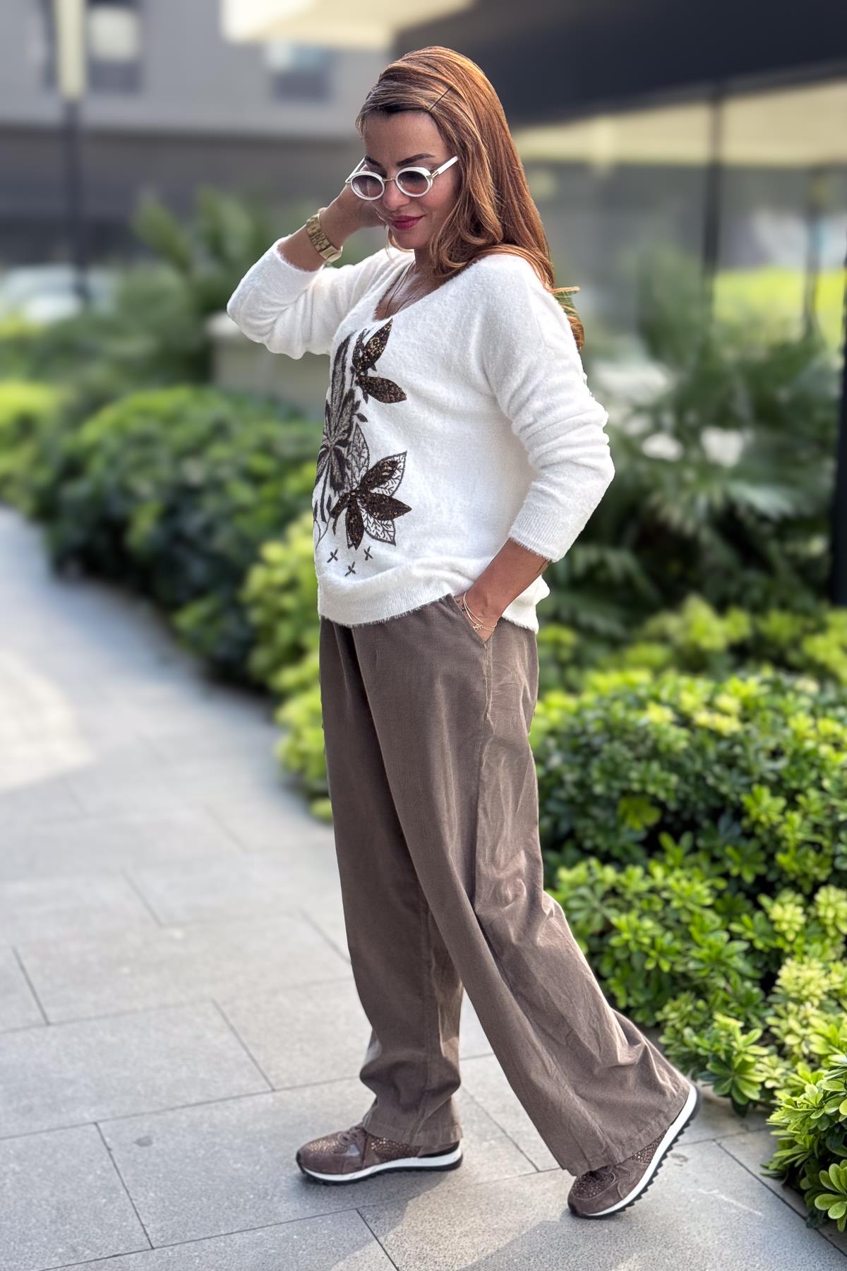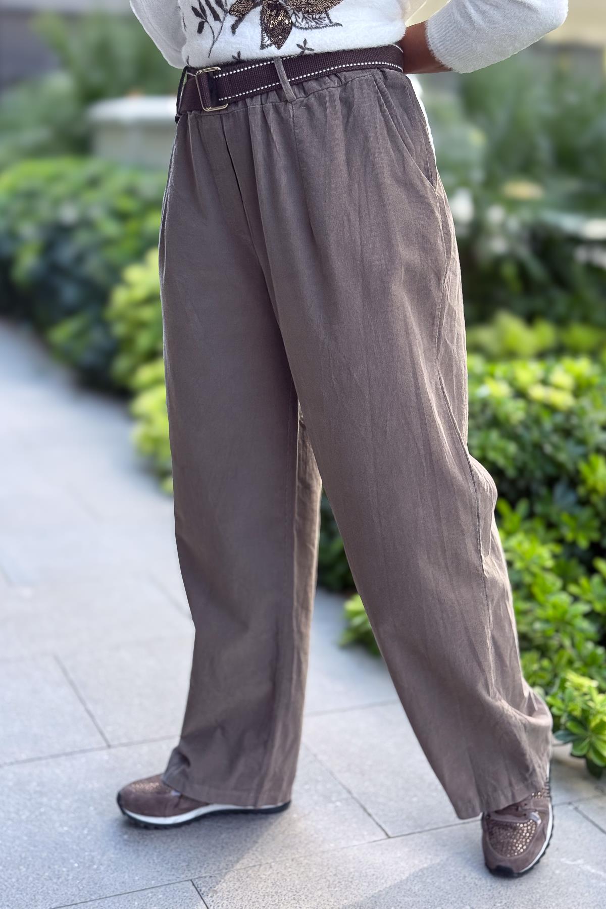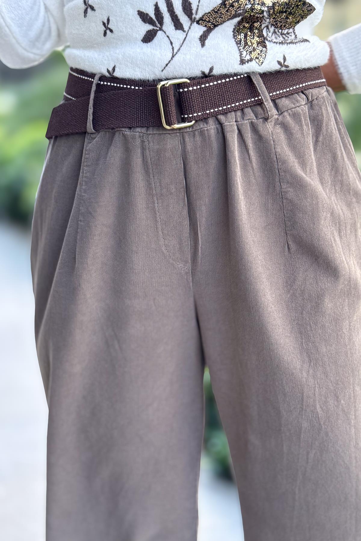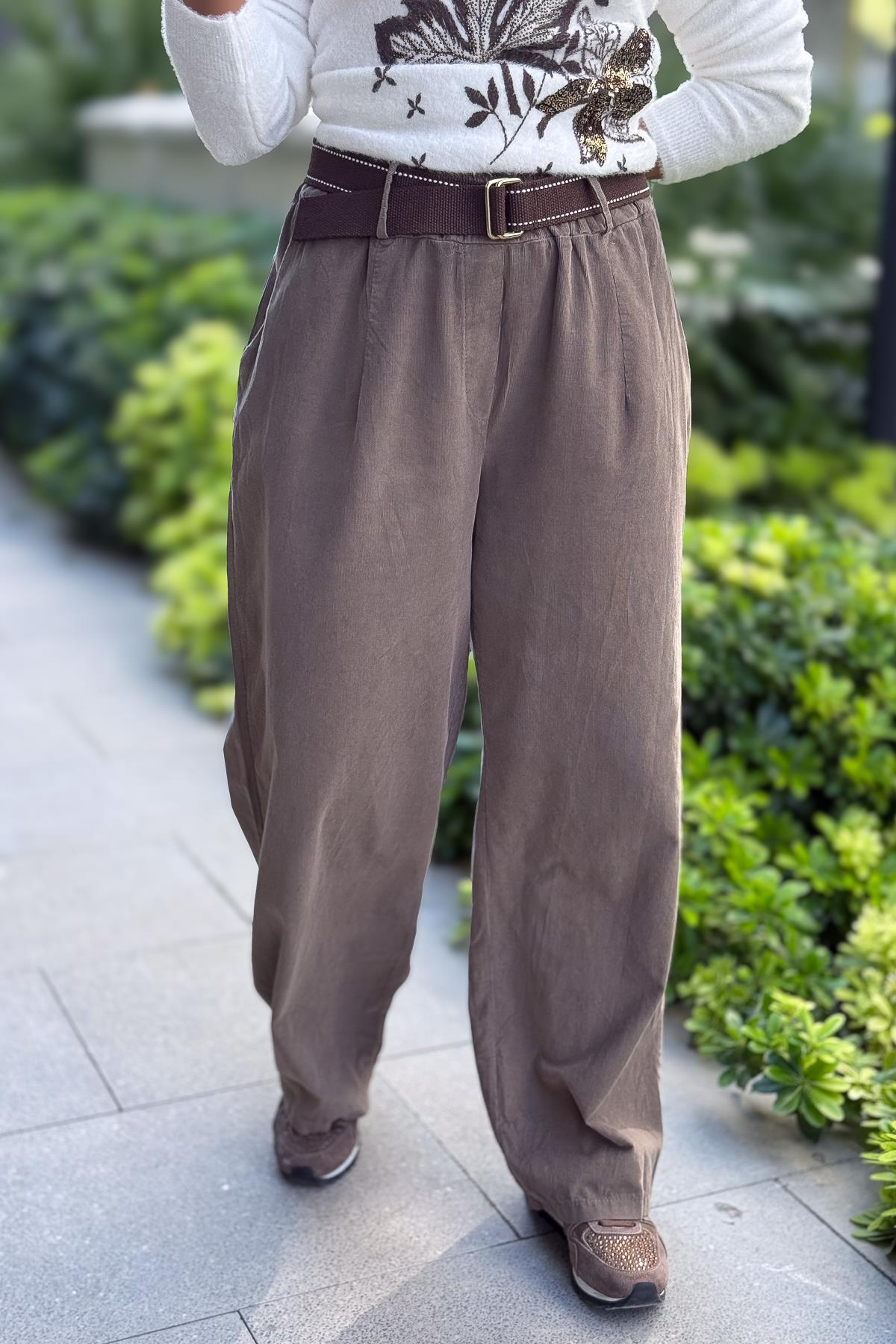 Bol Paça Geniş Kalıp İnce Fitilli Kadife Pantolon Vizon Renk