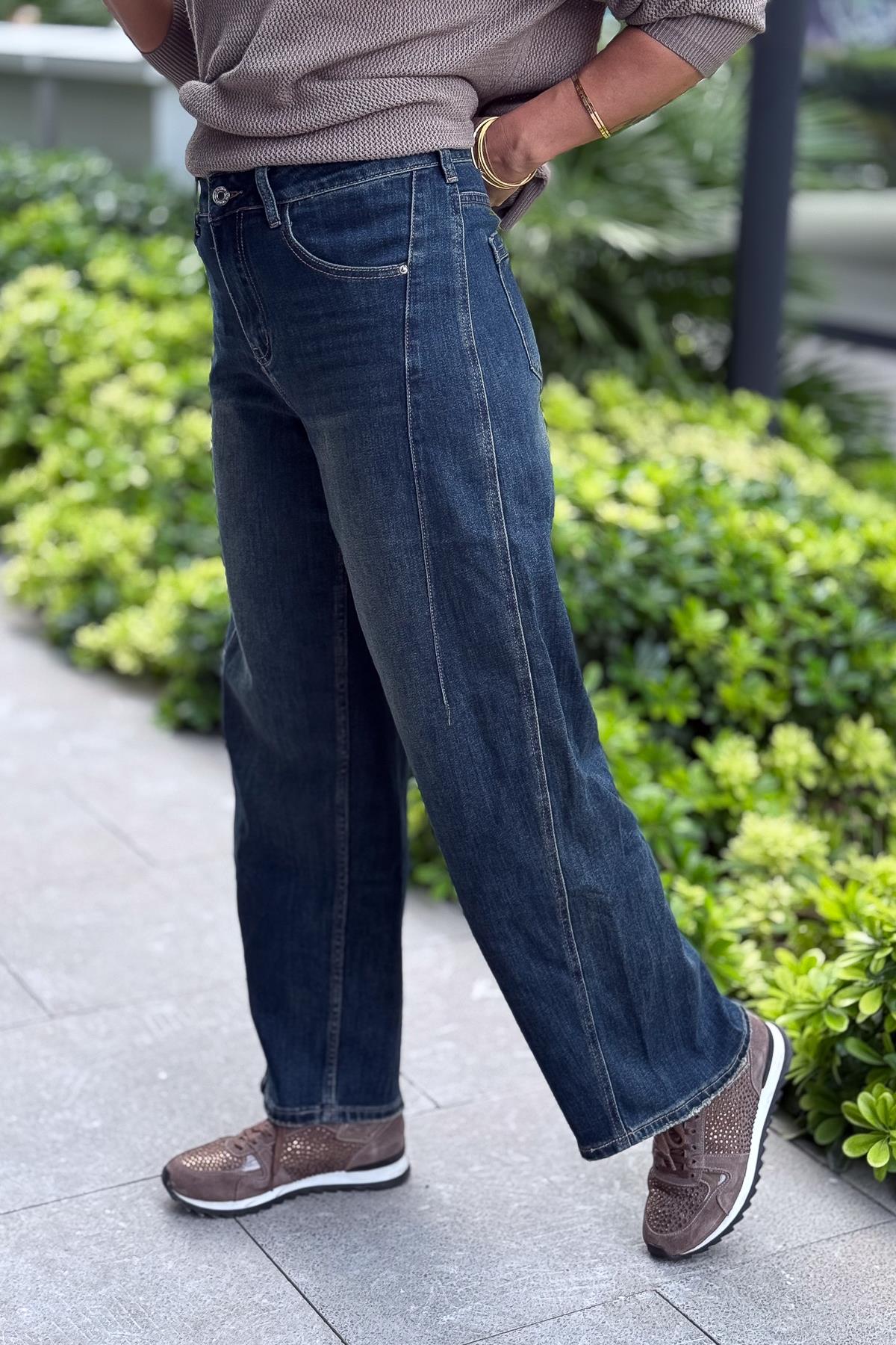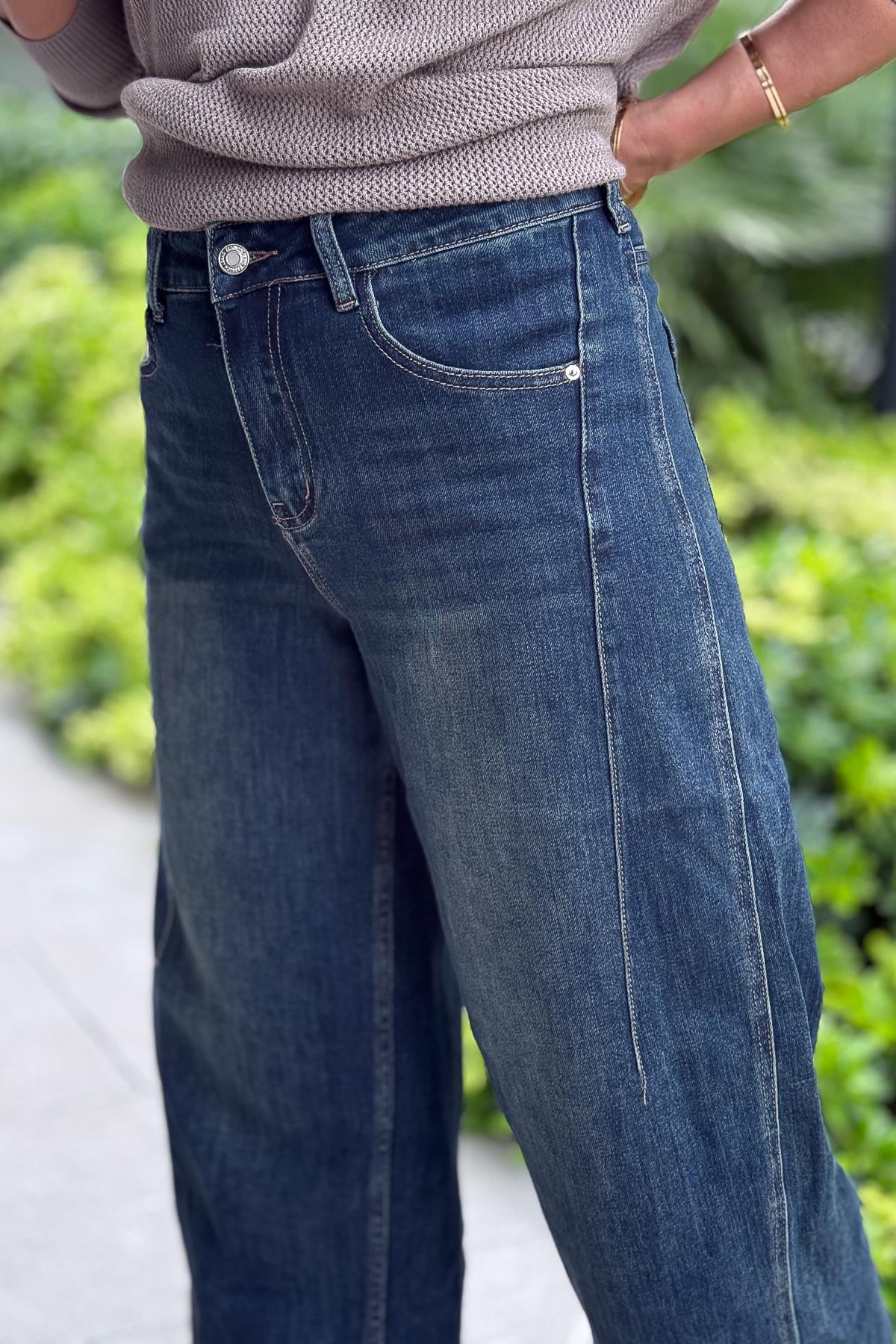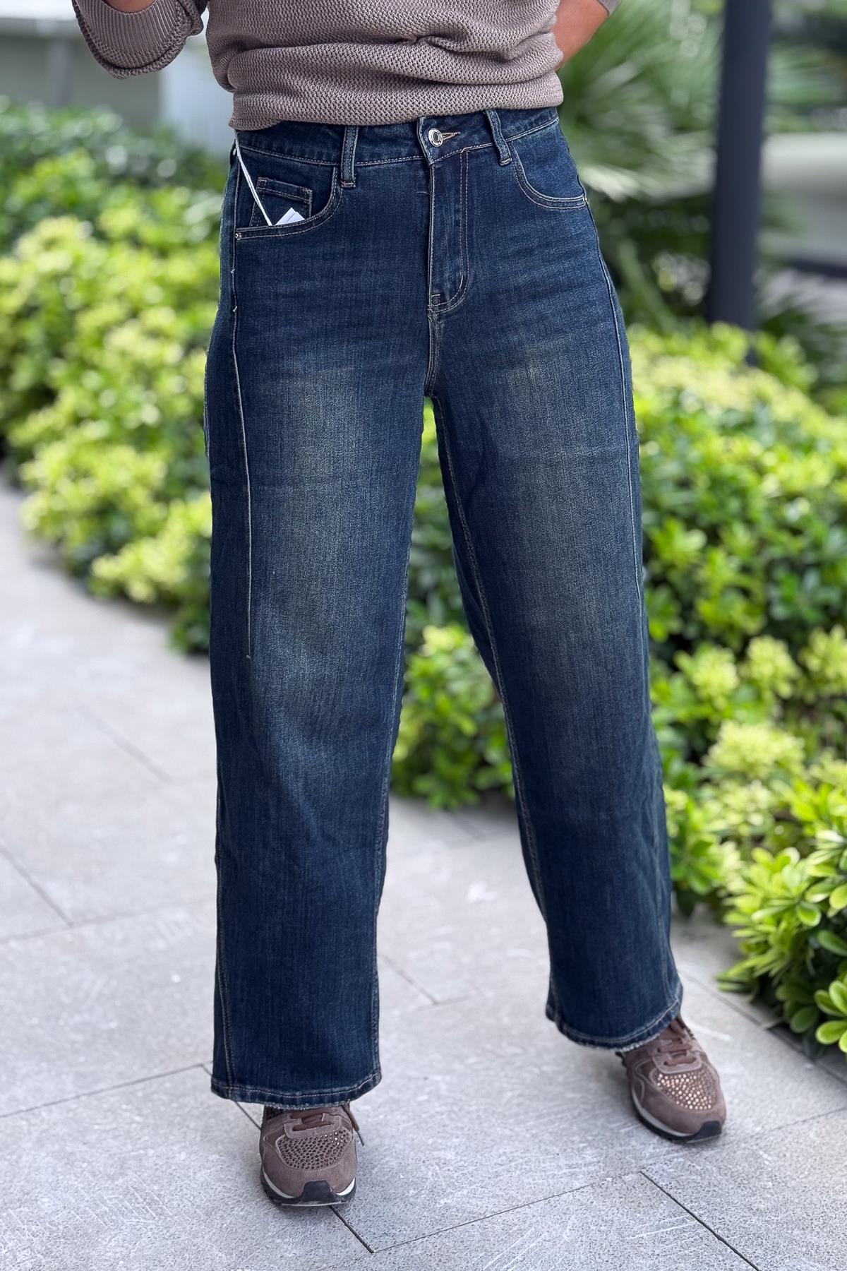 Boru Paça Eskitmeli Kot Pantolon Koyu Mavi Renk