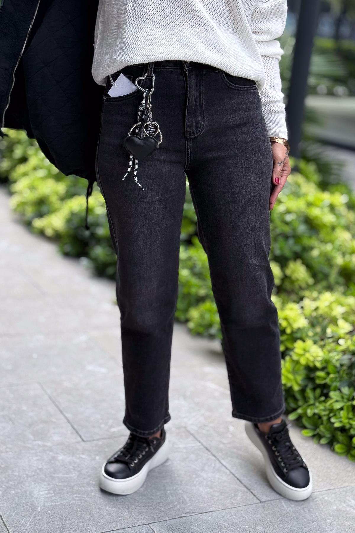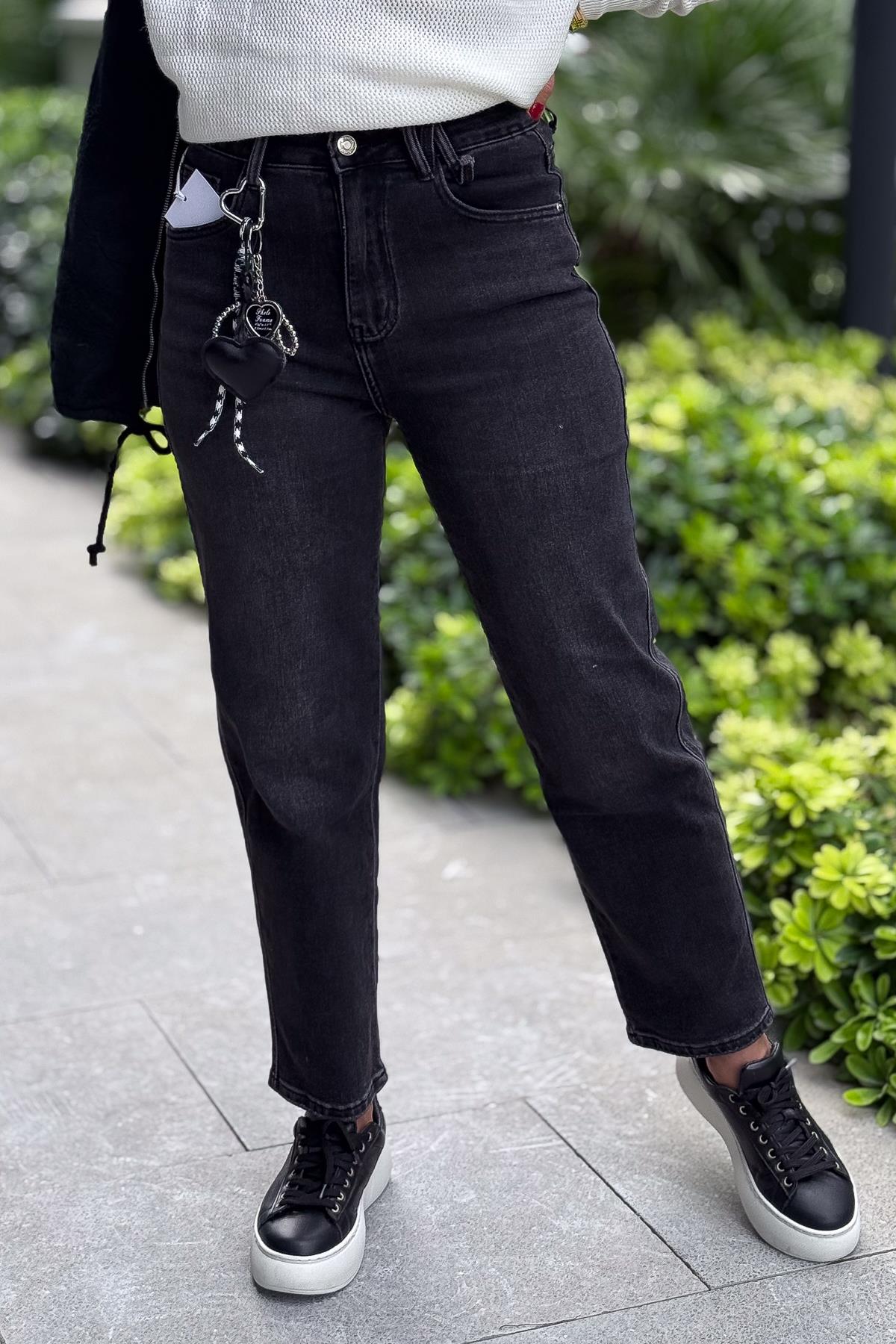 Boyfriend Aksesuarlı Basic Kot Pantolon Siyah Renk