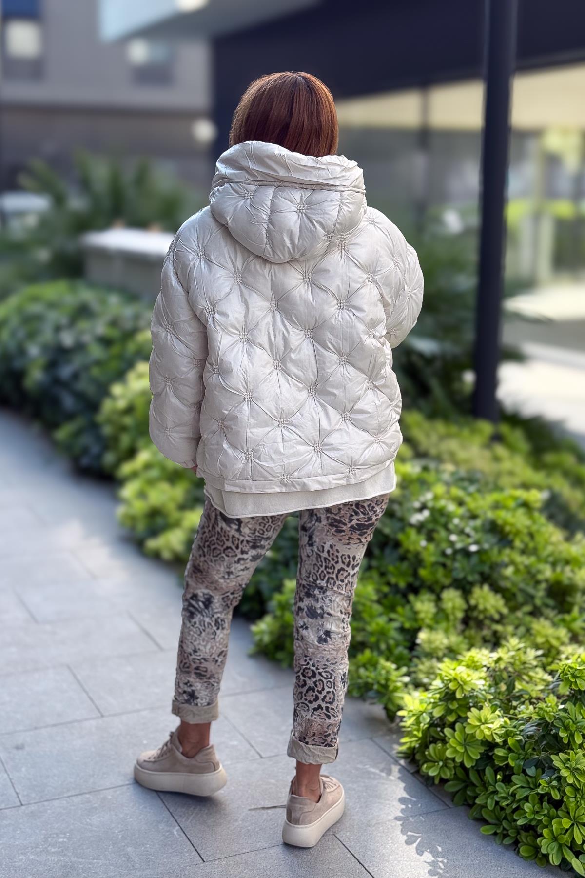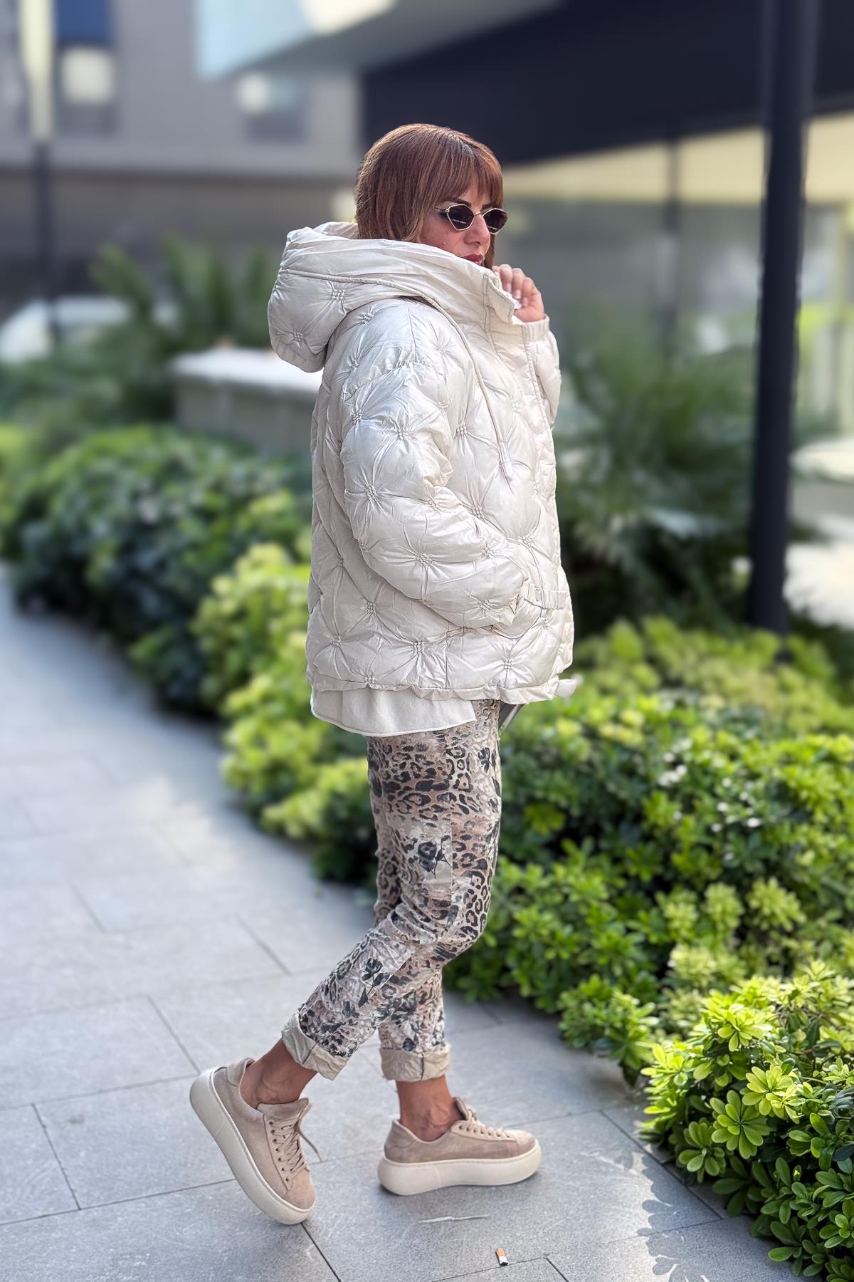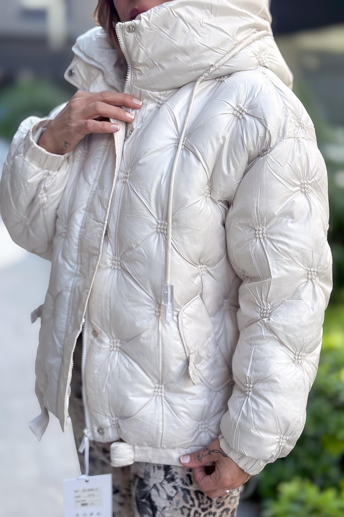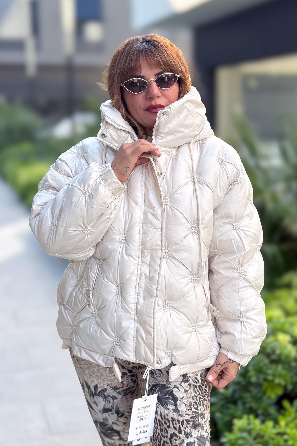 Büzgülü Kapitone Şişme Mont Krem Renk