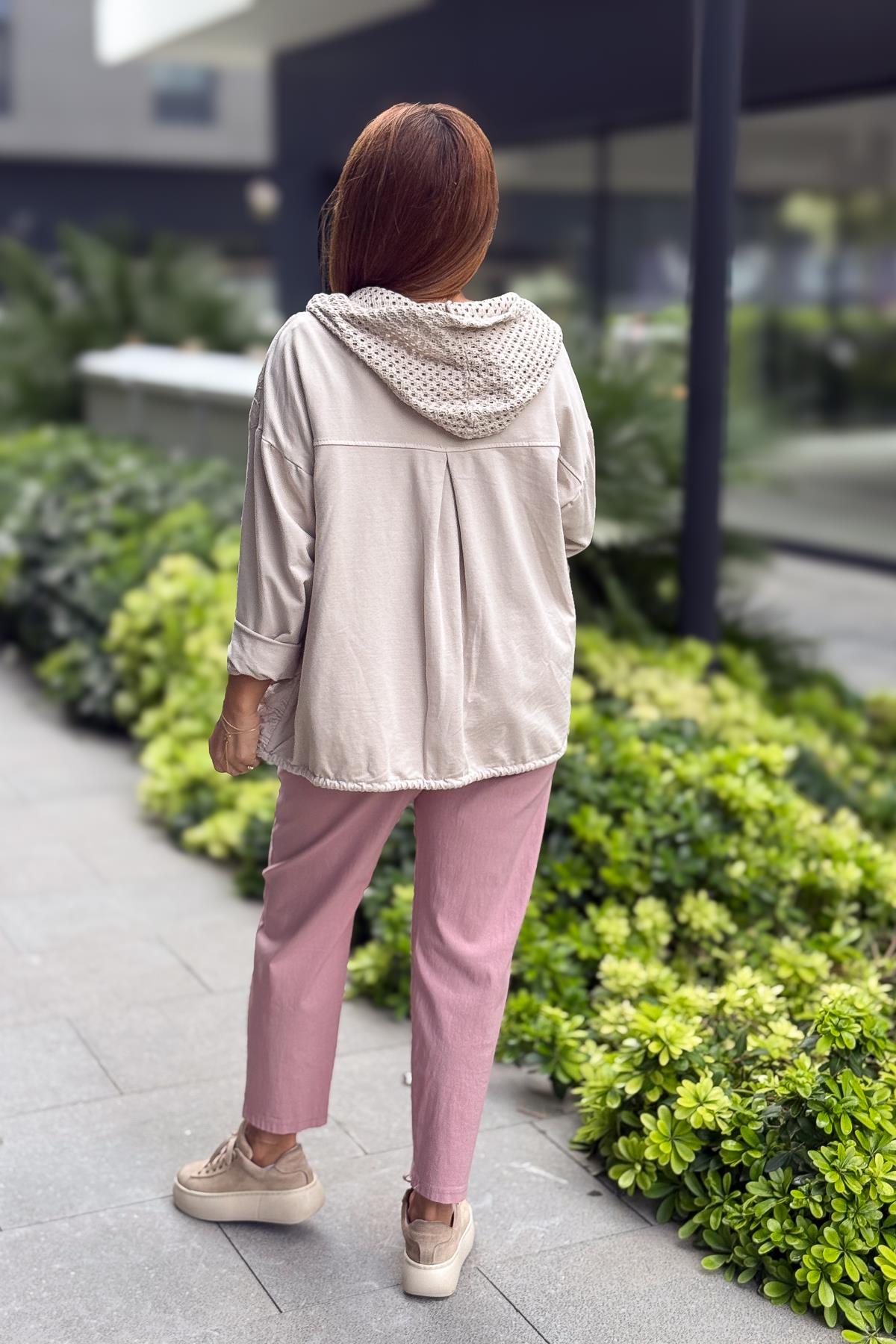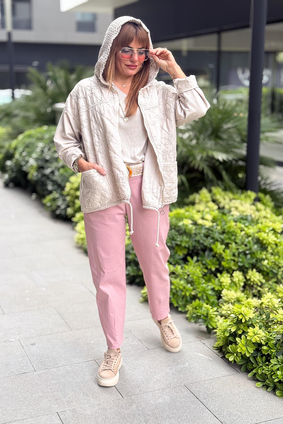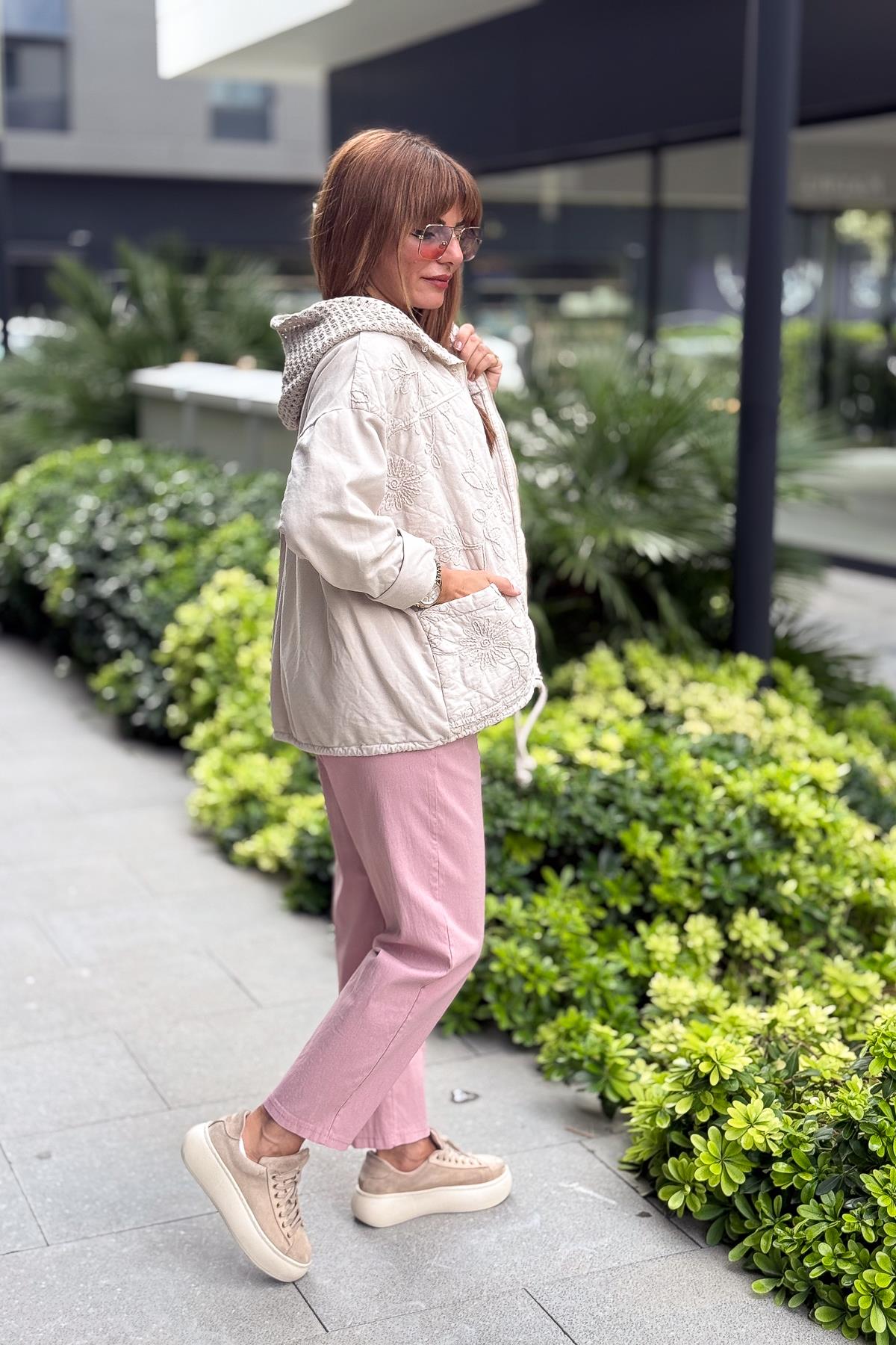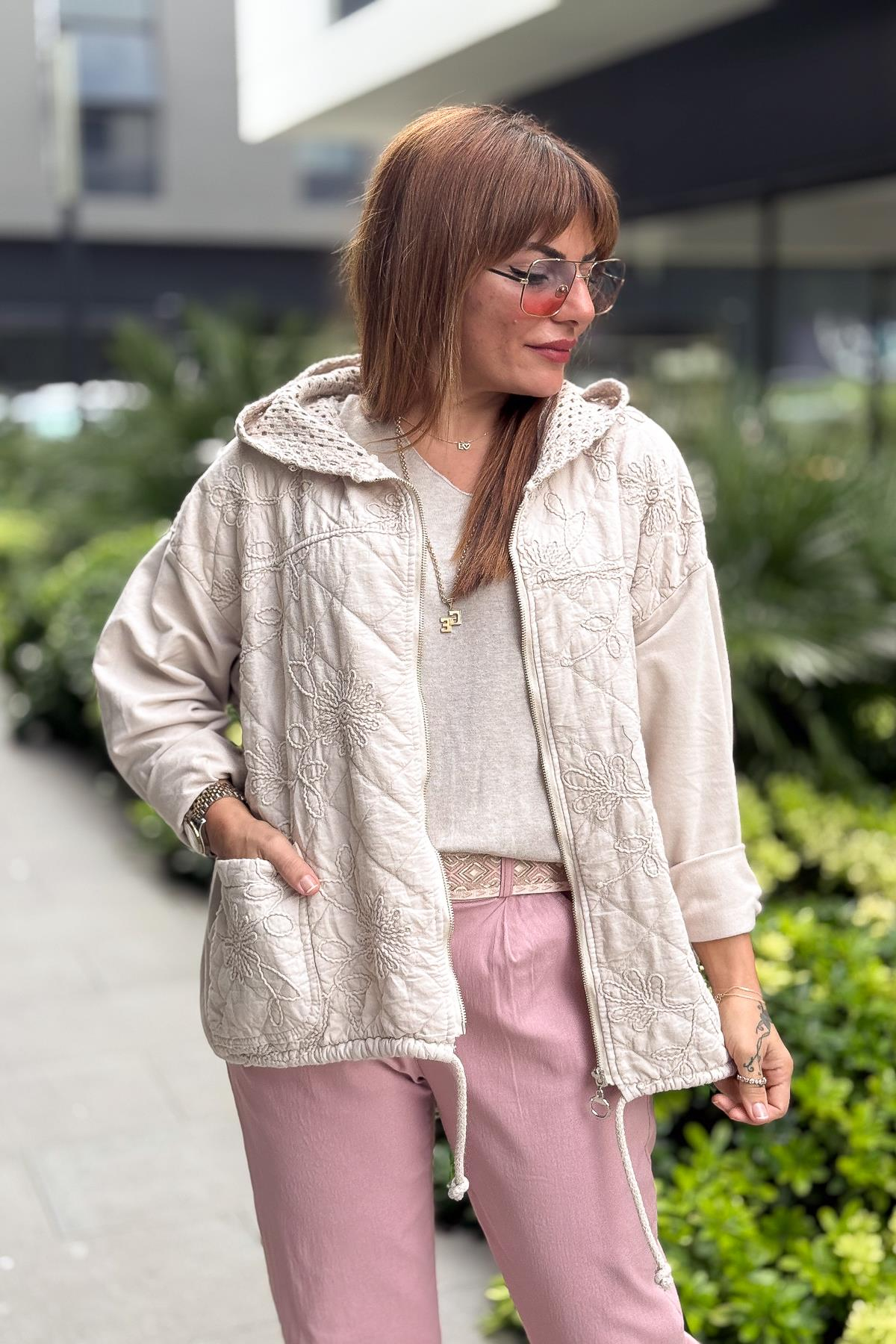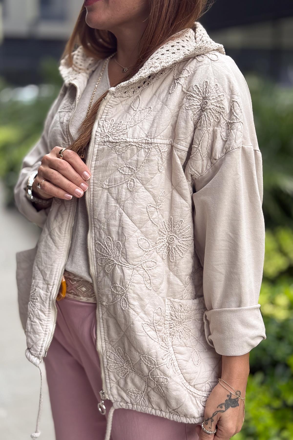 Çiçek Desenli Kapitone Ceket Bej Renk