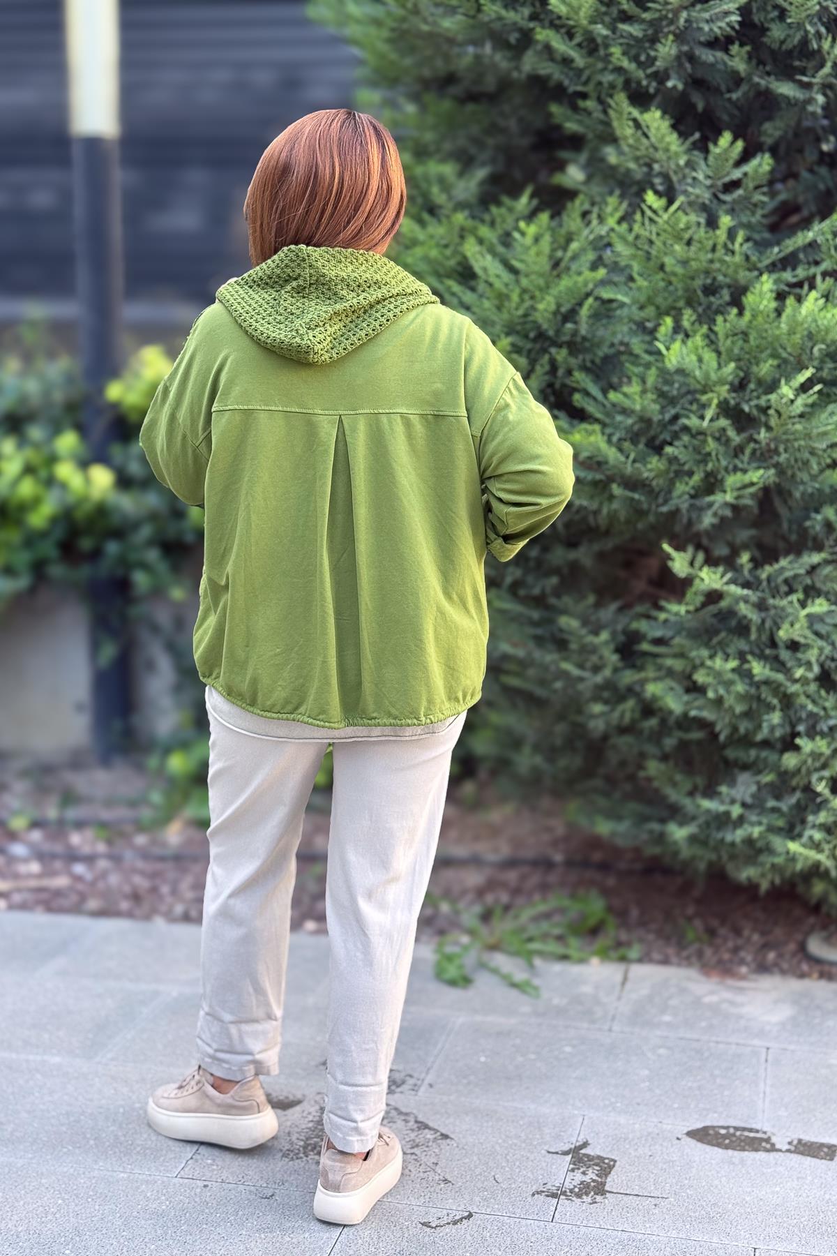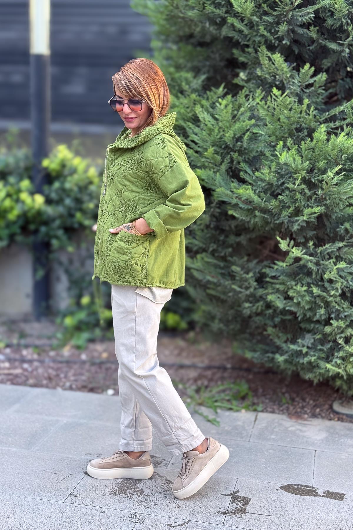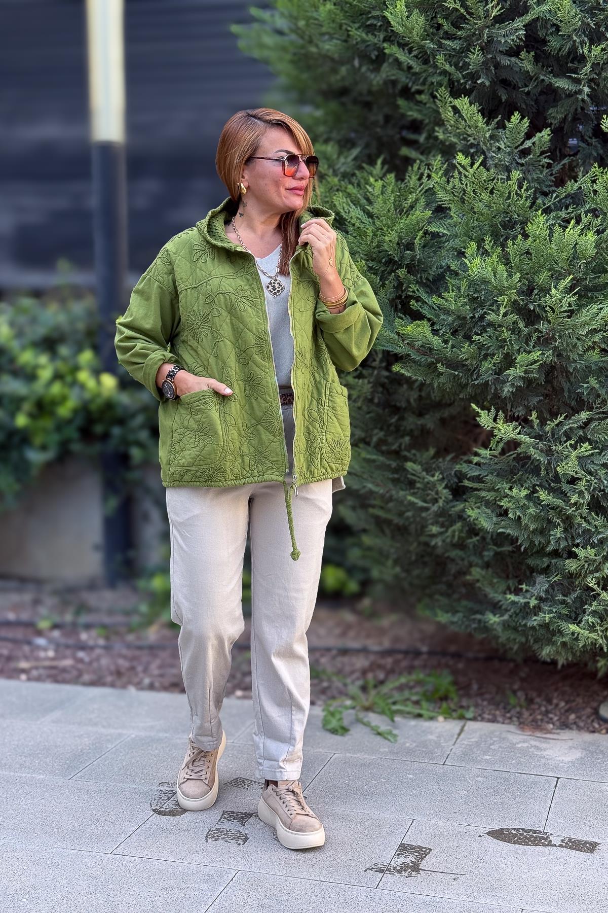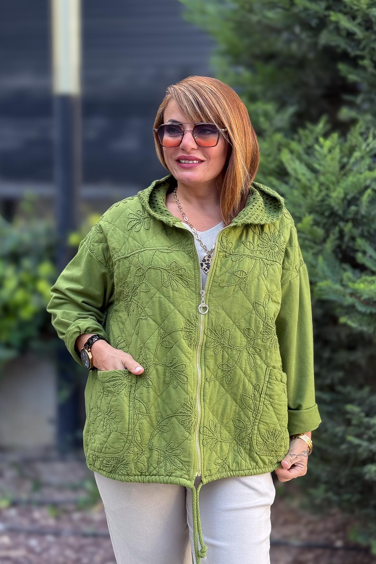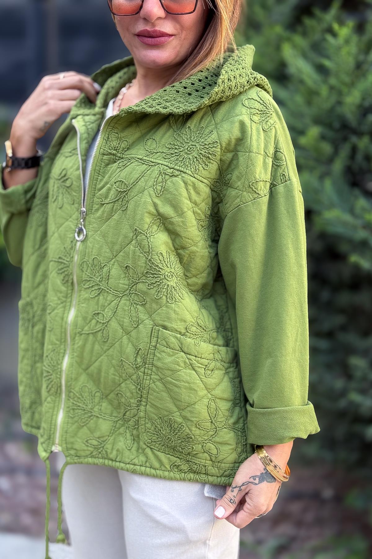 Çiçek Desenli Kapitone Ceket Fıstık Yeşil Renk