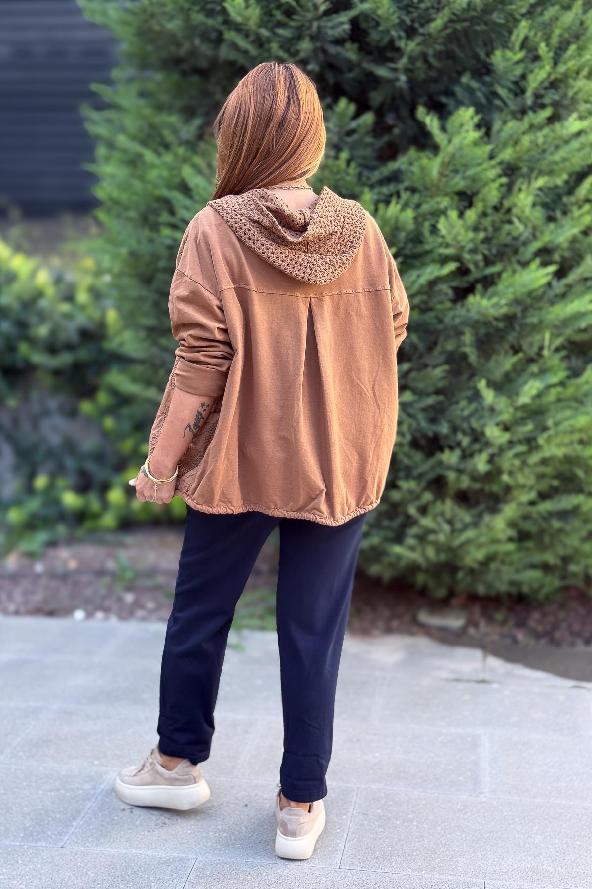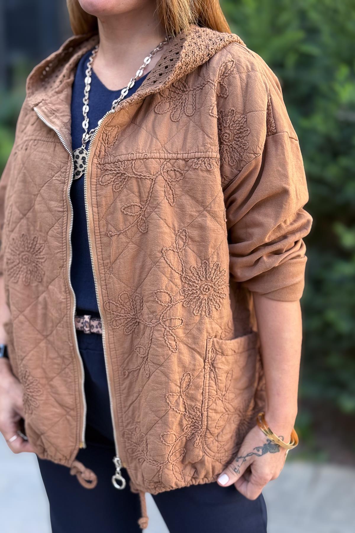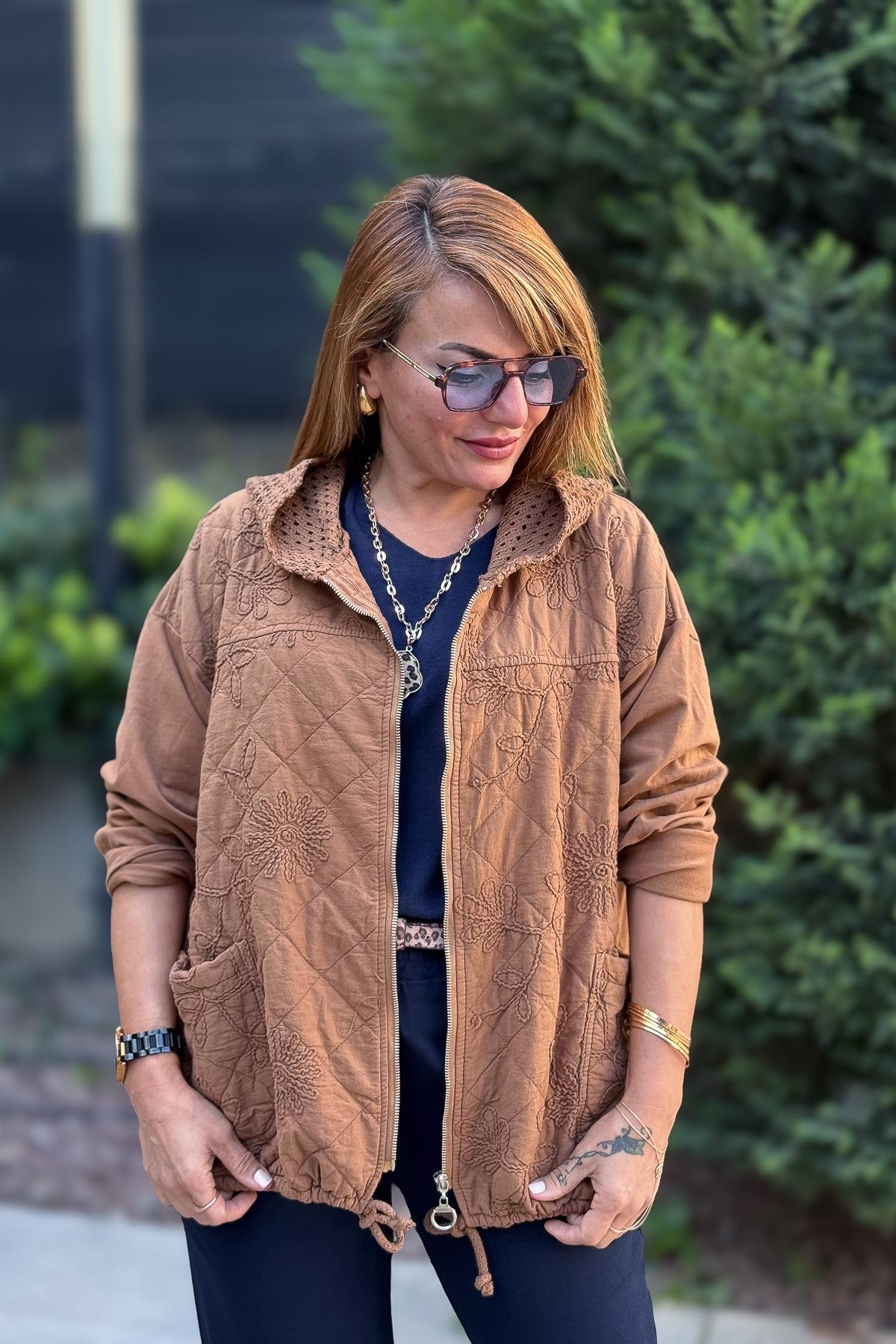 Çiçek Desenli Kapitone Ceket Taba Renk