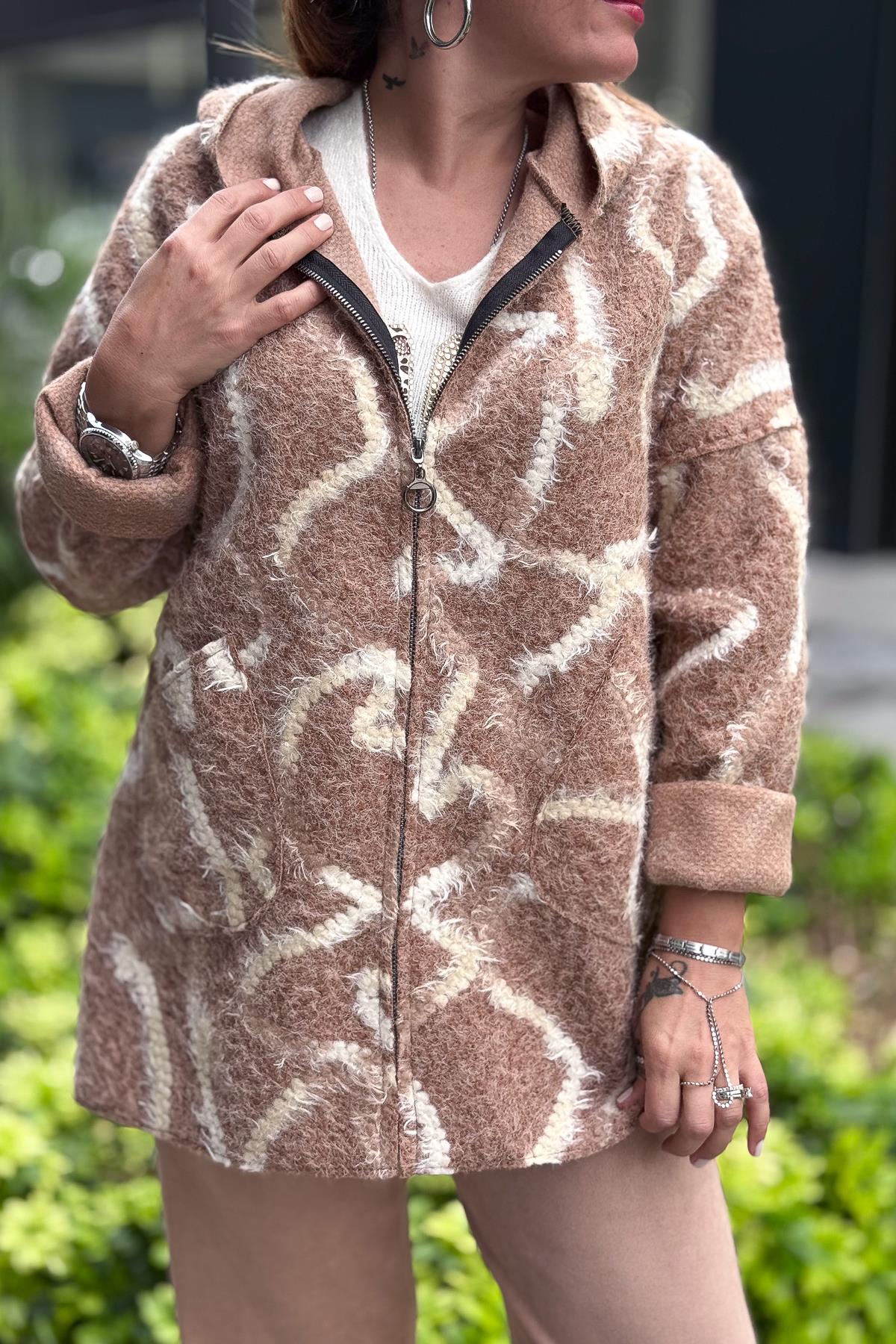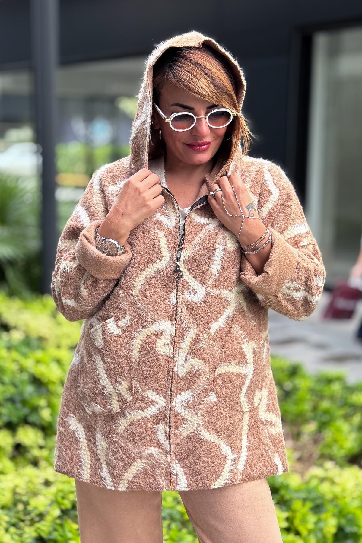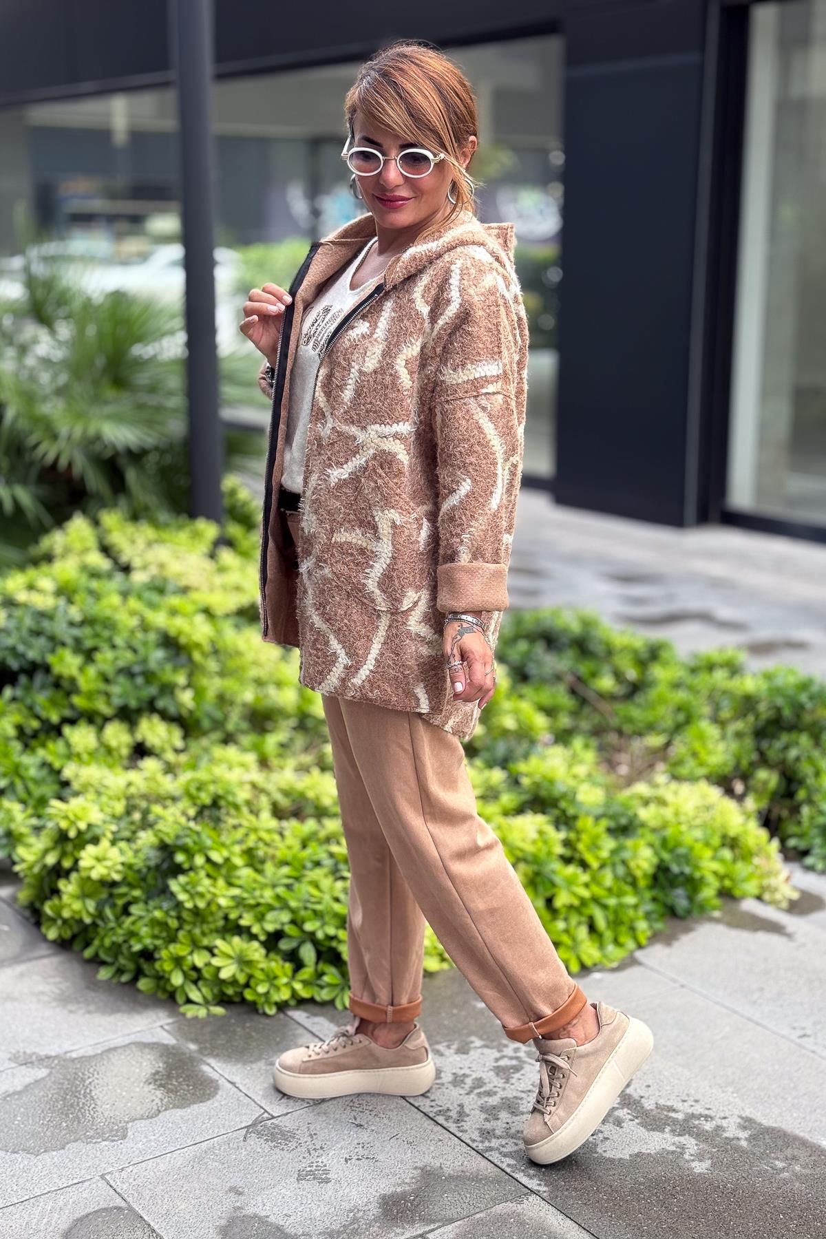 Çizgi Detaylı Keçe Kaban Camel Renk