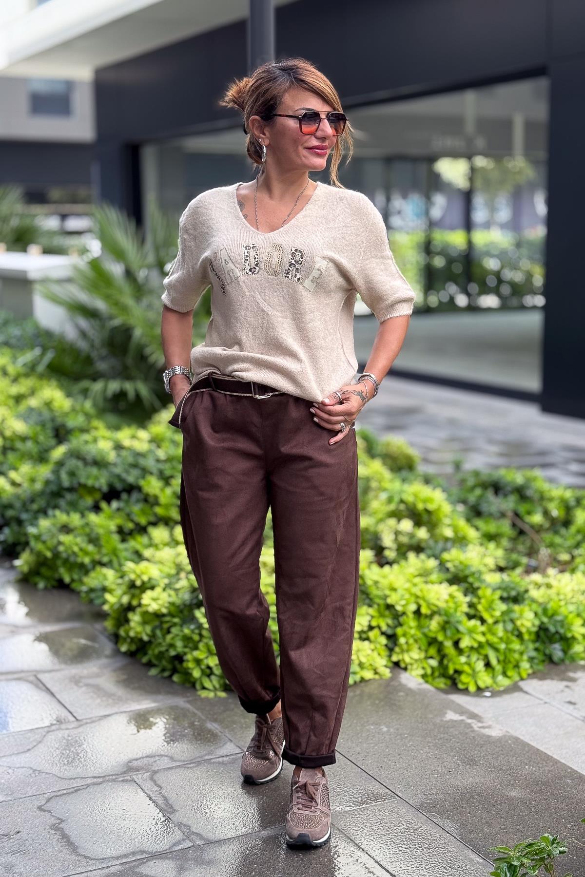 Dar Paça Basic Güderi Pantolon Kahverengi Renk