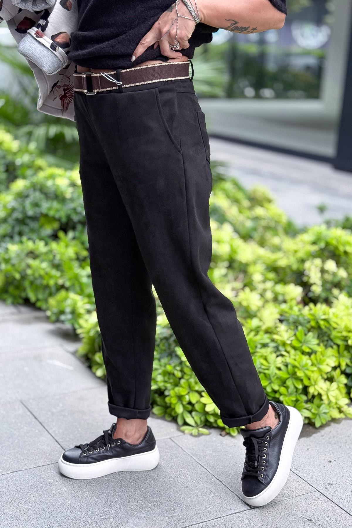 Dar Paça Basic Güderi Pantolon Siyah Renk