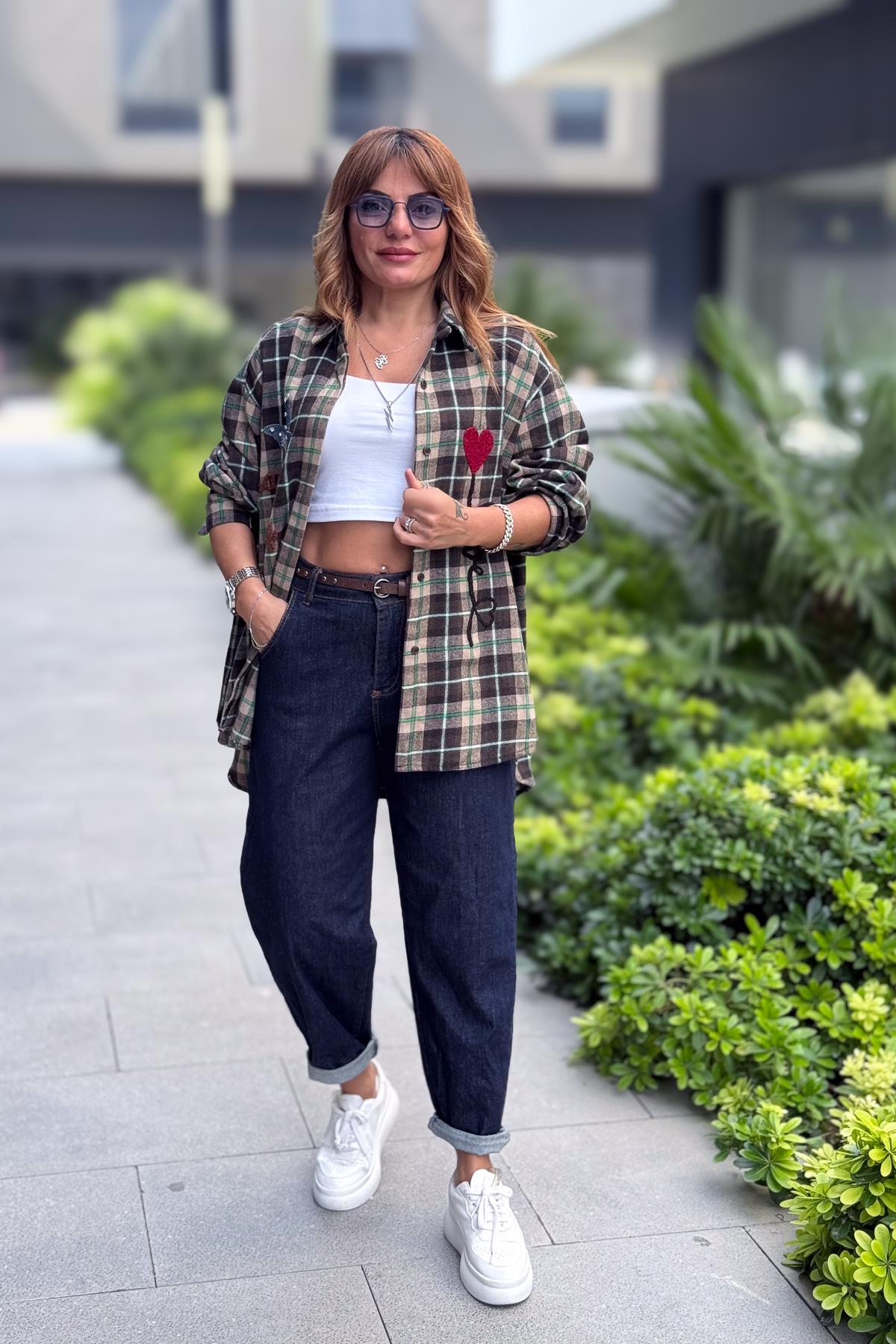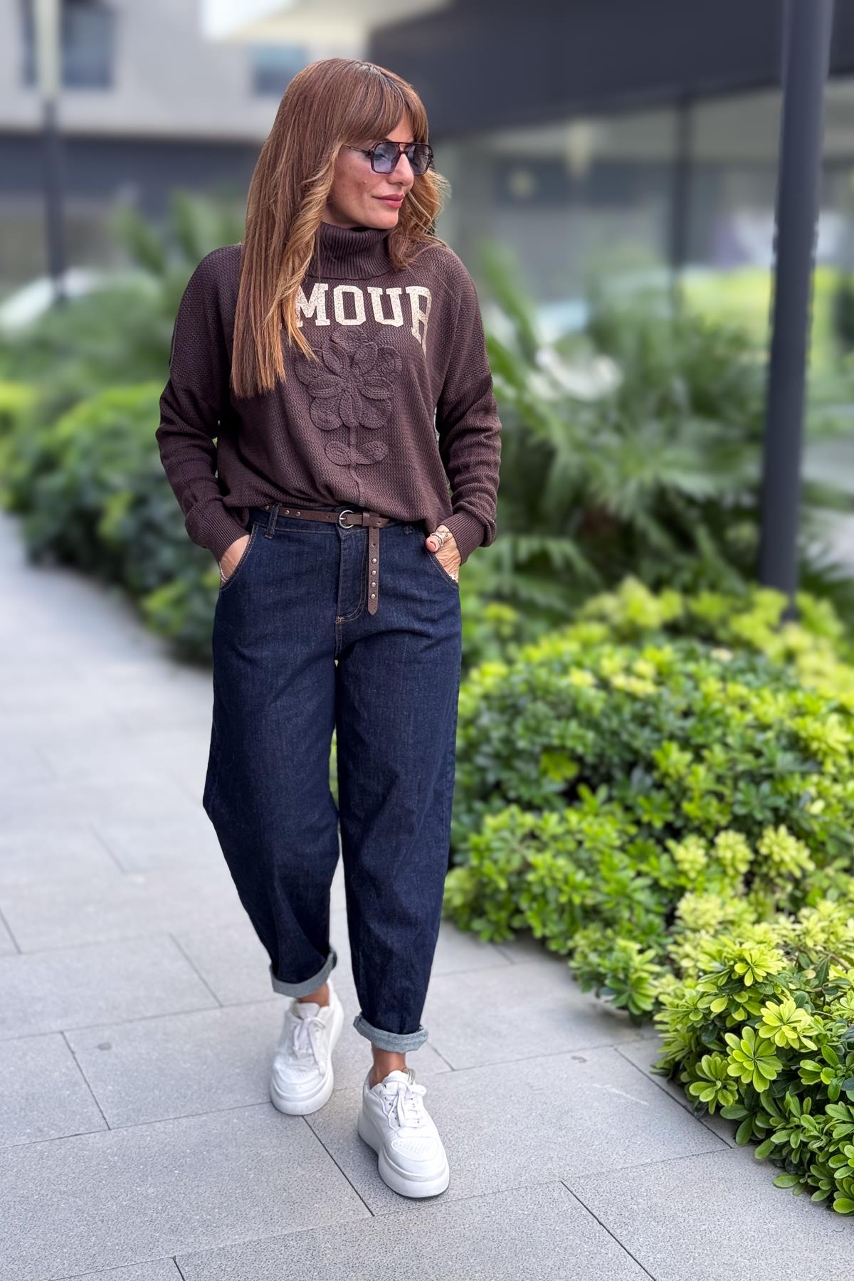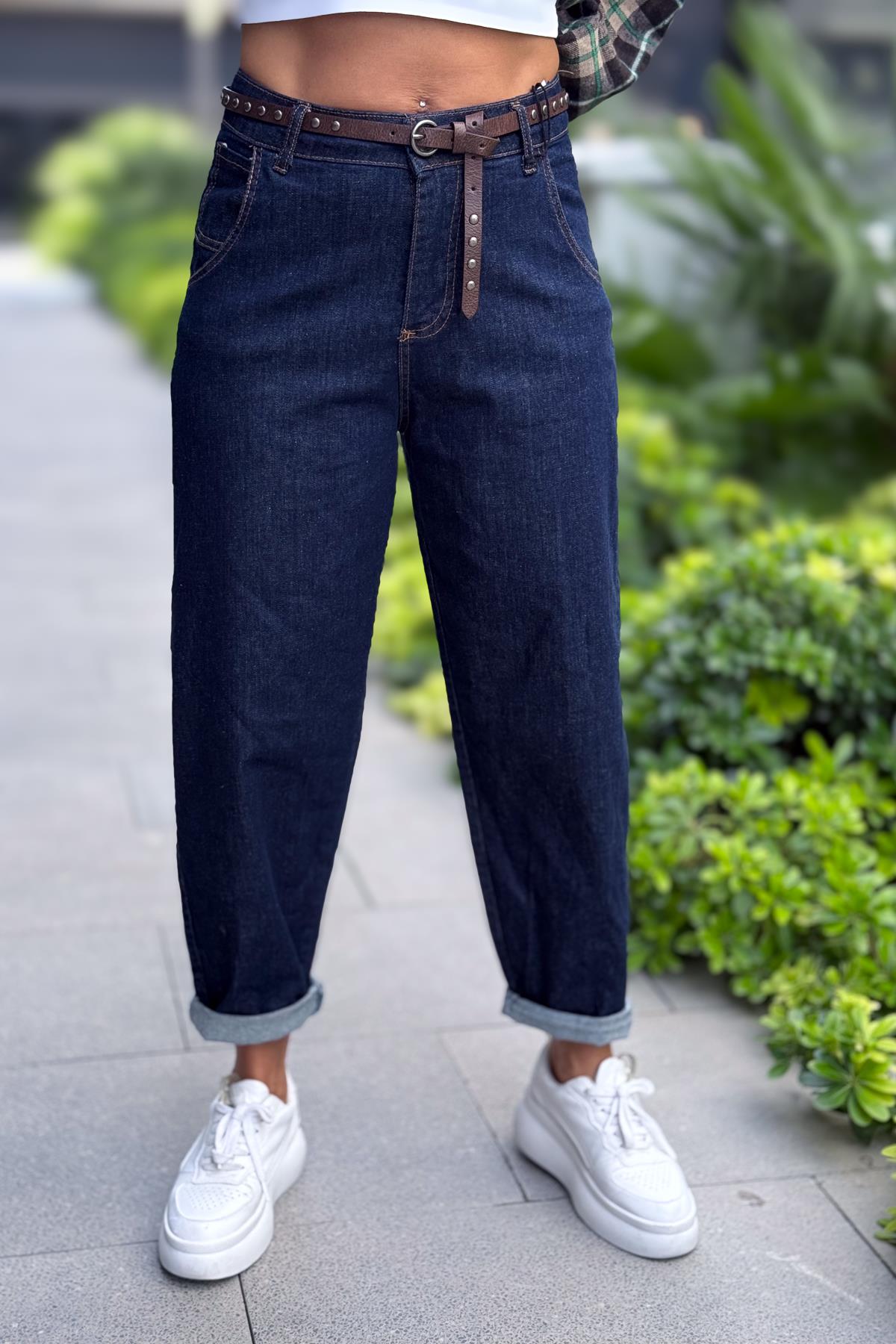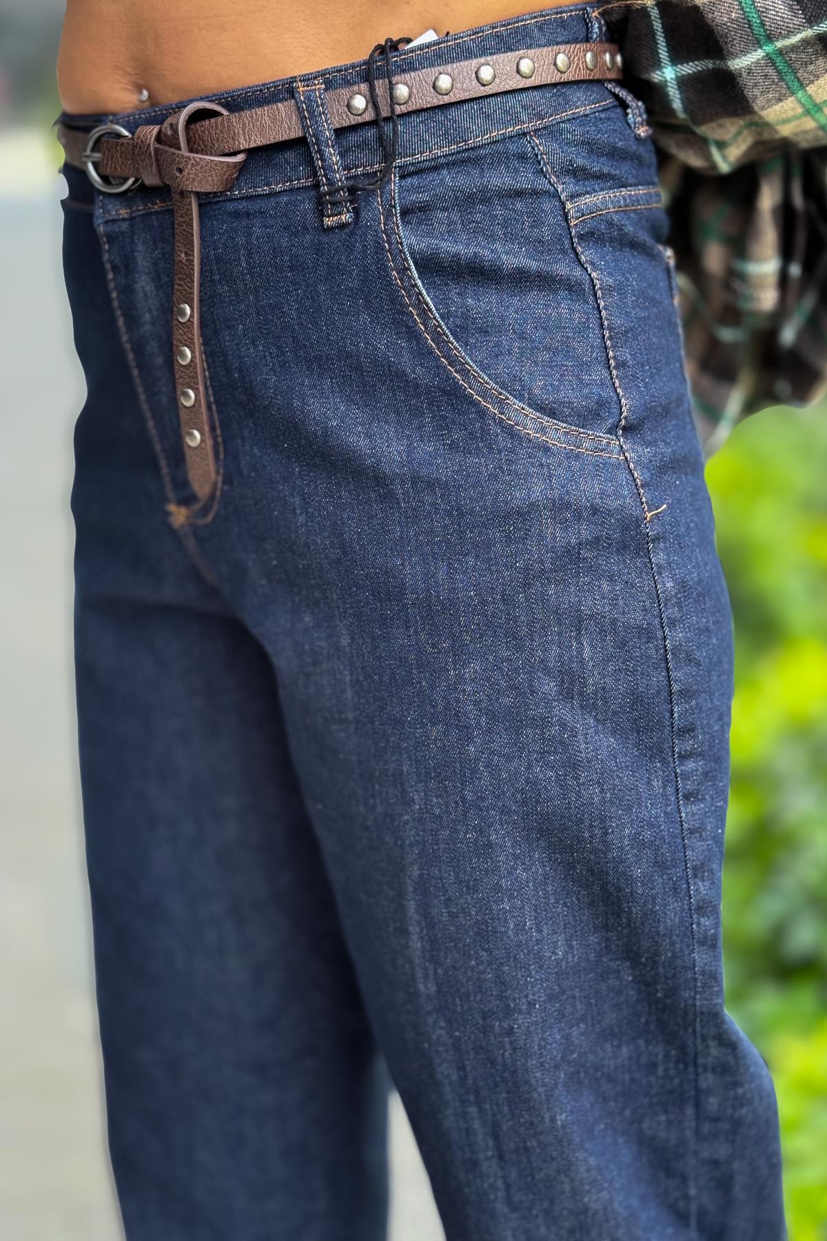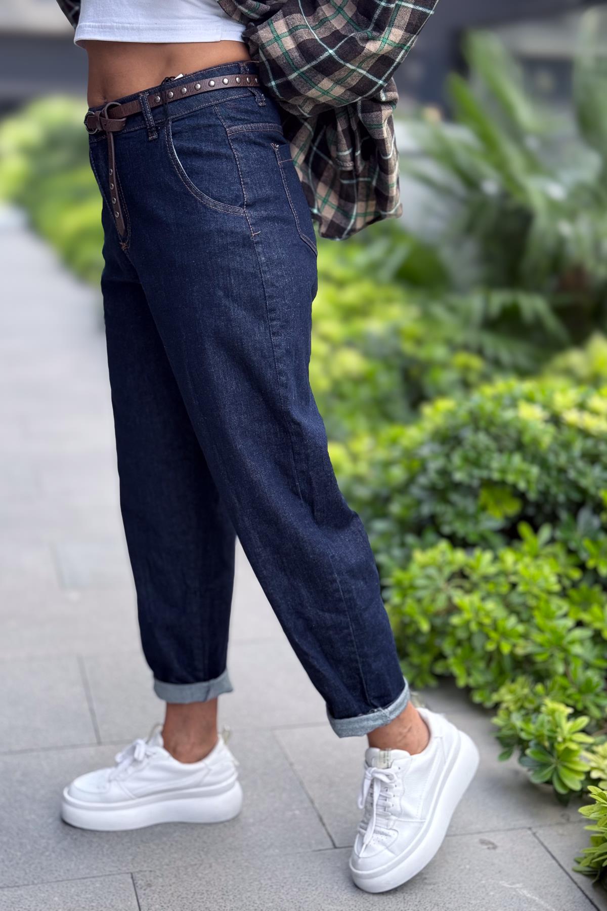 Deri Zımba Kemerli Kot Pantolon Mavi Renk