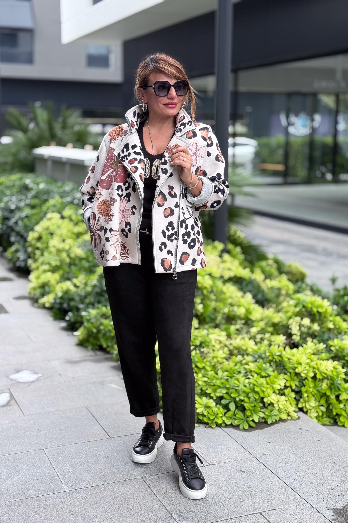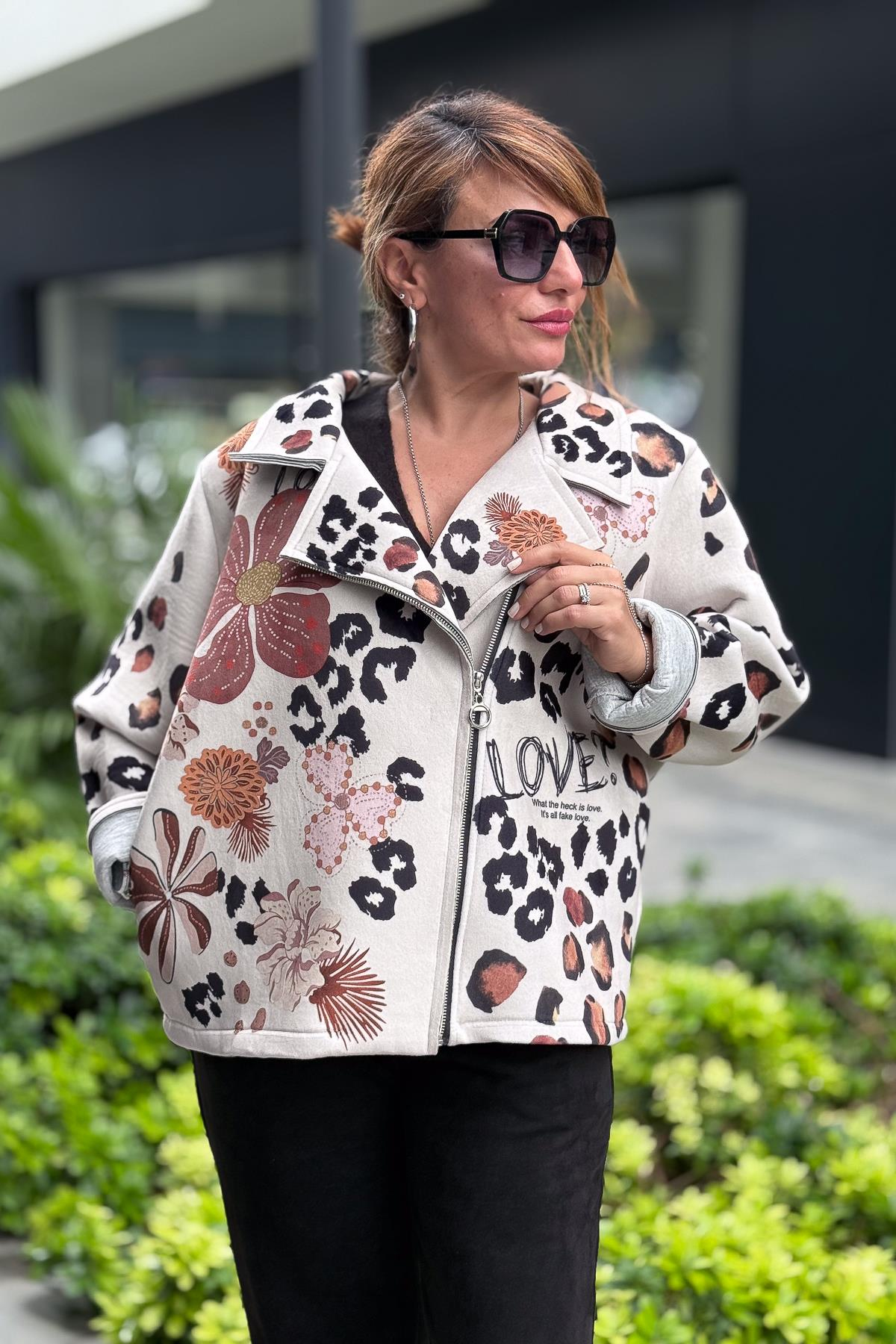 Desenleri Farklı Kruvaze Yaka Polar Ceket Bej Renk