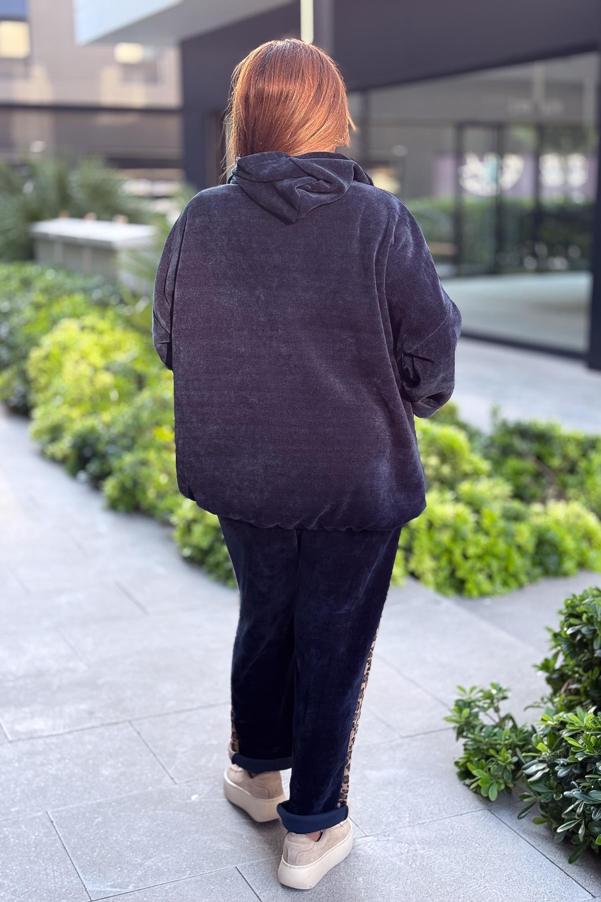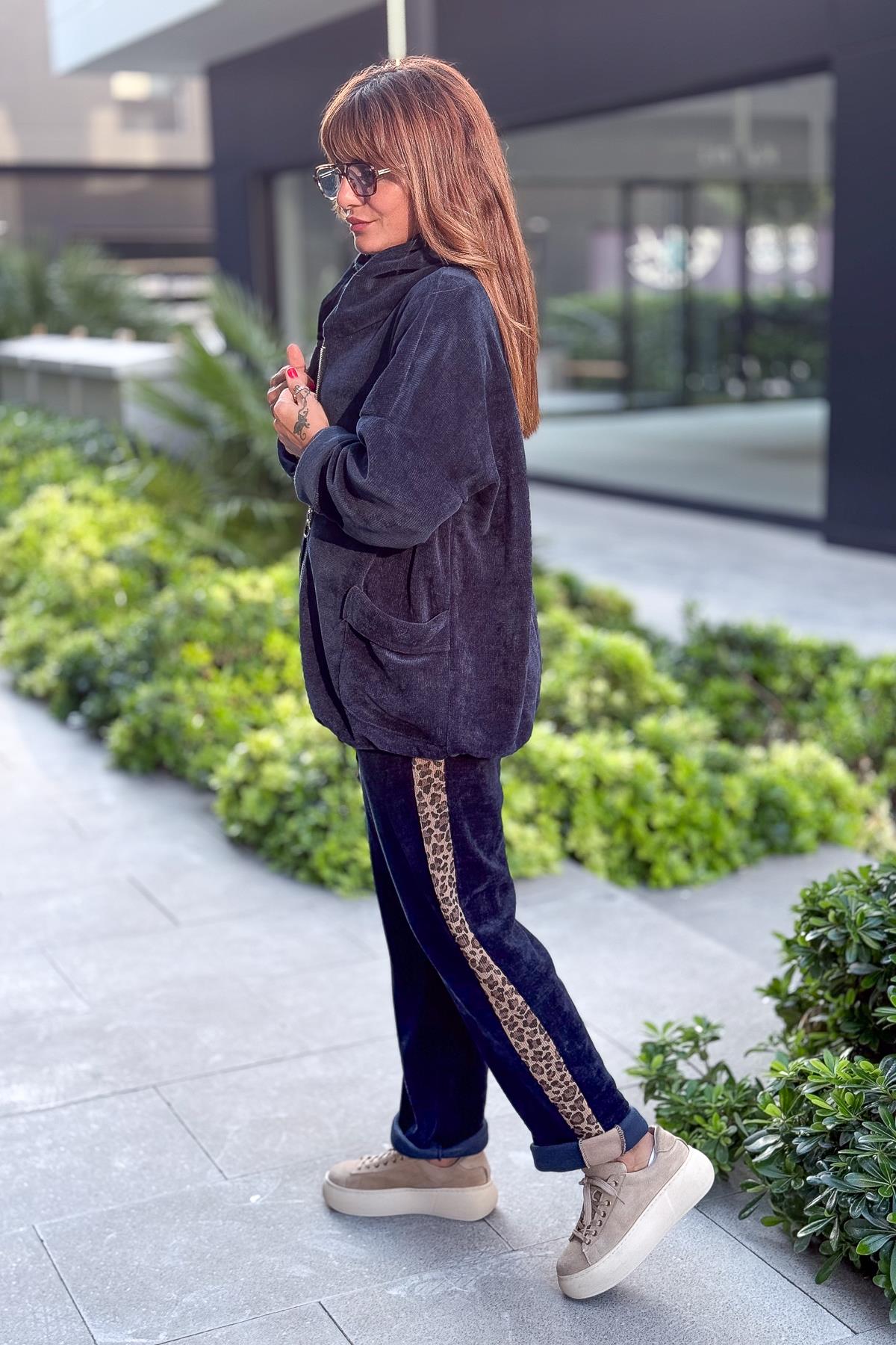 Düz Basic Kadife Ceket Lacivert Renk
