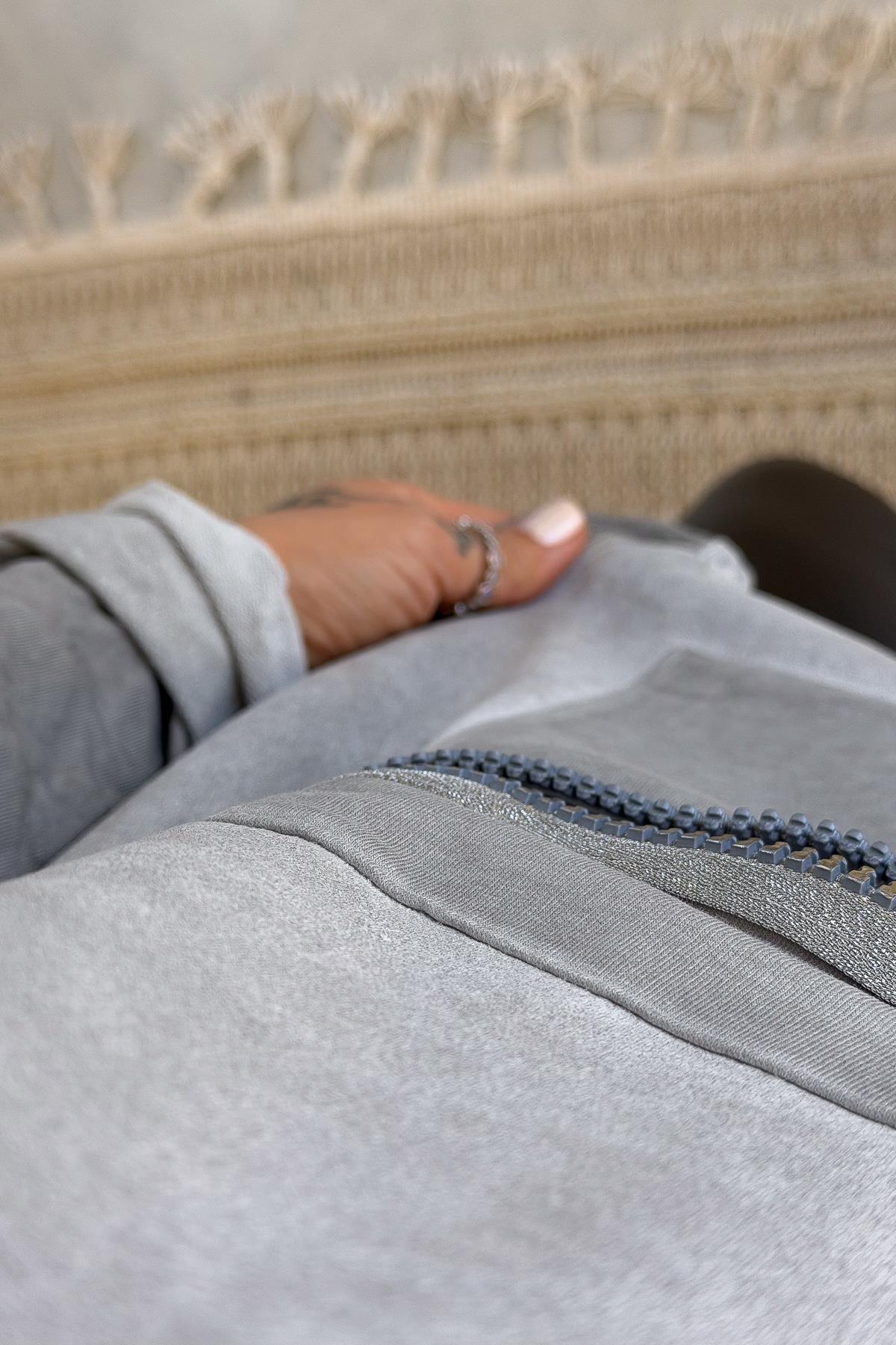 Fermuar Cep Detaylı Yuvarlak Yaka Yıkamalı Sweet Gri Renk