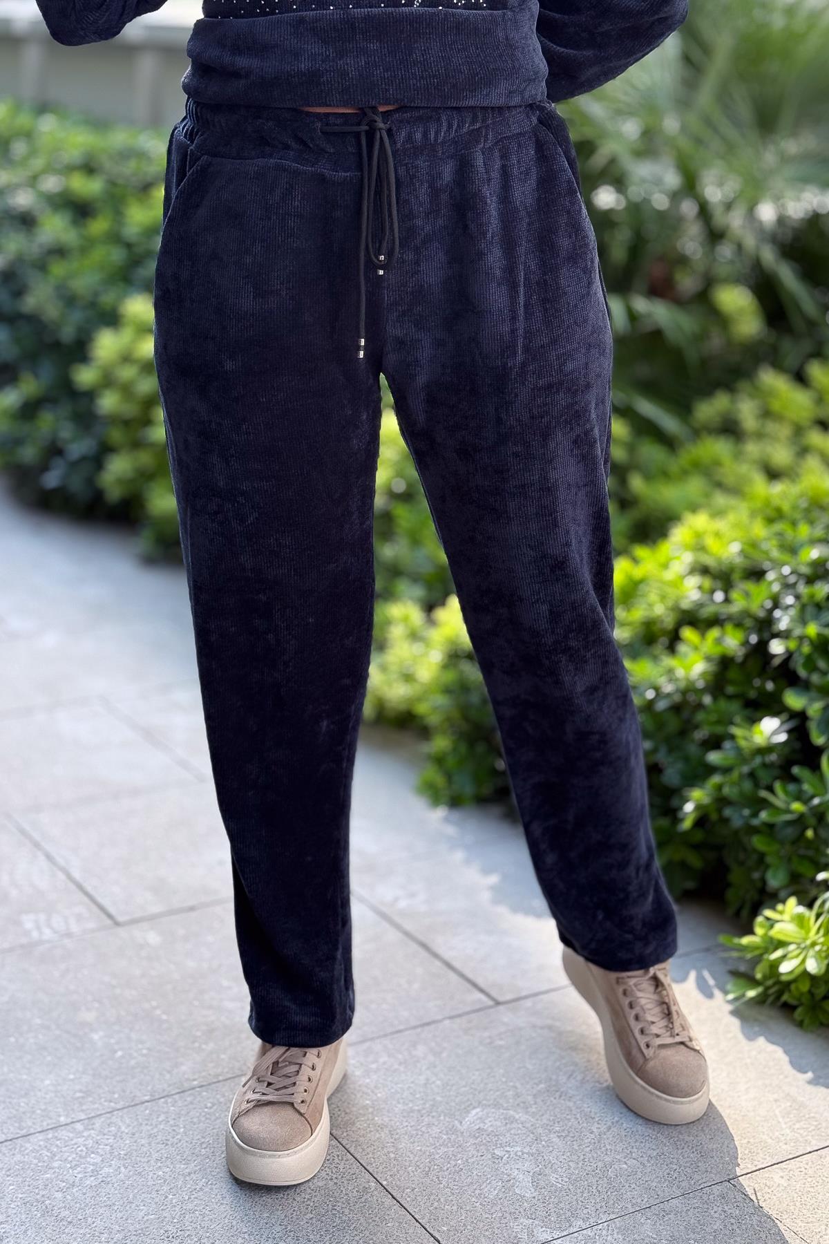 Havuç Paça Beli Lastikli Düz Basic Kadife Eşorfman Altı Lacivert Renk