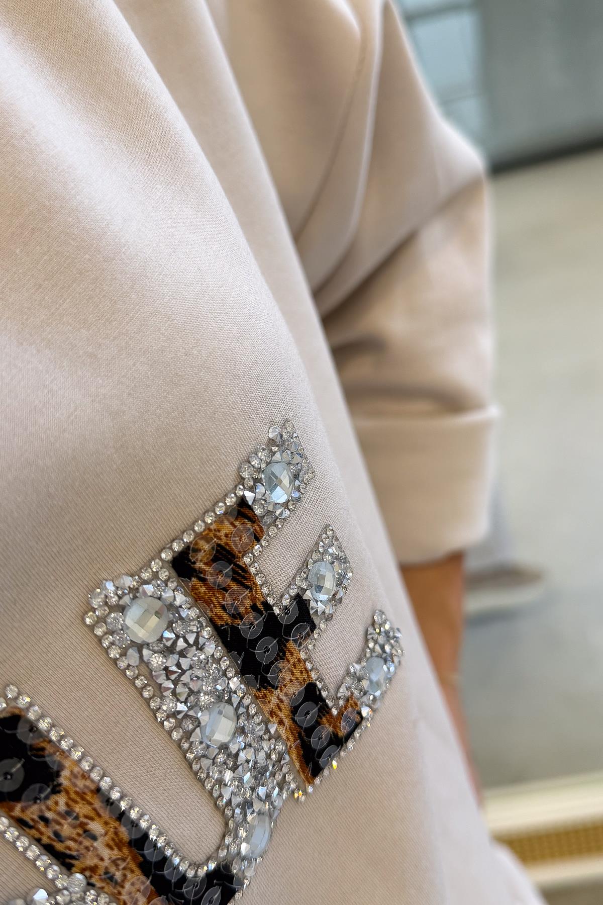 Leopar Ve Taş Yazı Detay Modal Kumaş Eşorfman Takım Bej Renk