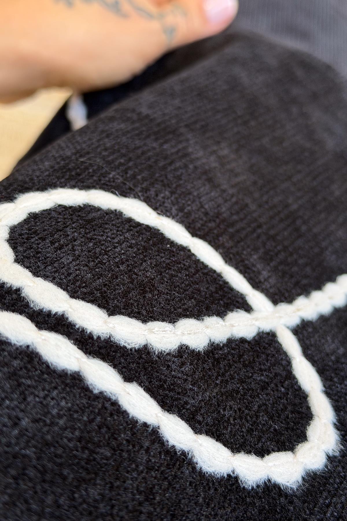 Örgü Halat Desenli Alt Üst Kadife Takım Siyah Renk