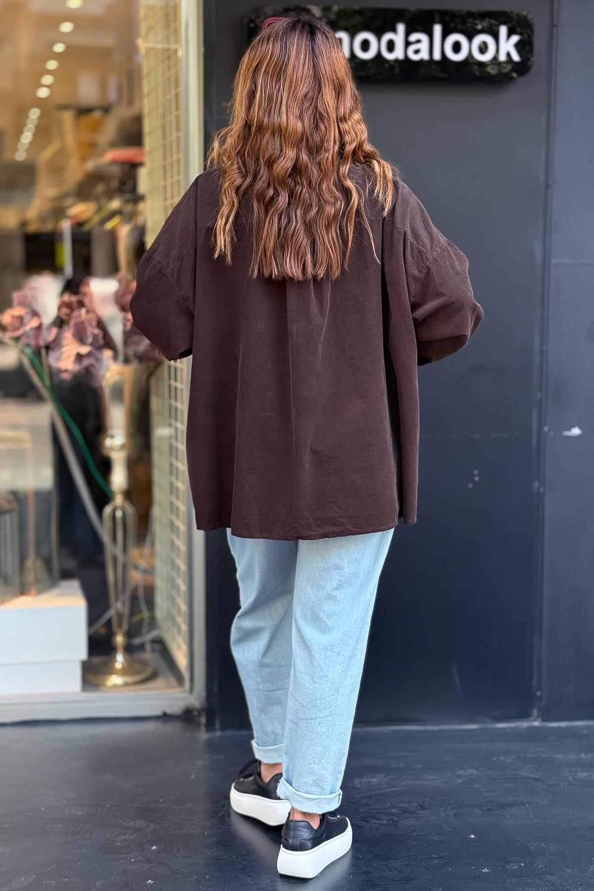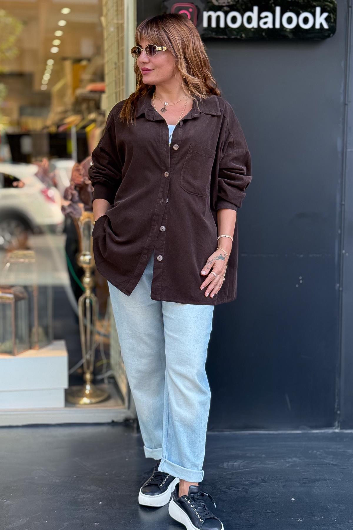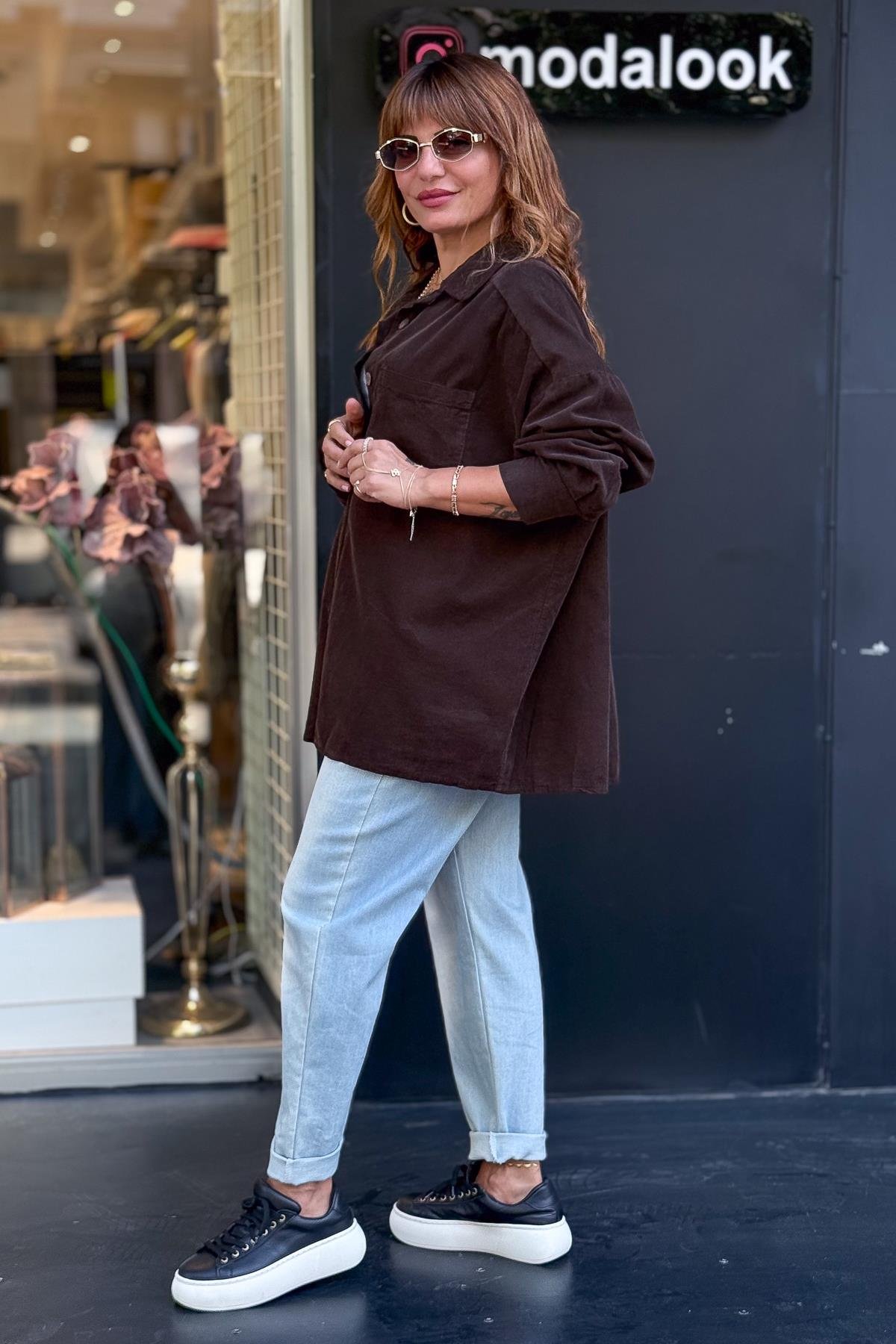 Tek Cepli Kadife Gömlek Acı Kahve Renk