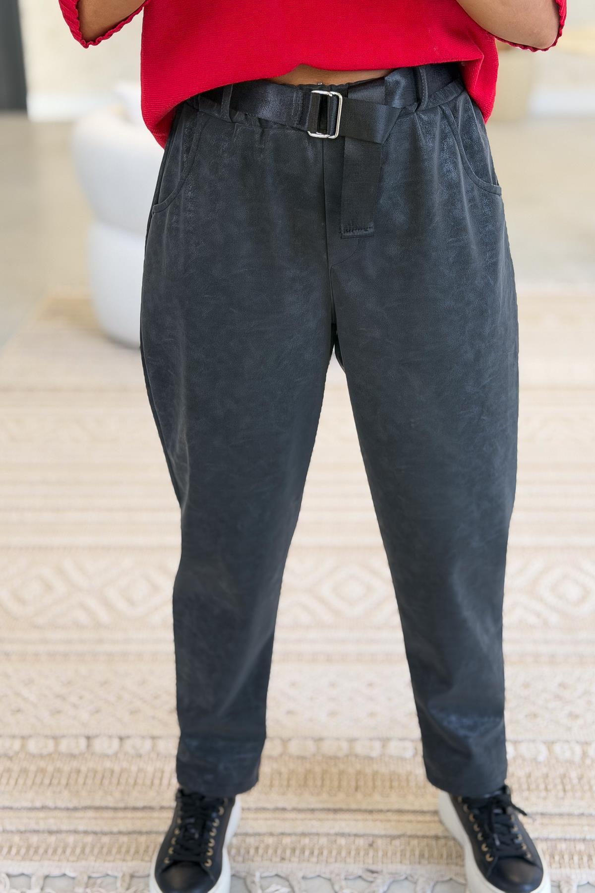 Eskitme Deri Görünümlü Pantolon Antresit Renk