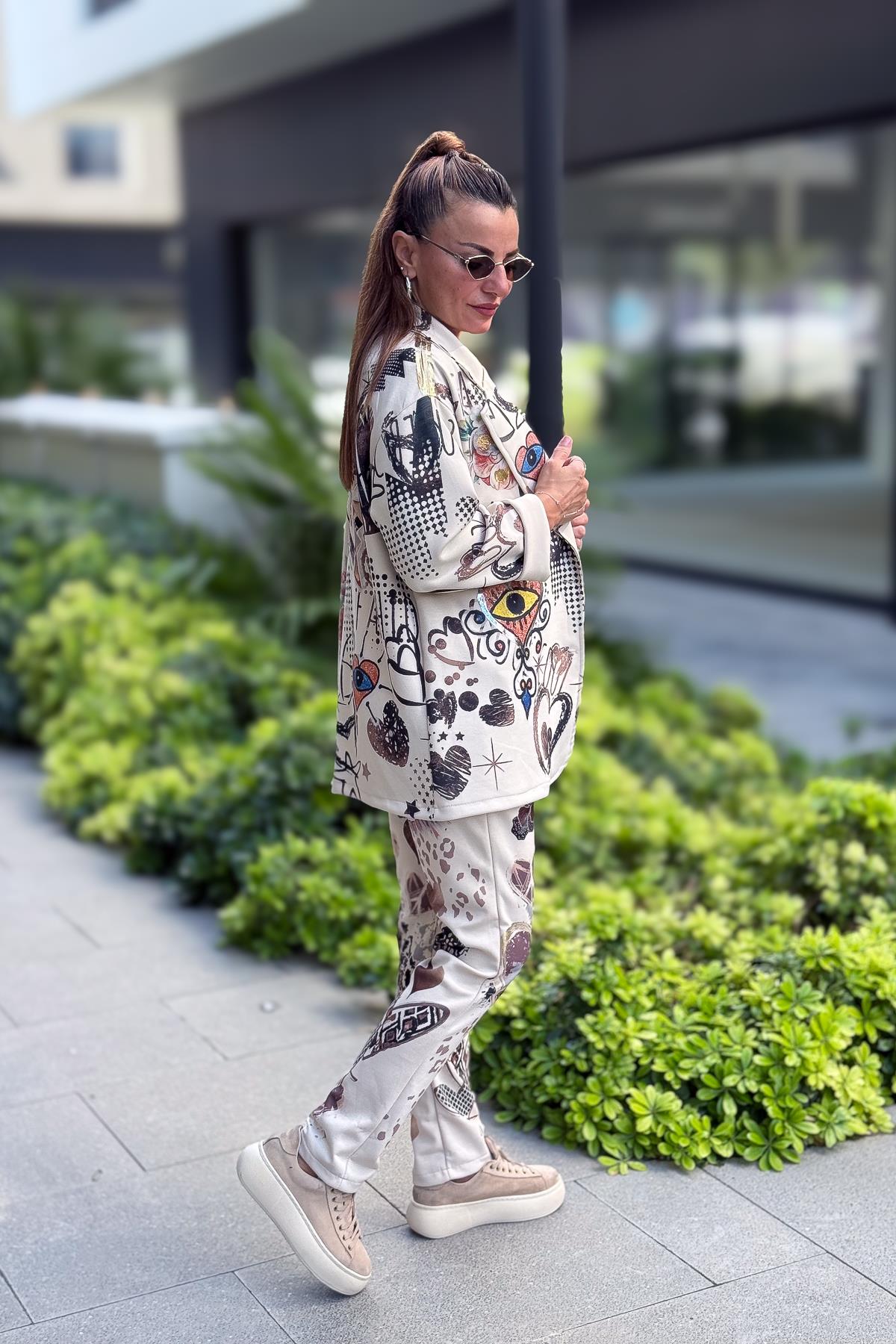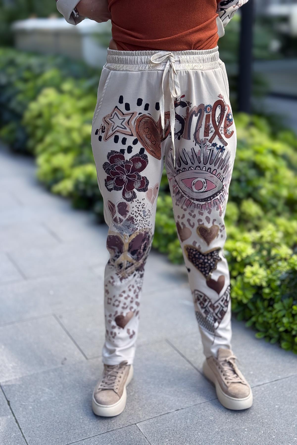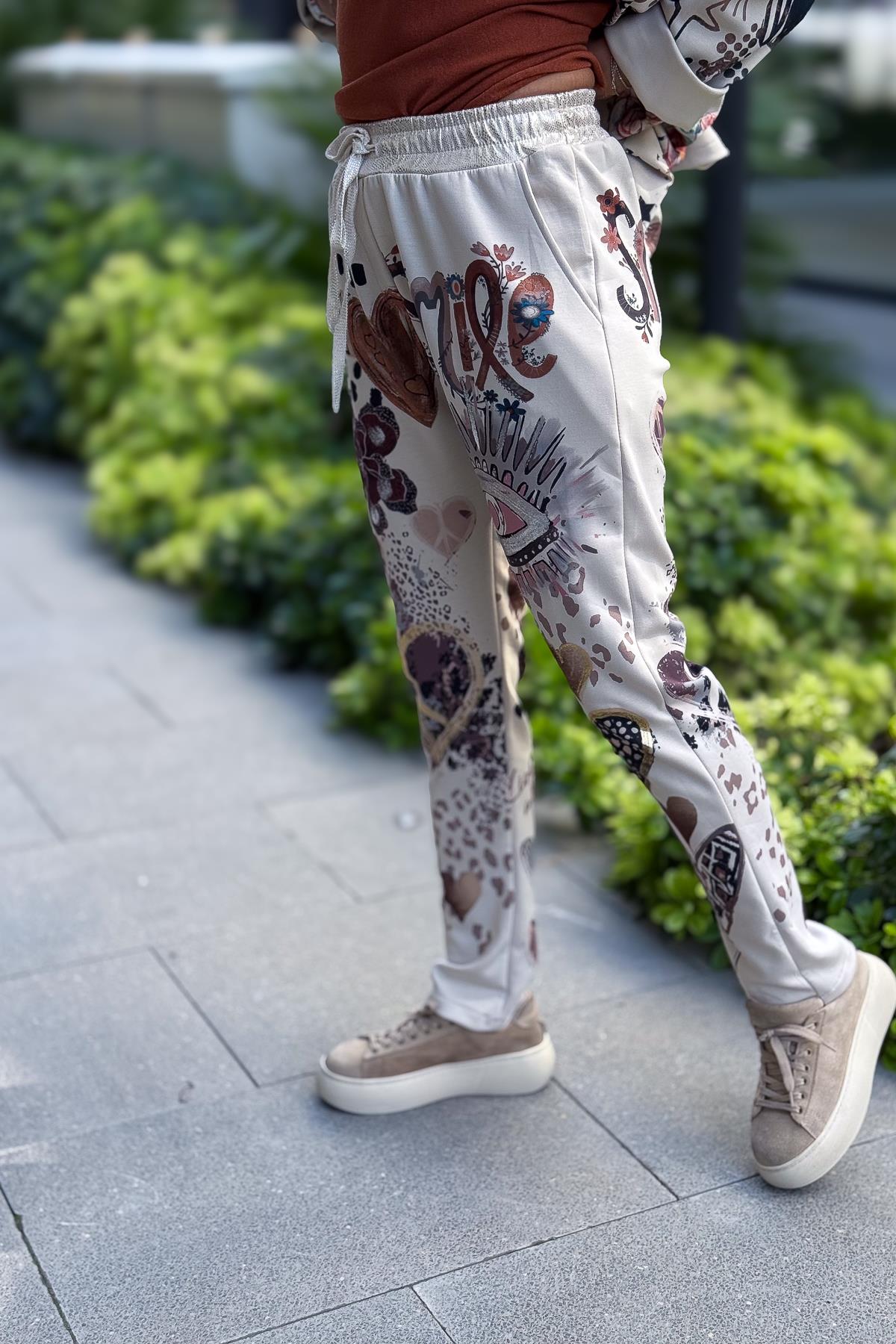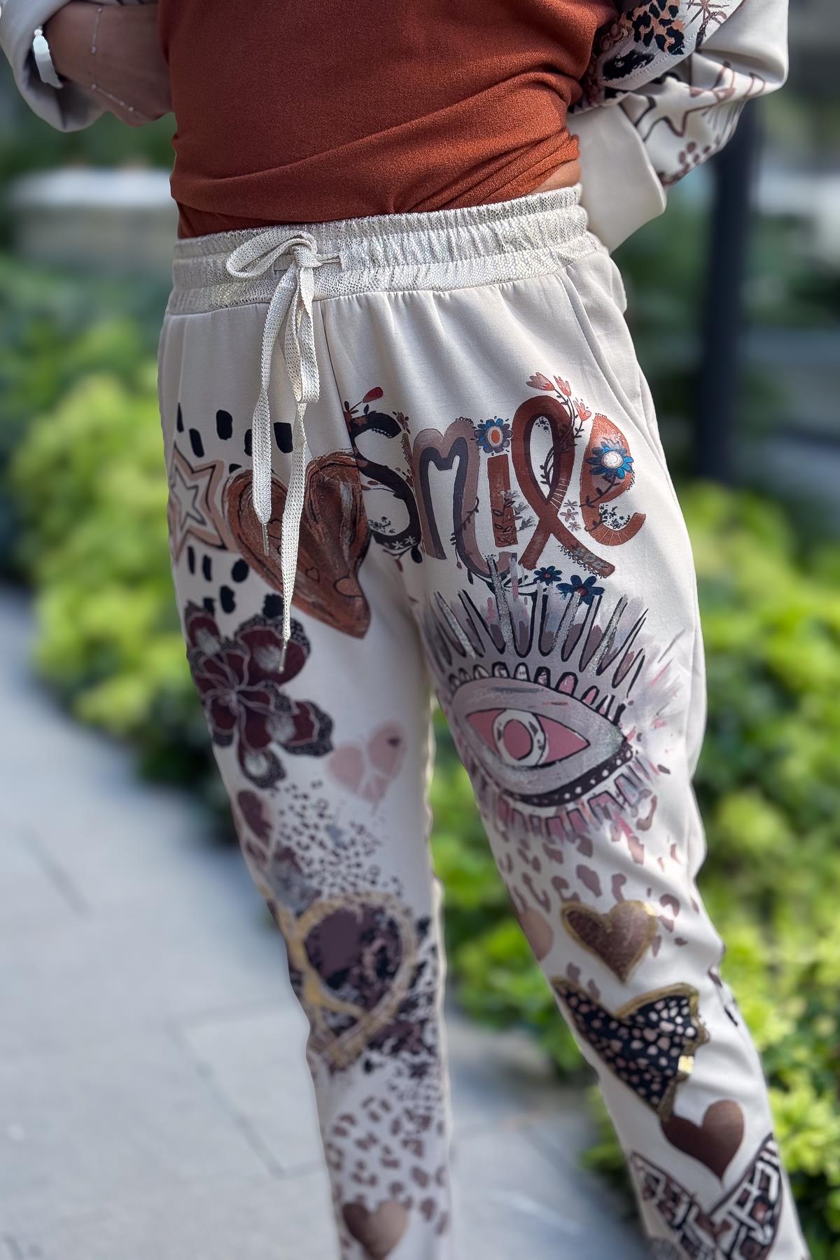 Gold Desen Baskılı Modal Pantolon Krem Renk