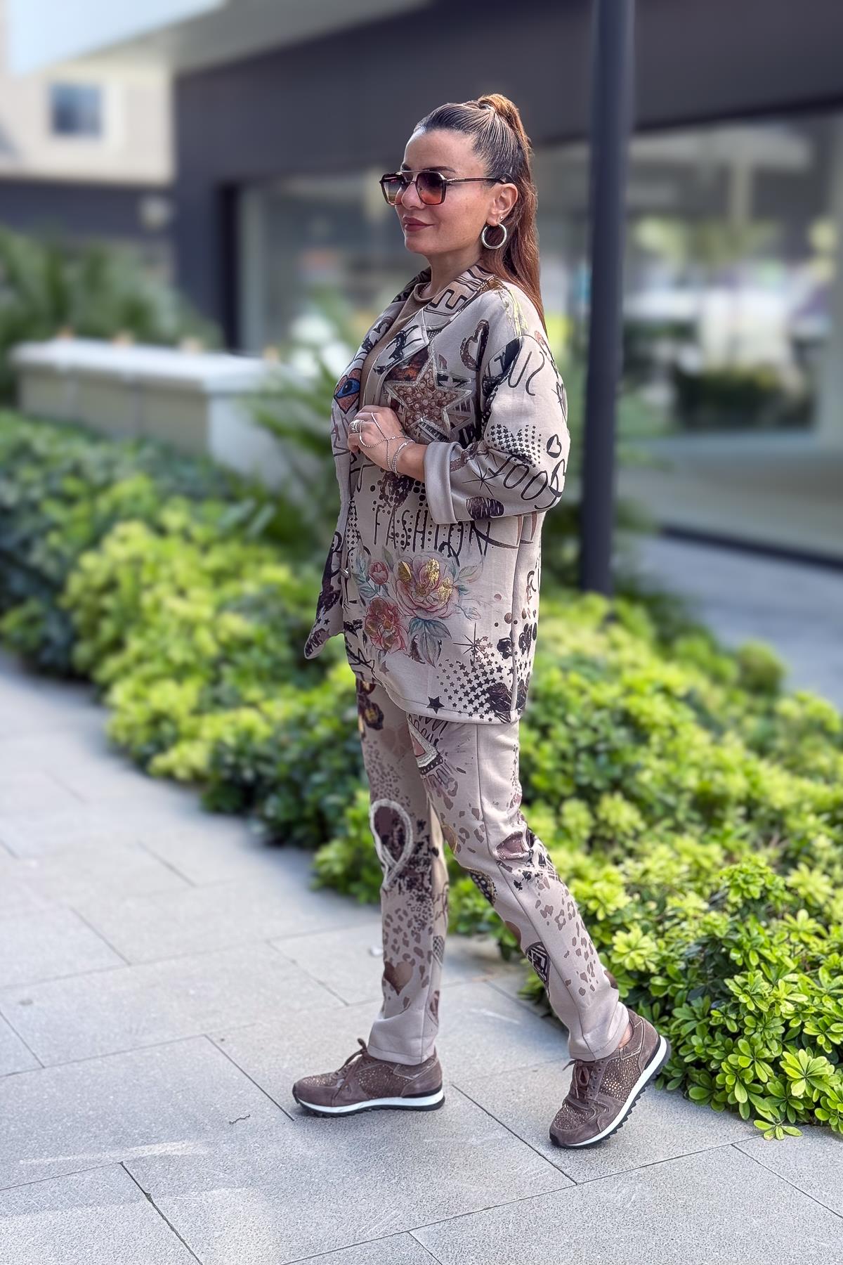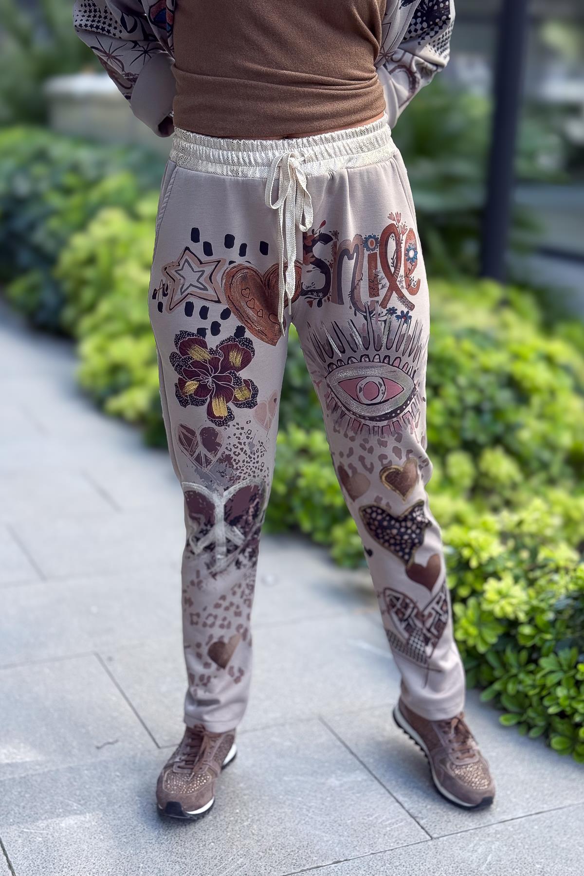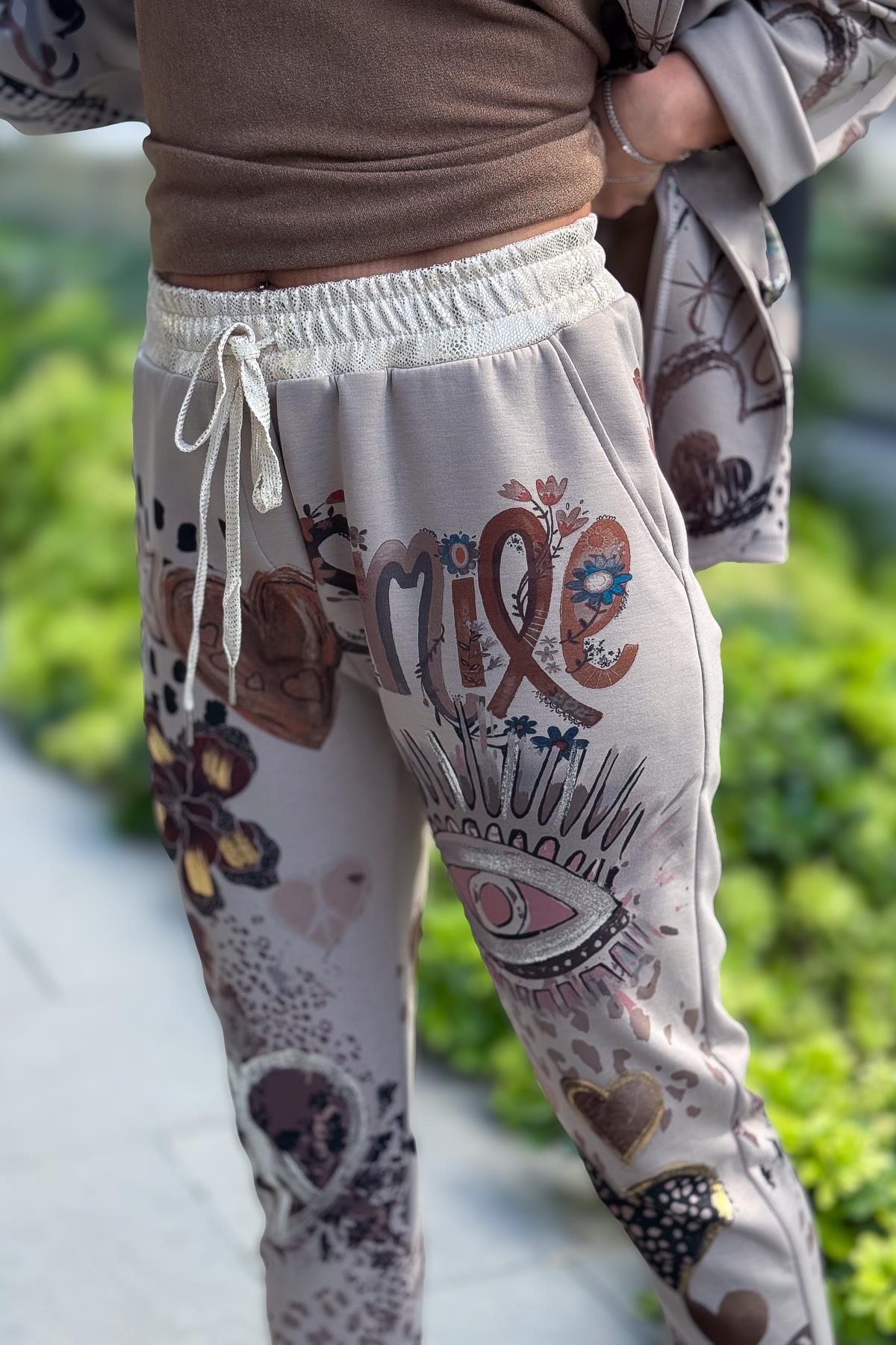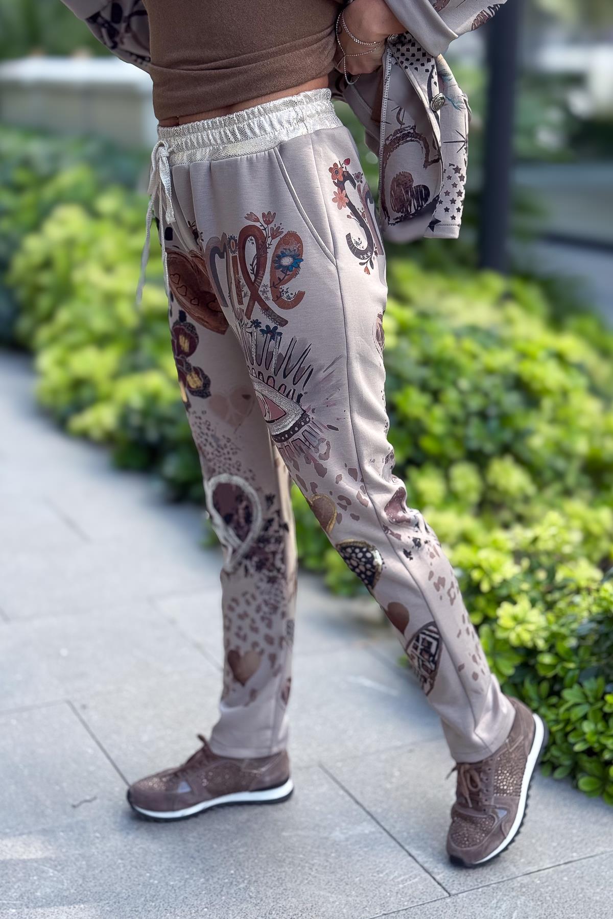 Gold Desen Baskılı Modal Pantolon Vizon Renk