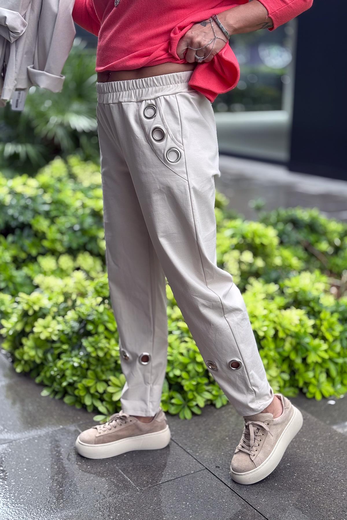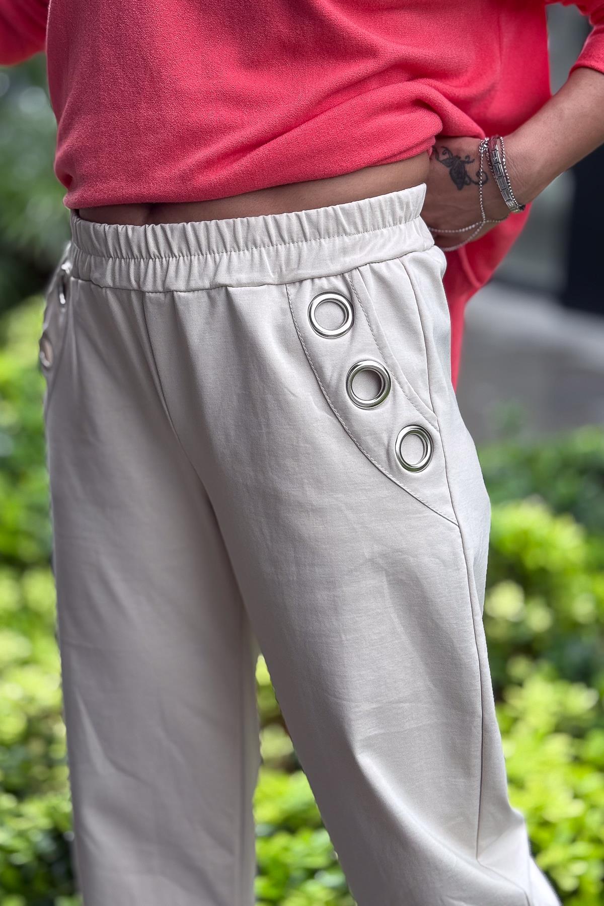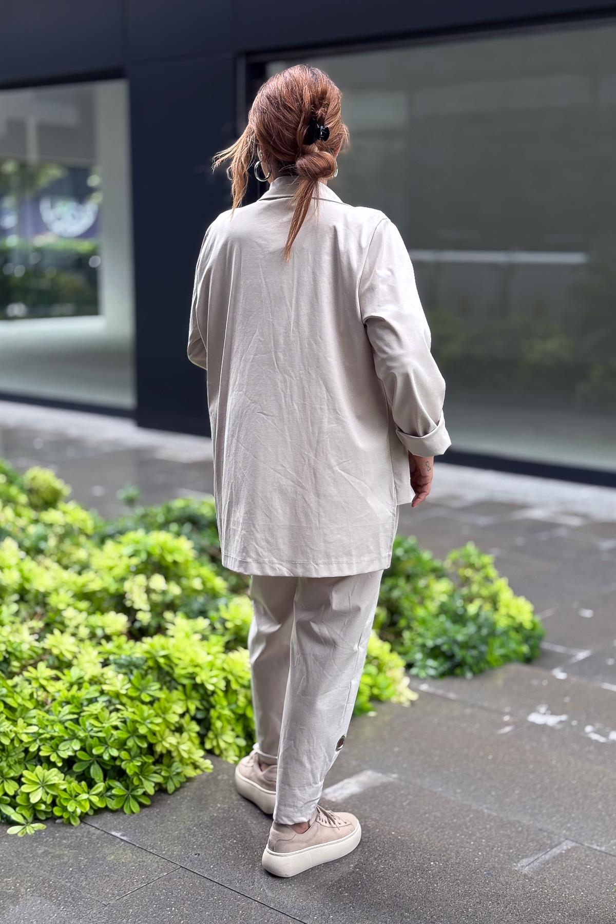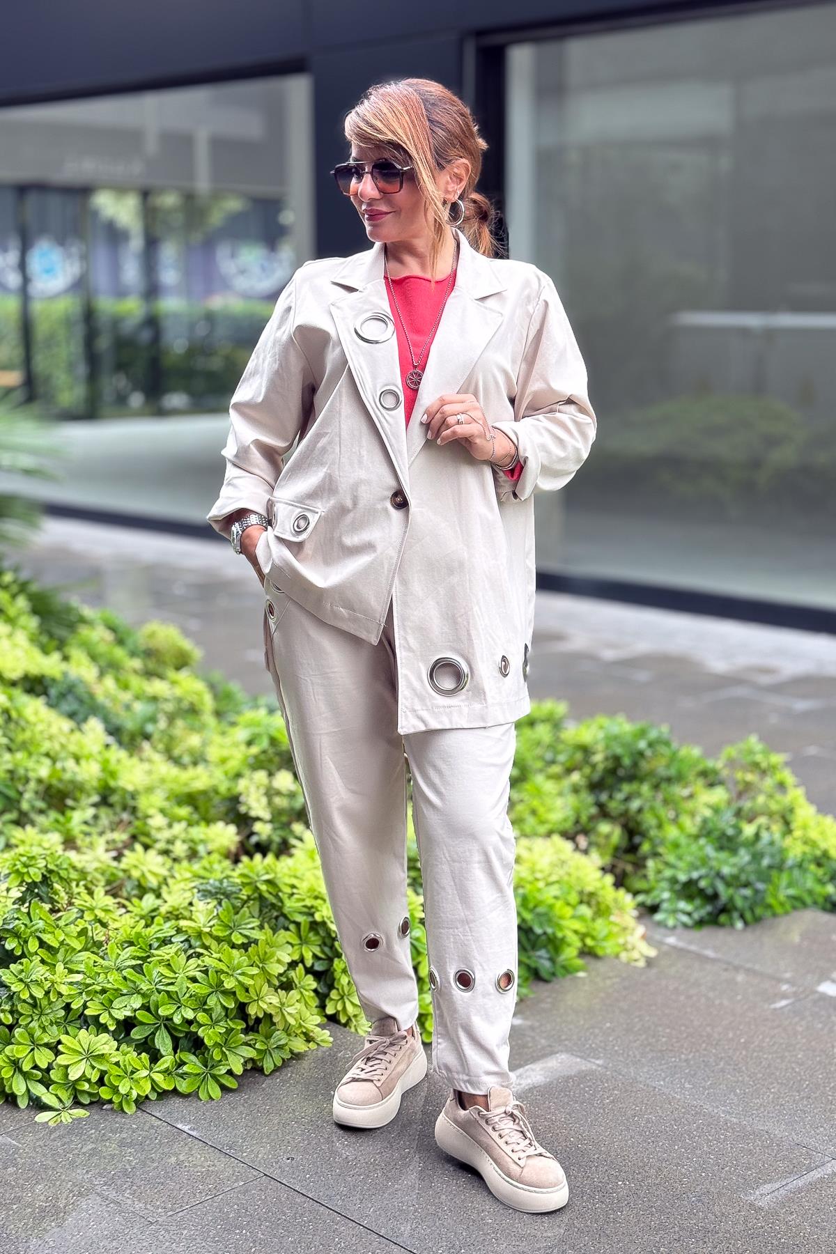 Halka Detaylı Asimetrik Kesim Ceketli Takım Bej Renk