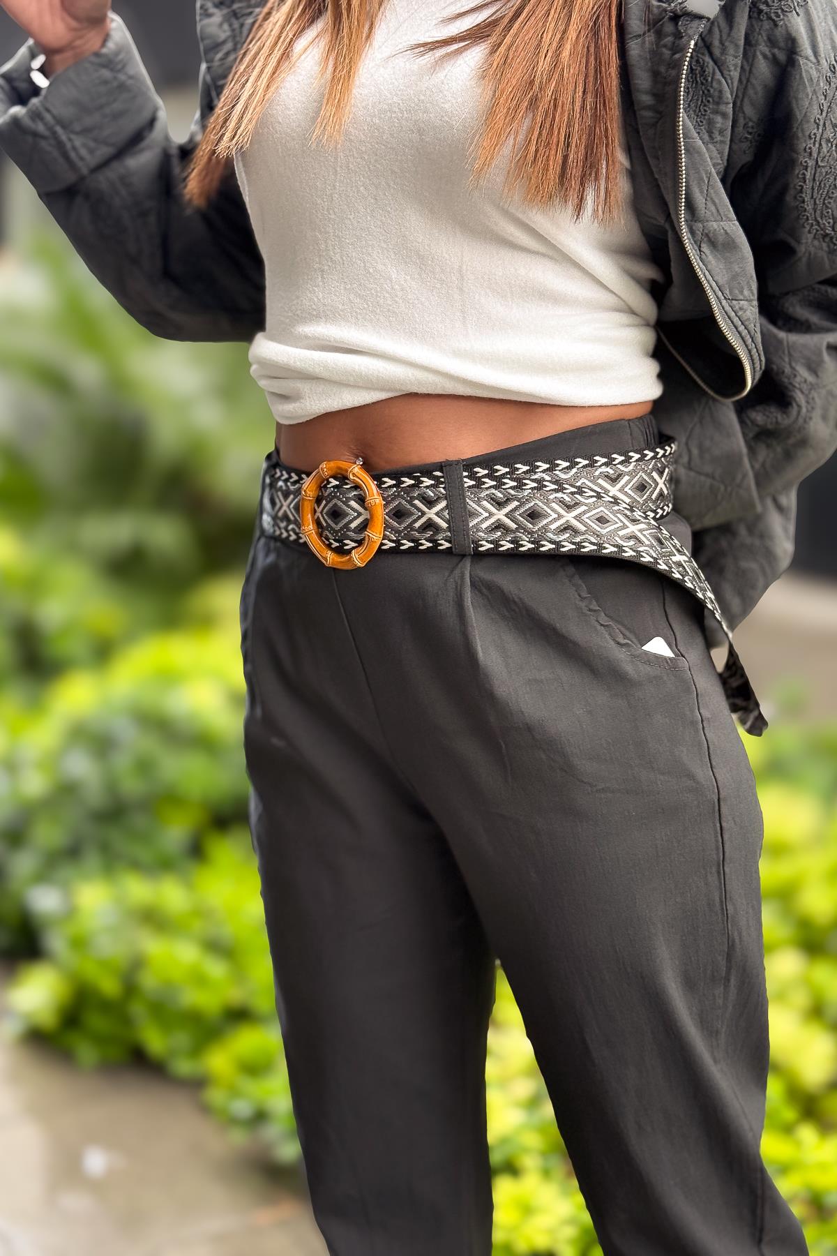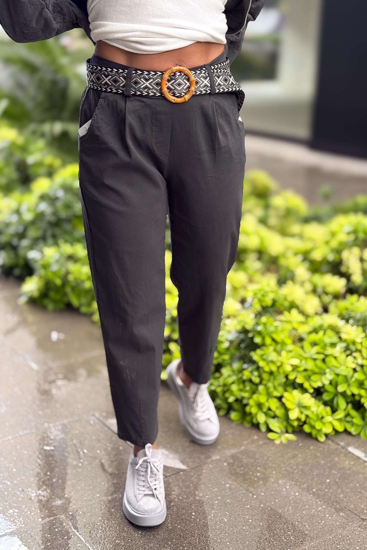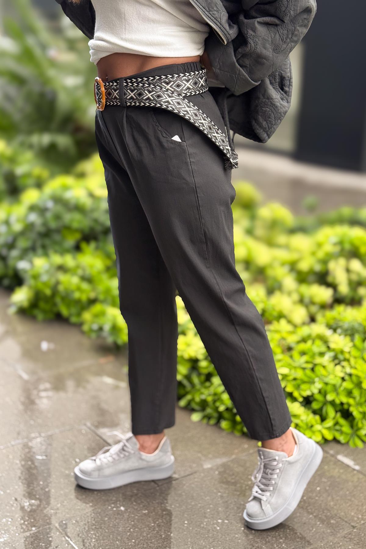 Havuç Paça Aynı Renk Kemerli Kanvas Pantolon Antresit Renk