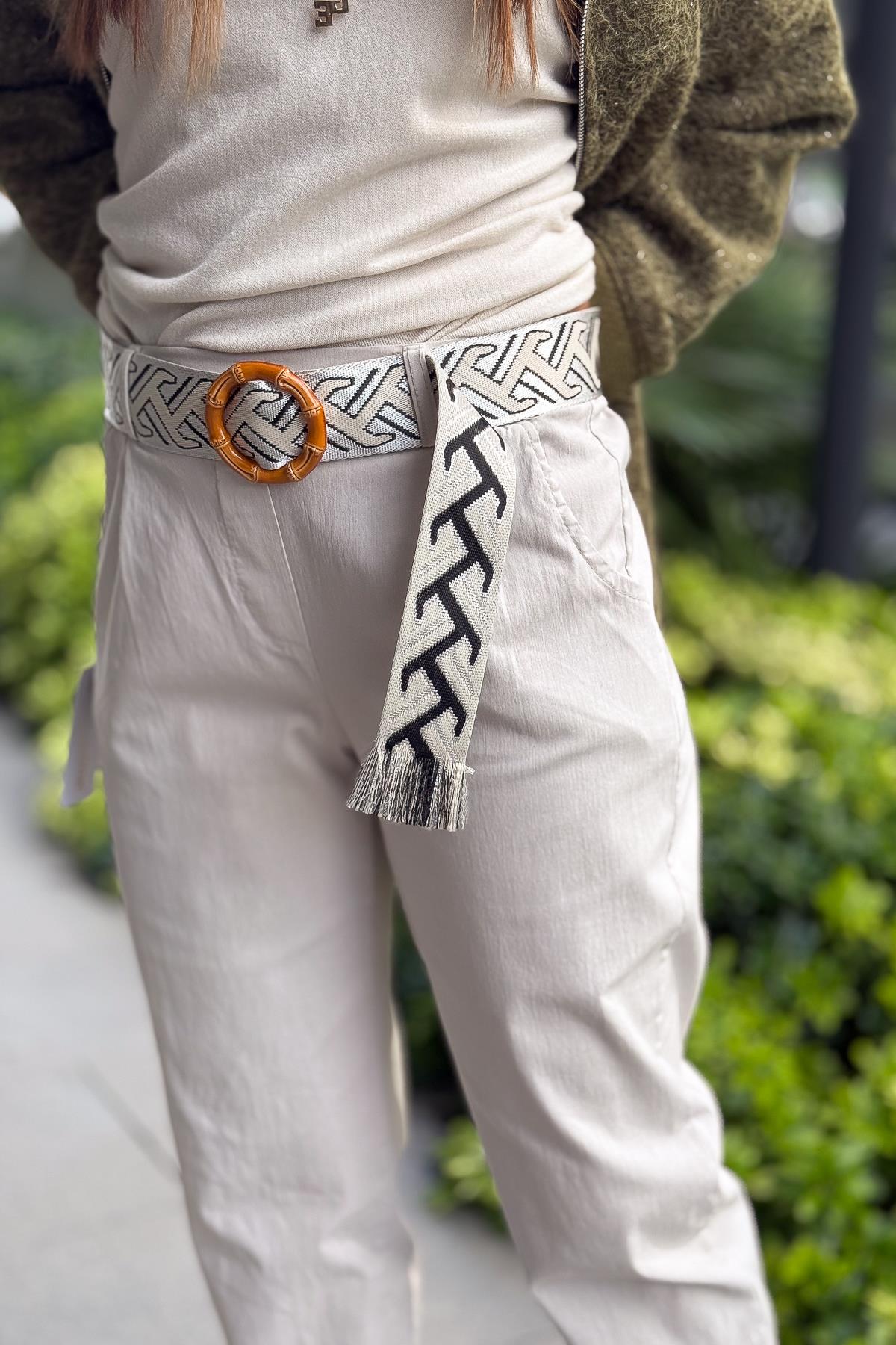 Havuç Paça Aynı Renk Kemerli Kanvas Pantolon Bej Renk