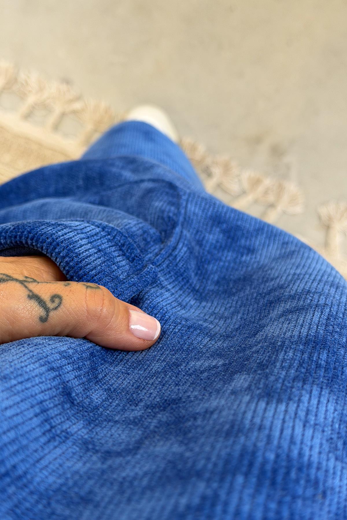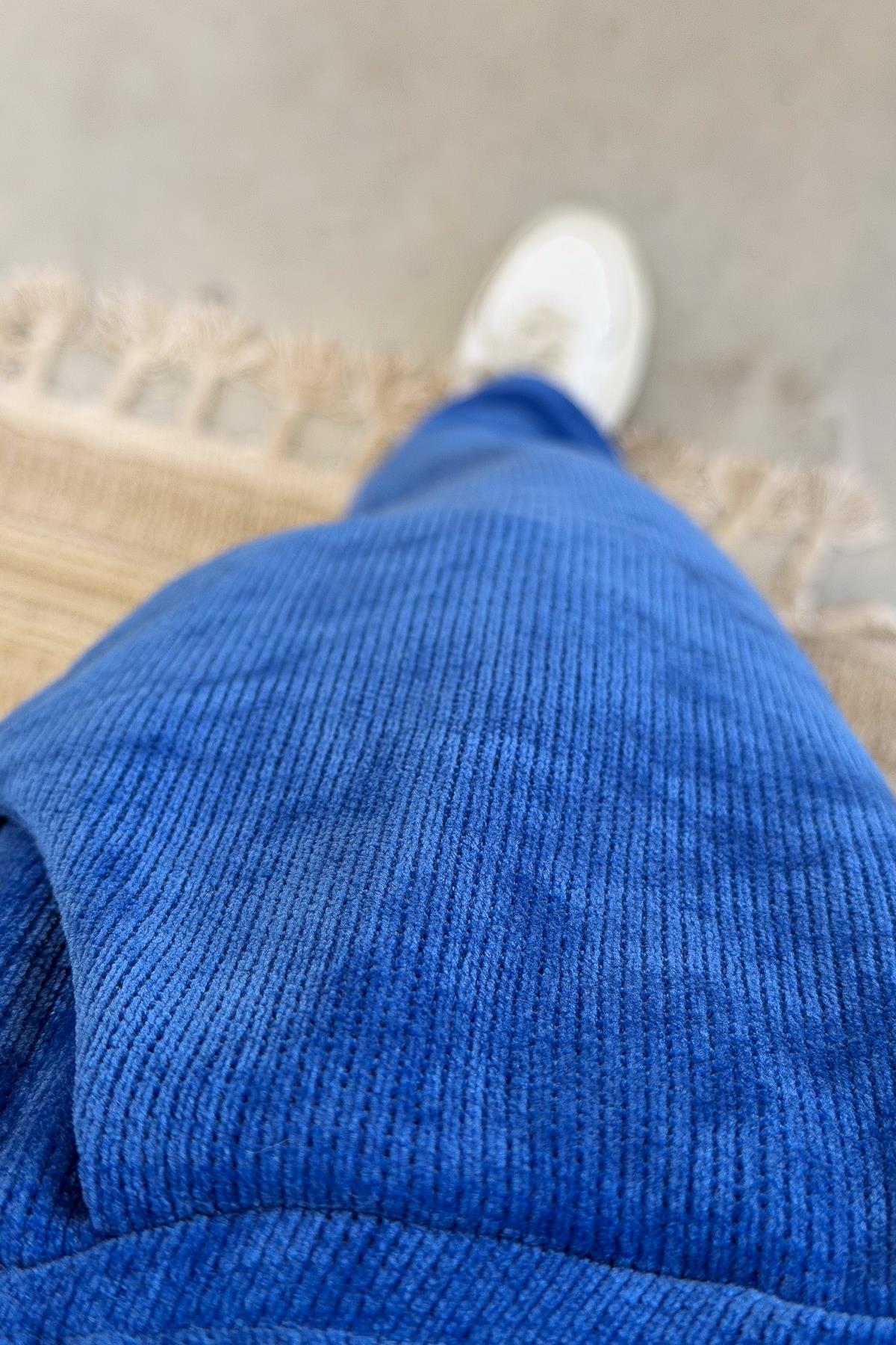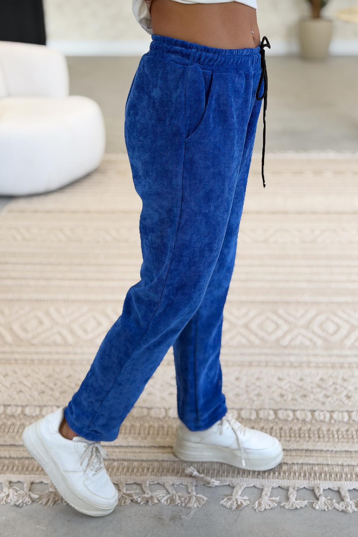 Havuç Paça Beli Lastikli Düz Basic Kadife Eşorfman Altı Saks Renk