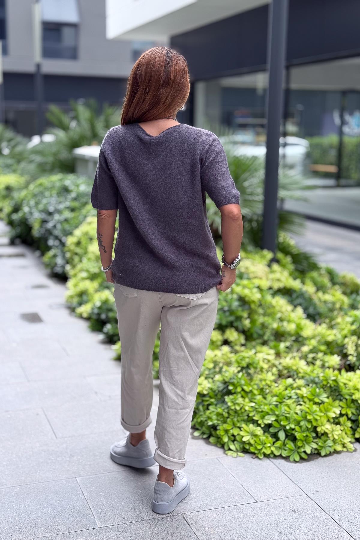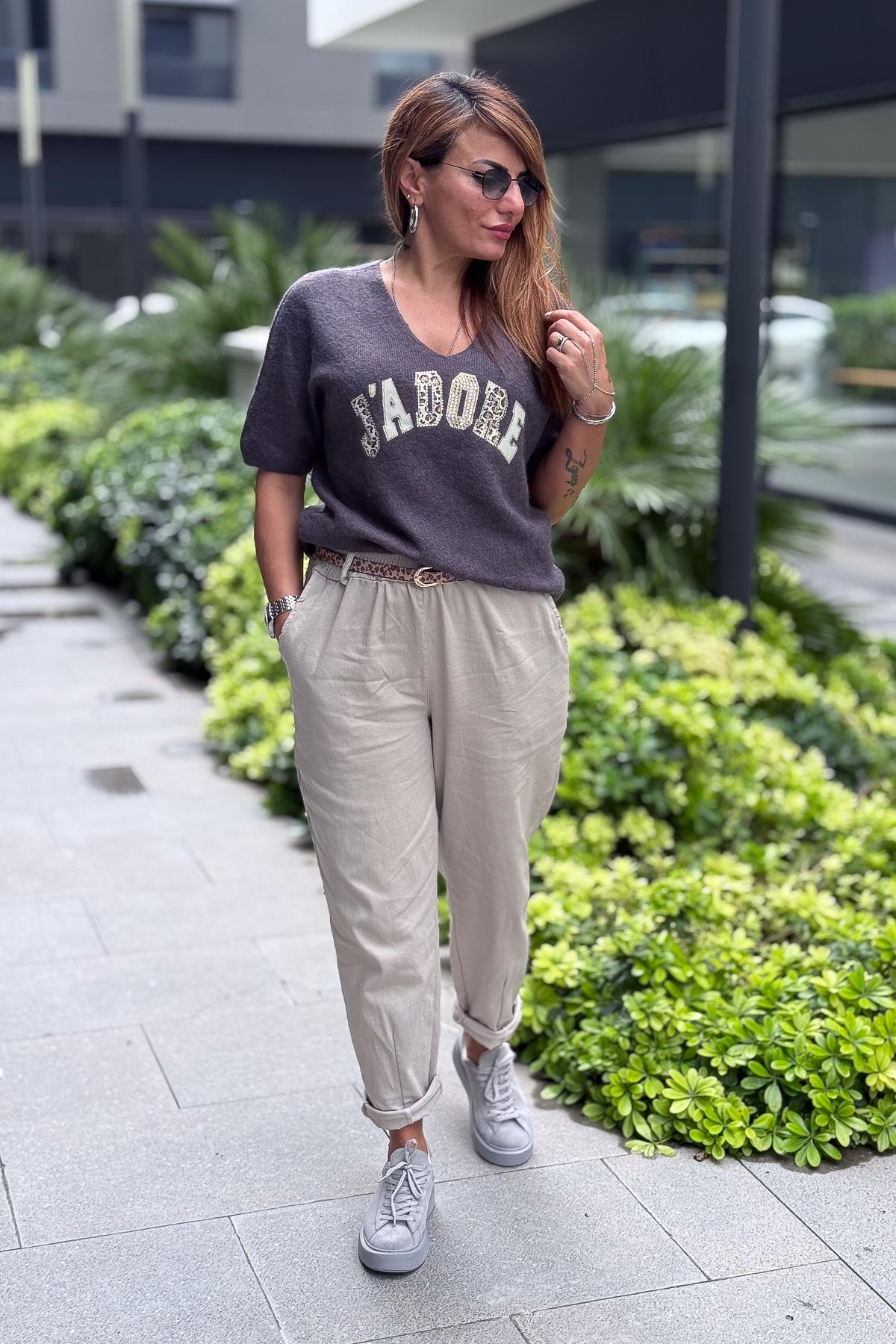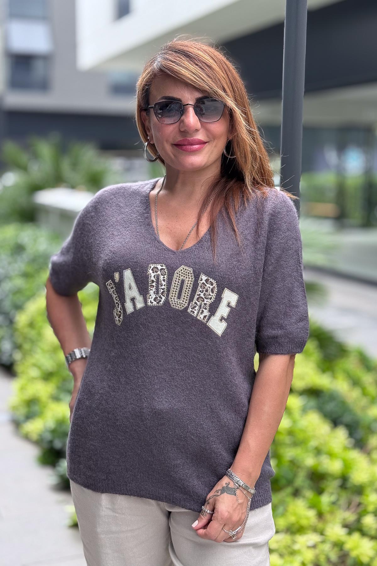 Jadore Taş Baskılı Alpaca Yarımkol Kazak Antresit Renk