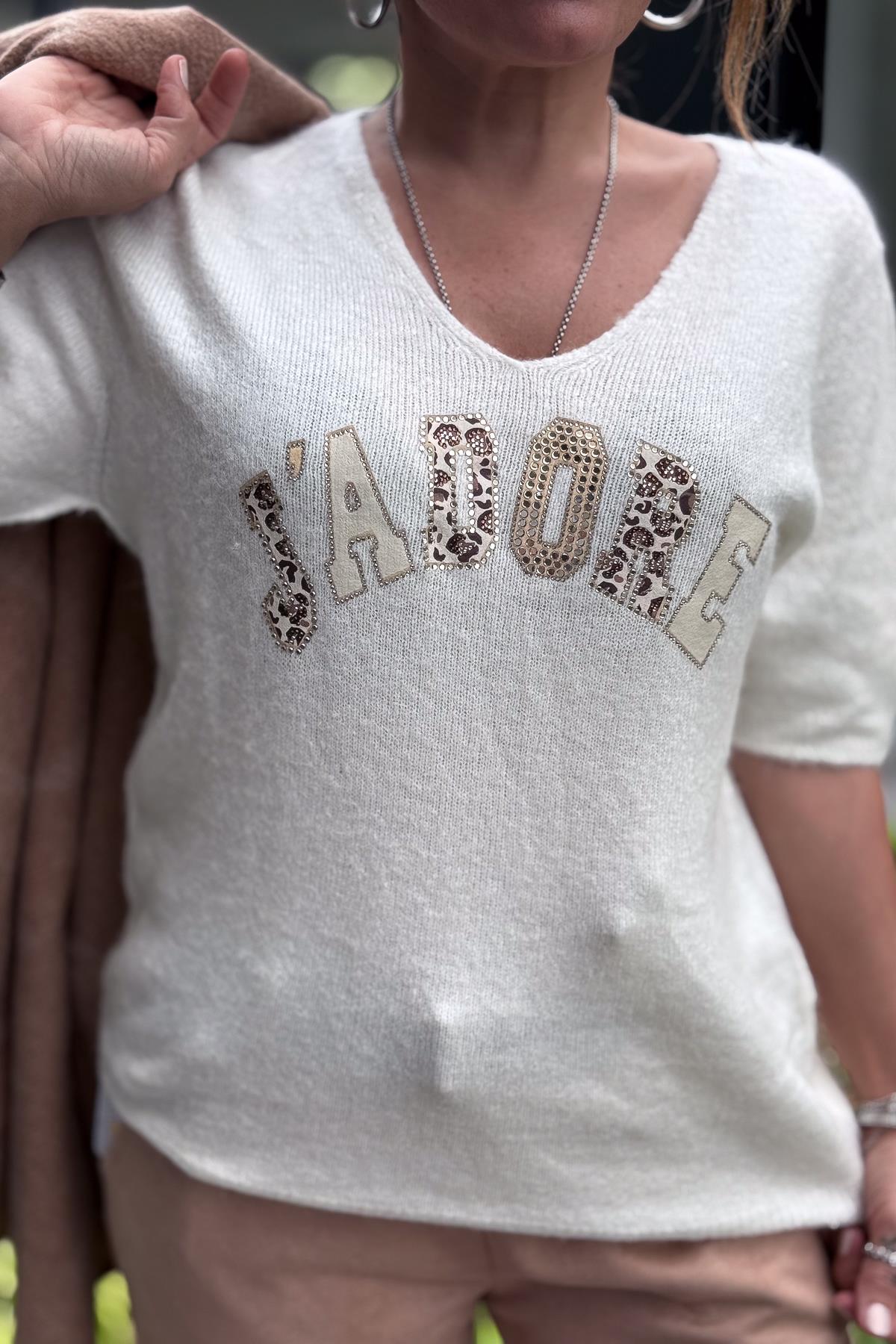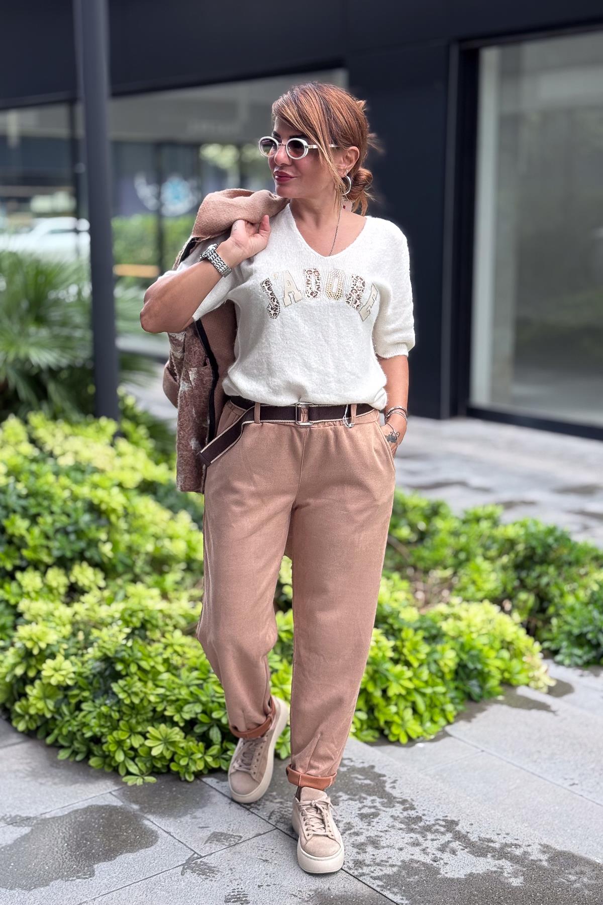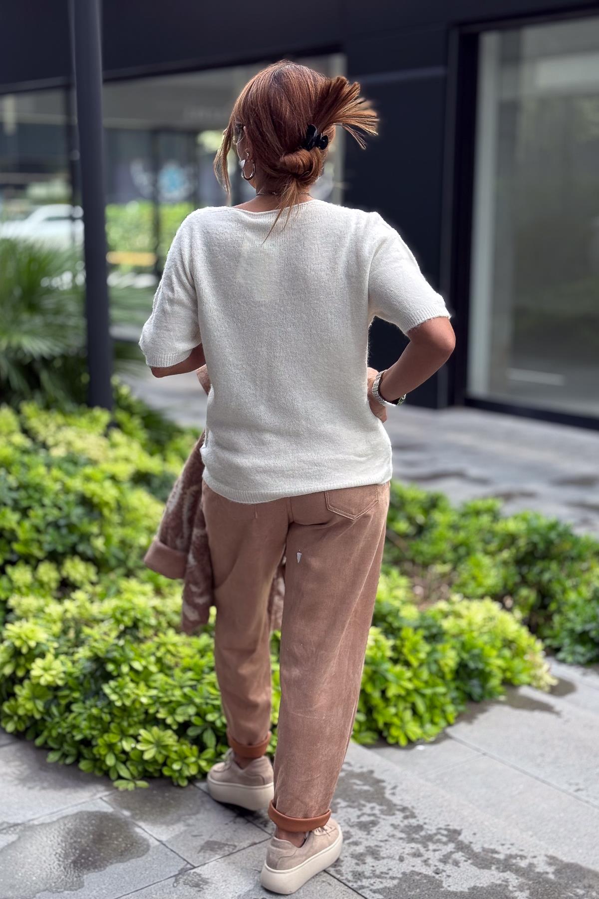 Jadore Taş Baskılı Alpaca Yarımkol Kazak Krem Renk