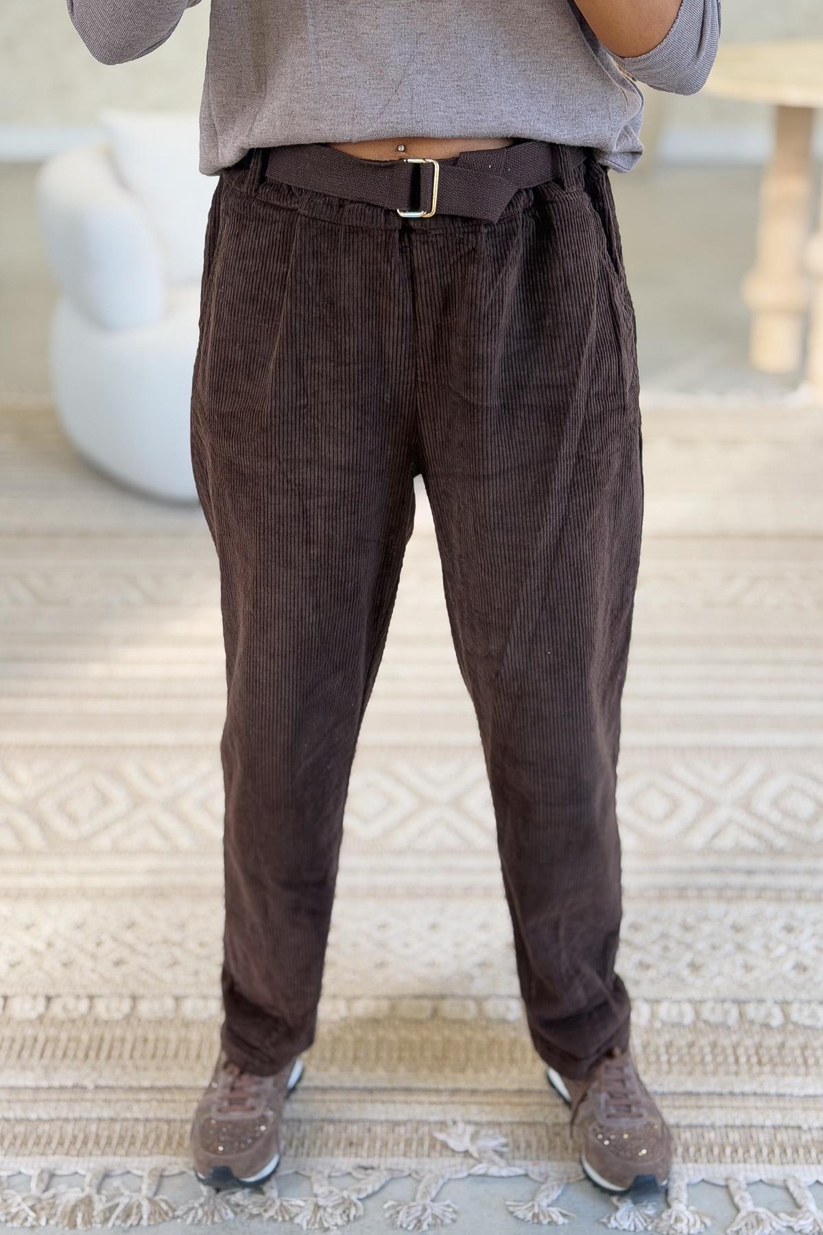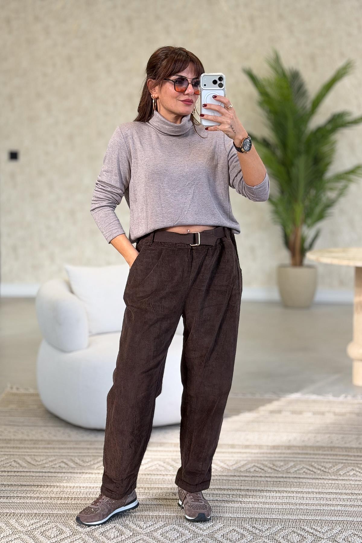 Kalın Fitilli Çift Cepli Gömlekli Alt Üst Kadife Takım Acı Kahve Renk