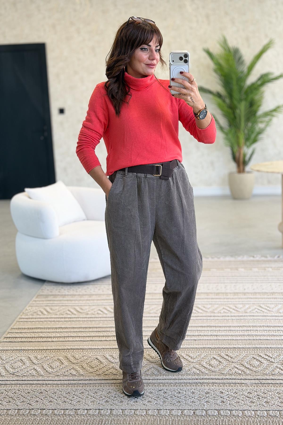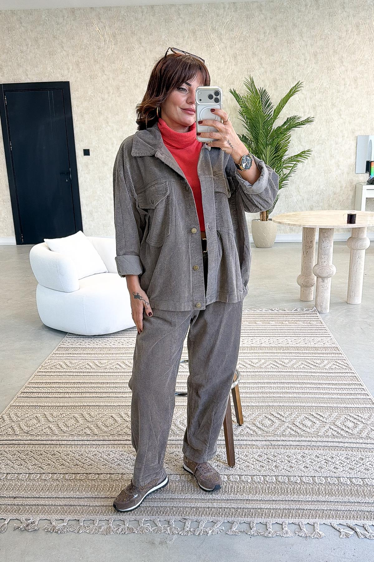 Kalın Fitilli Çift Cepli Gömlekli Alt Üst Kadife Takım Vizon Renk
