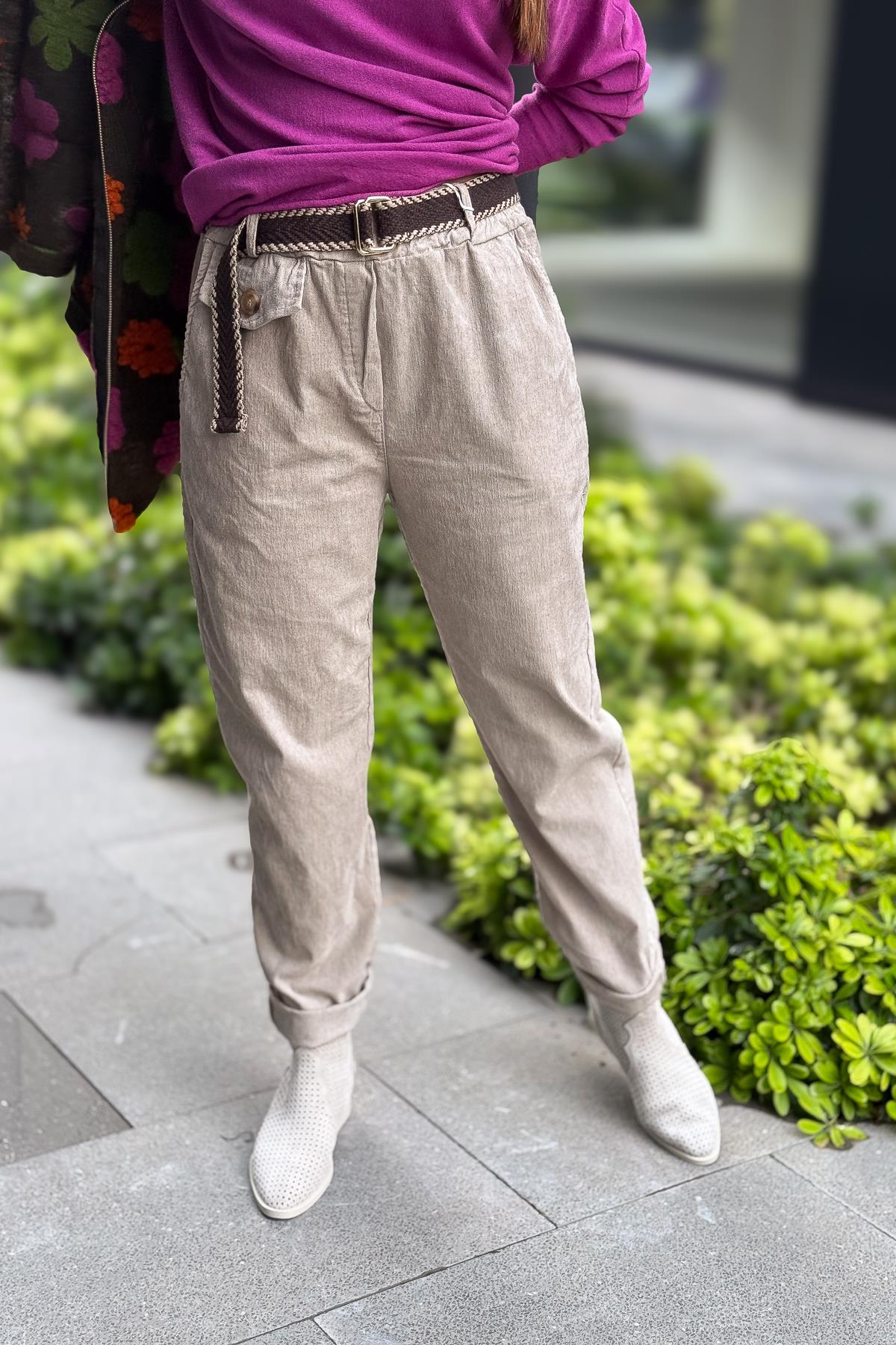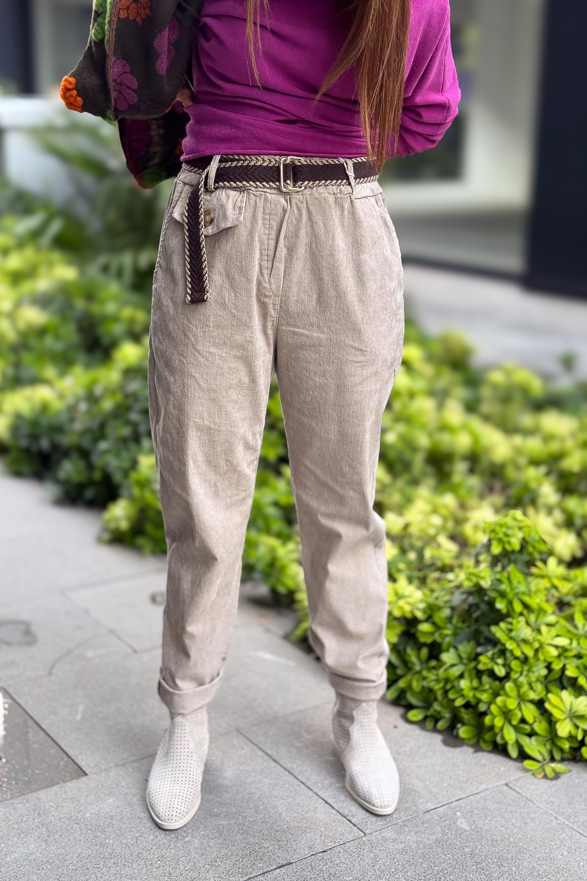 Kapak Cep Detaylı Premium Kadife Pantolon Açık Vizon Renk