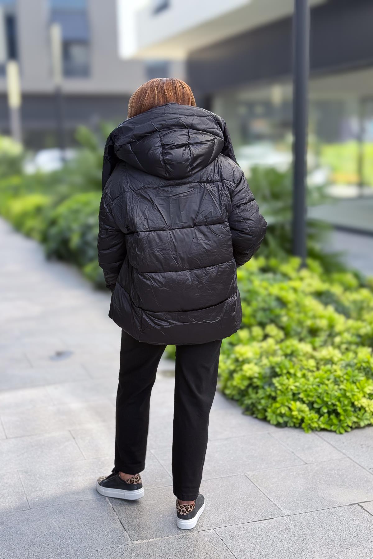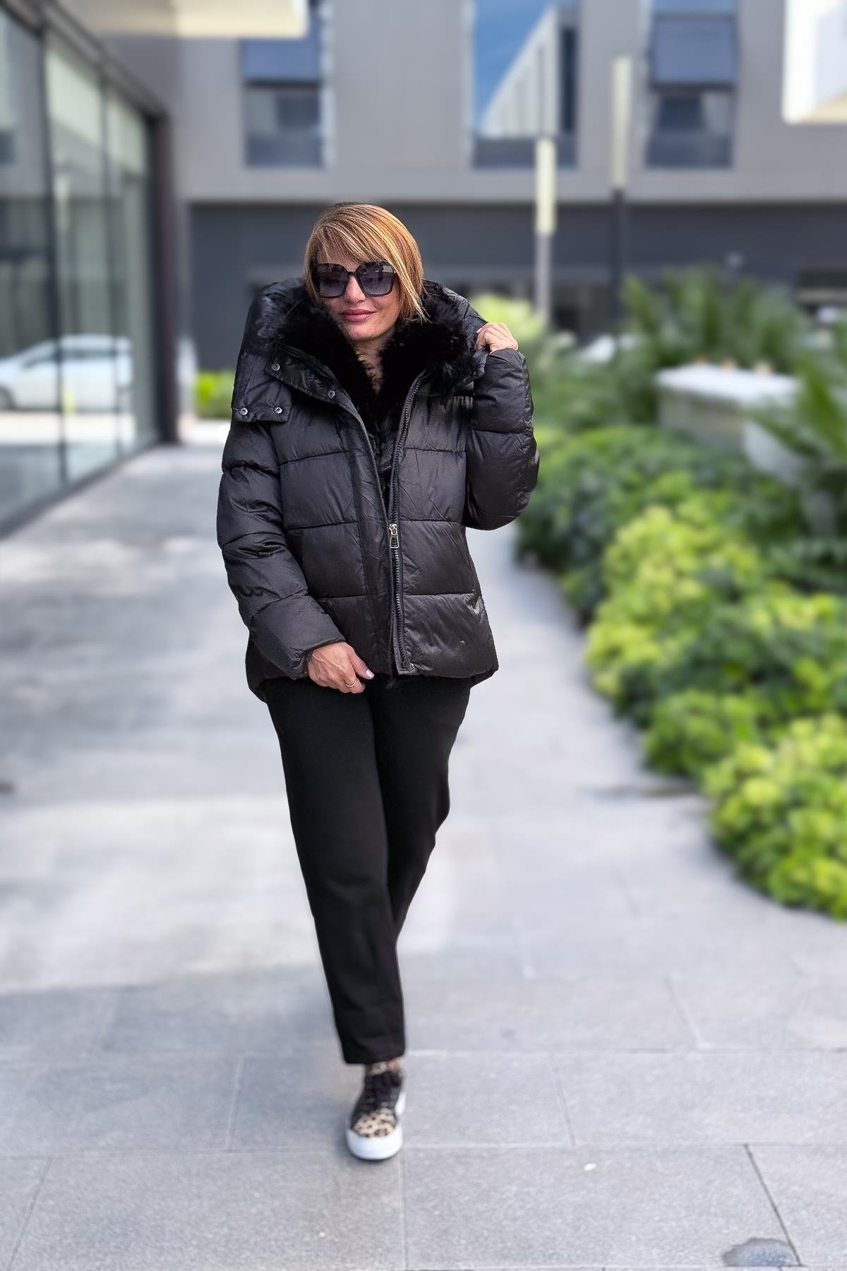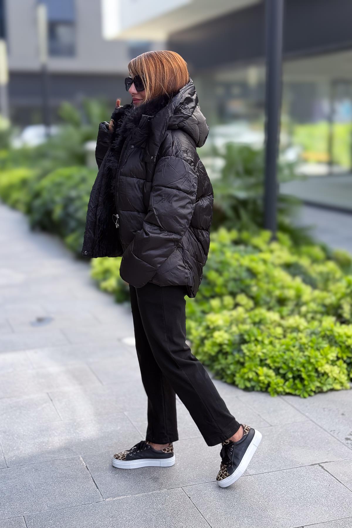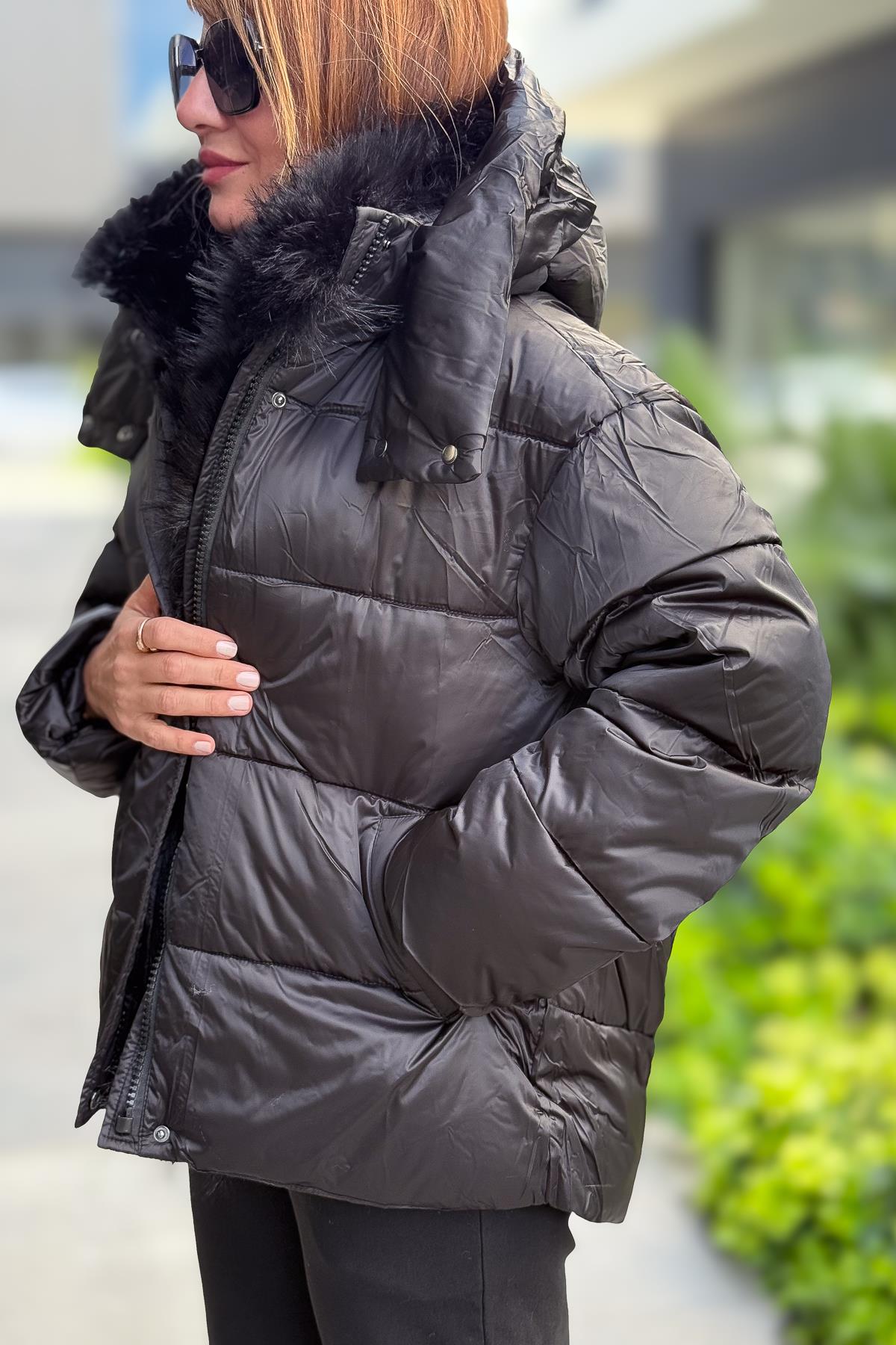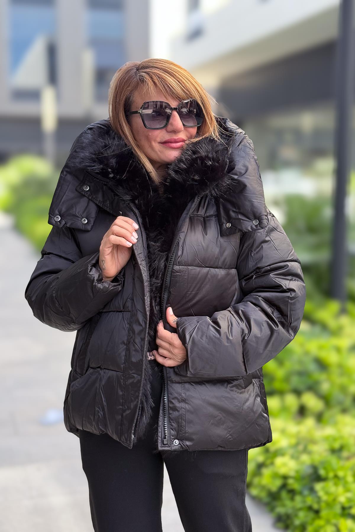 Kapüşonu Kürklü Şişme Mont Siyah Renk