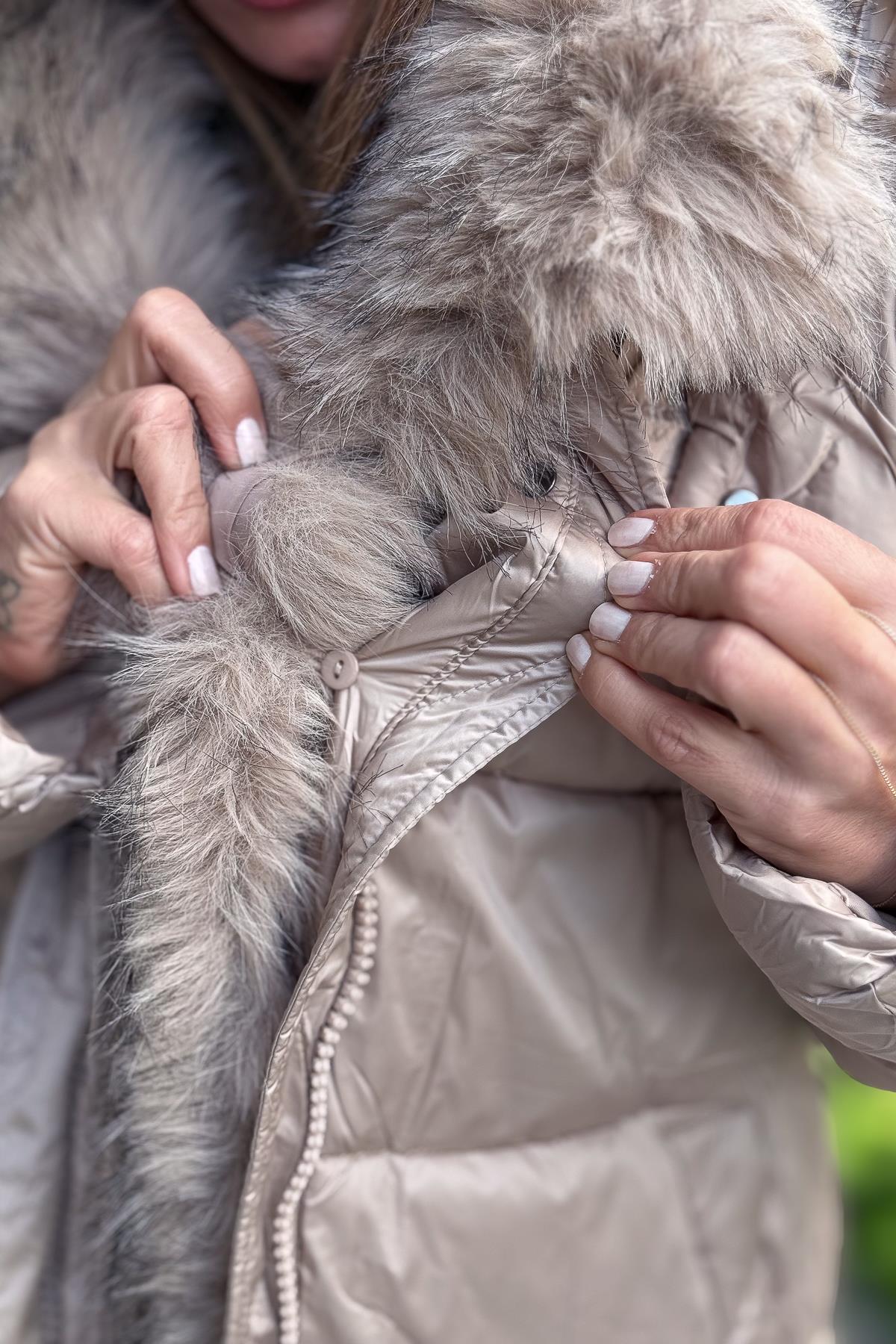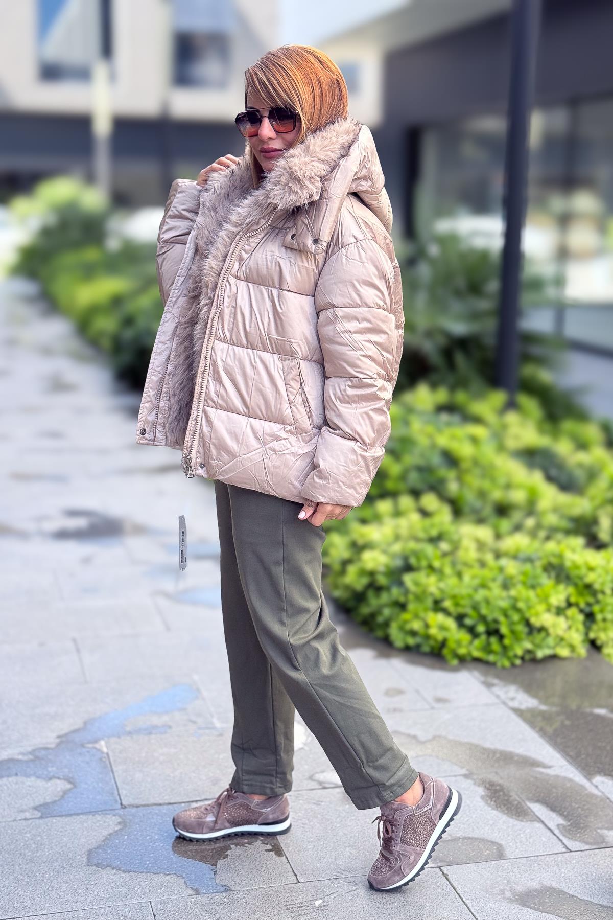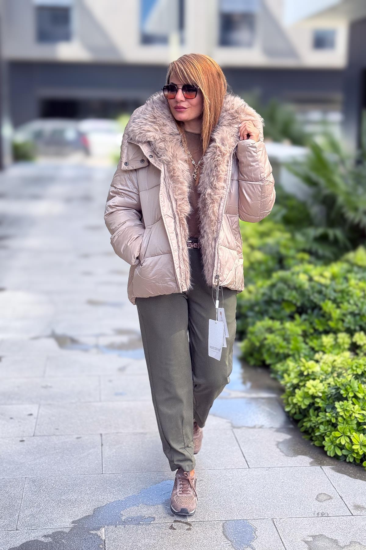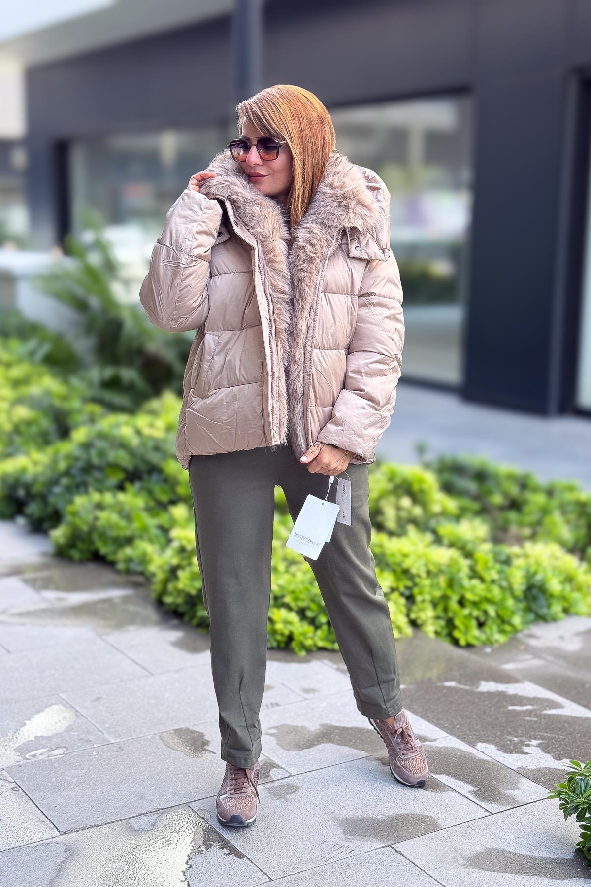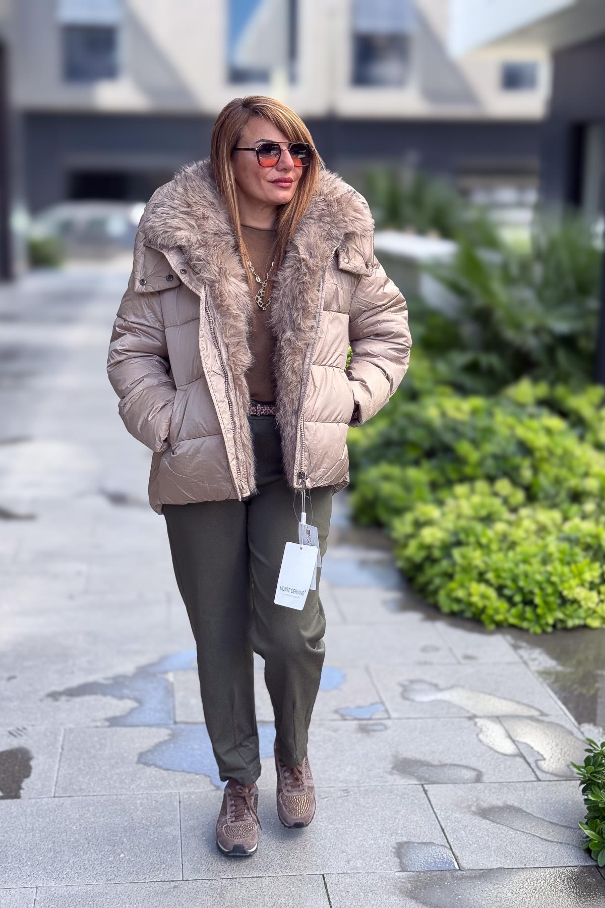 Kapüşonu Kürklü Şişme Mont Vizon Renk