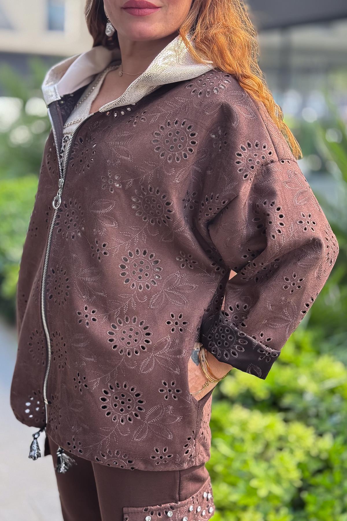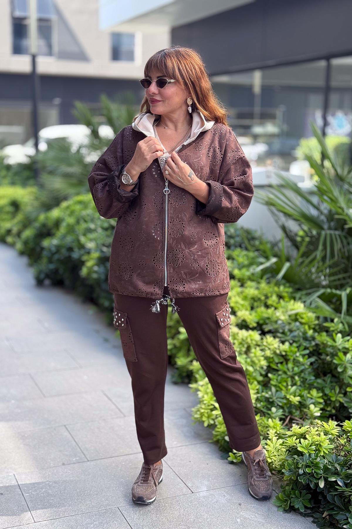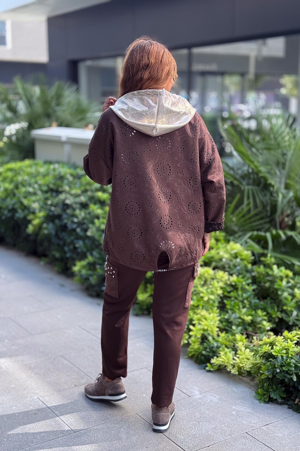 Kapüşonu Laklı Güderi Fistolu Ceket Kahverengi Renk