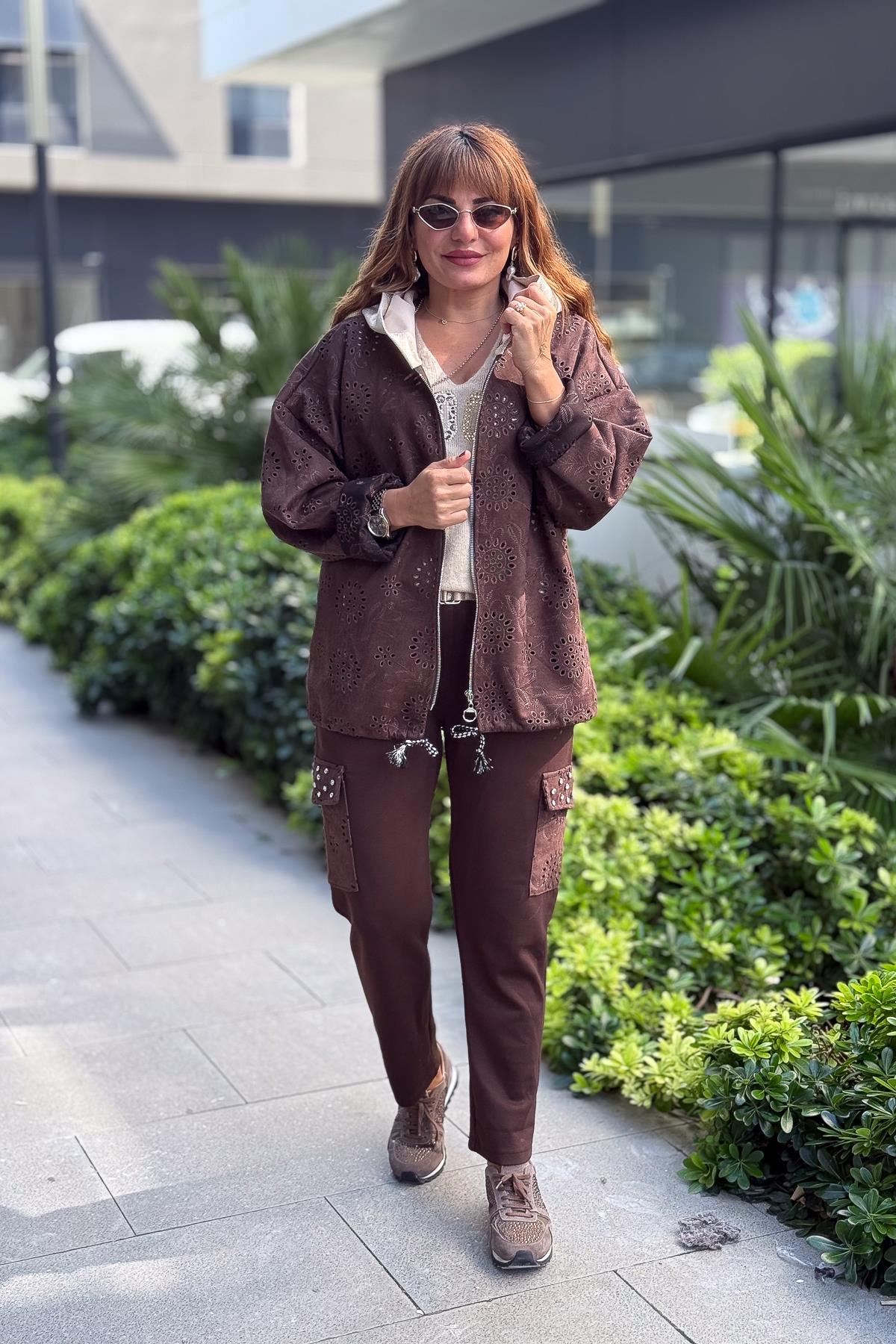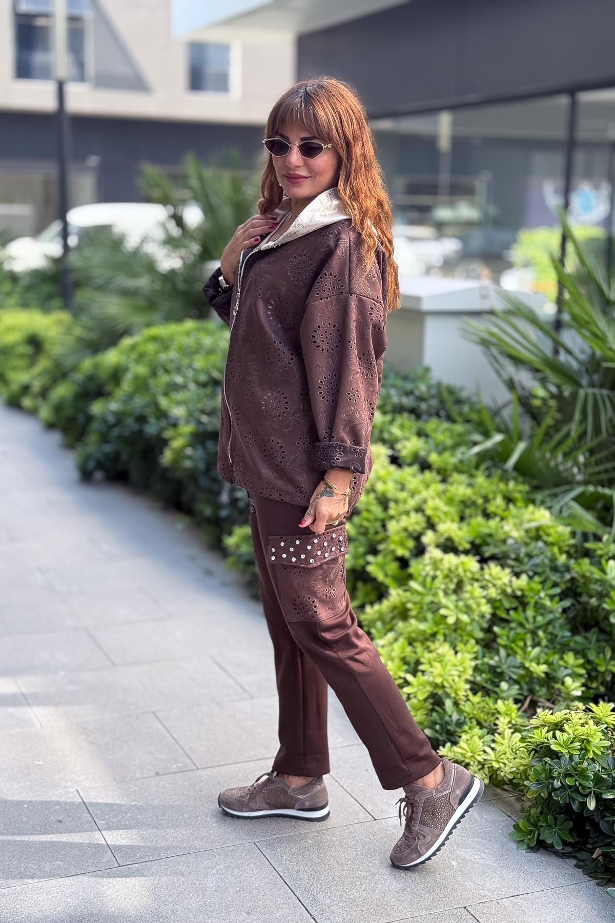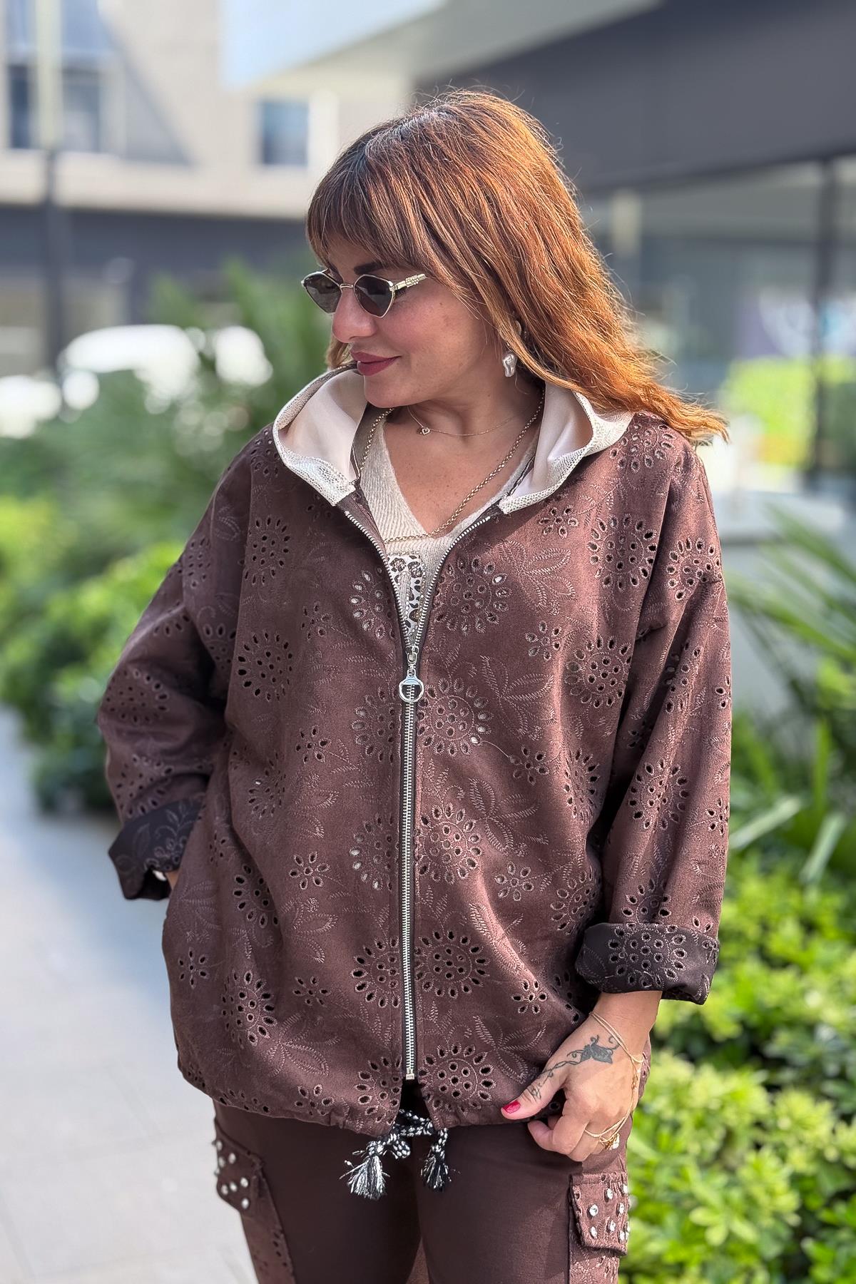 Kapüşonu Laklı Güderi Fistolu Ceket Kahverengi Renk