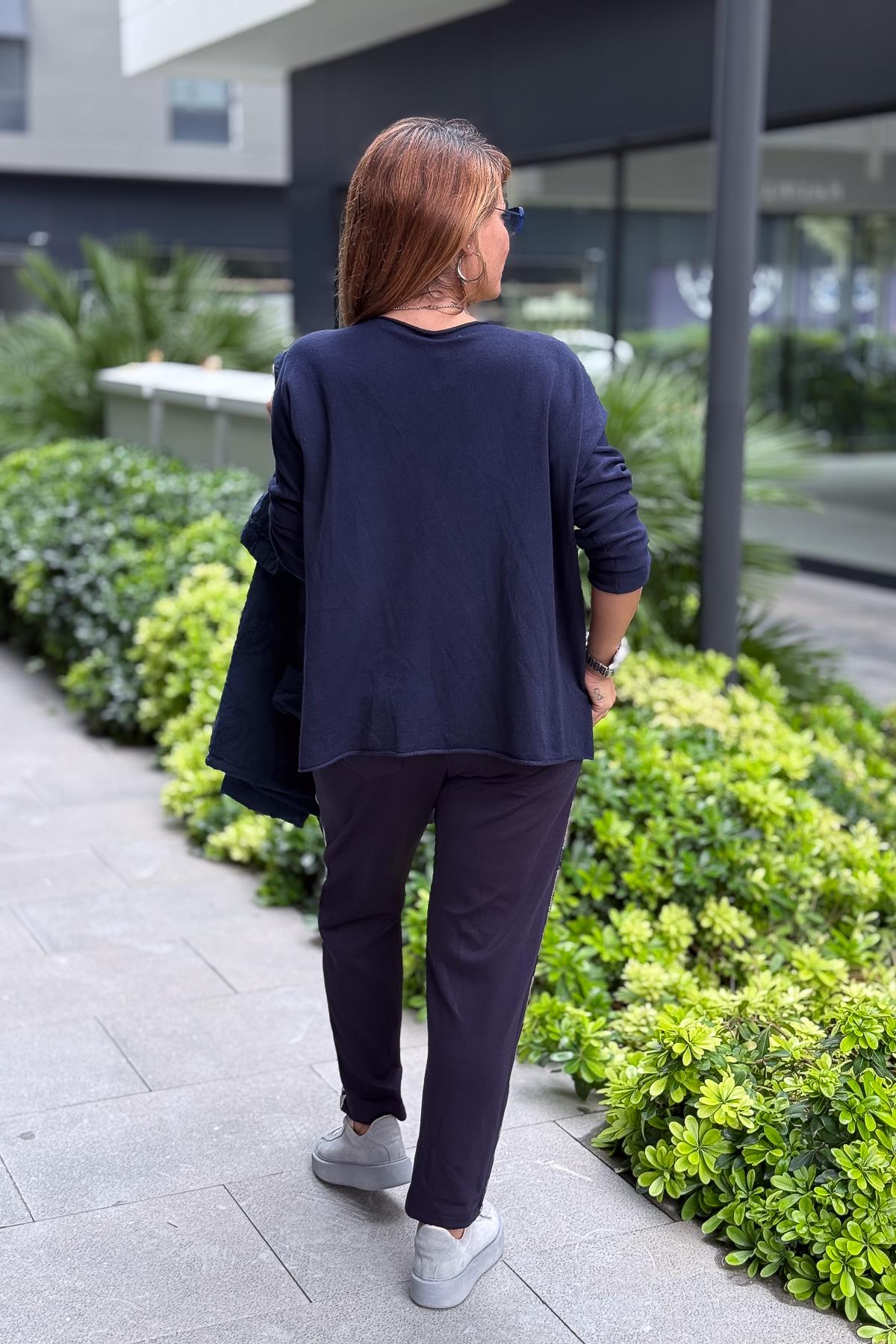 Kayık Yaka Kuzu Yünü Triko Lacivert Renk