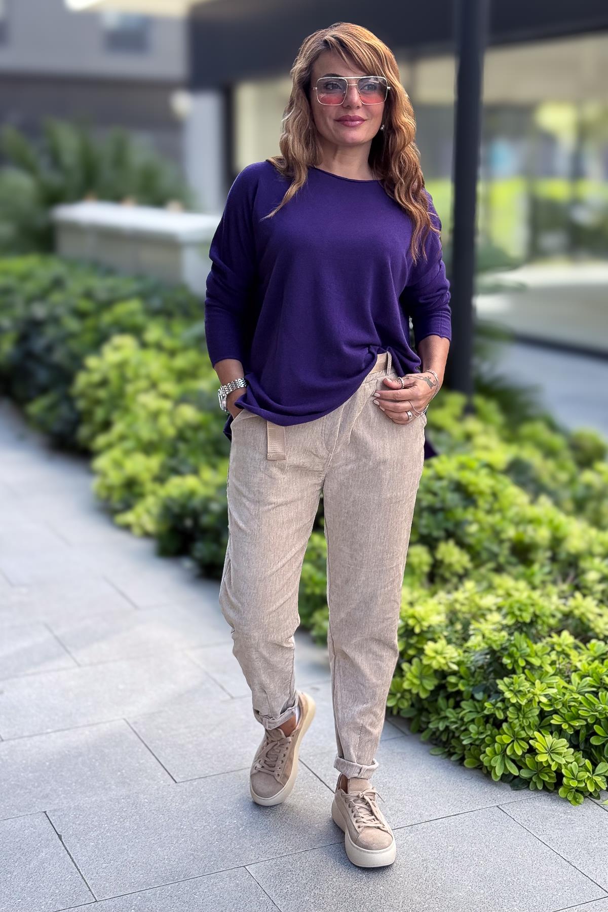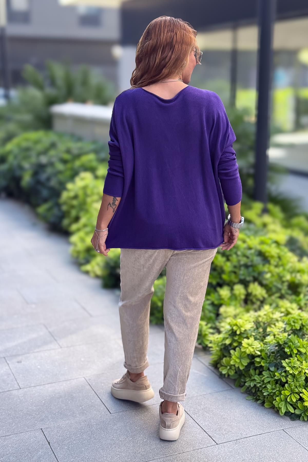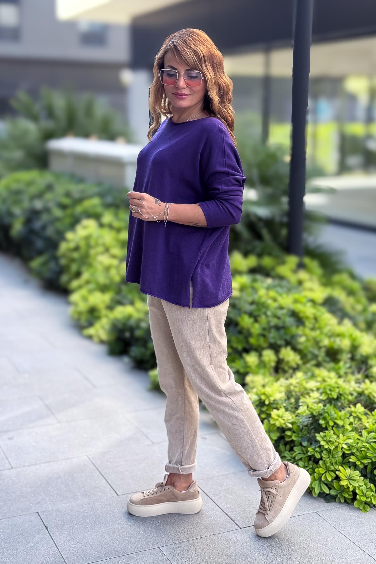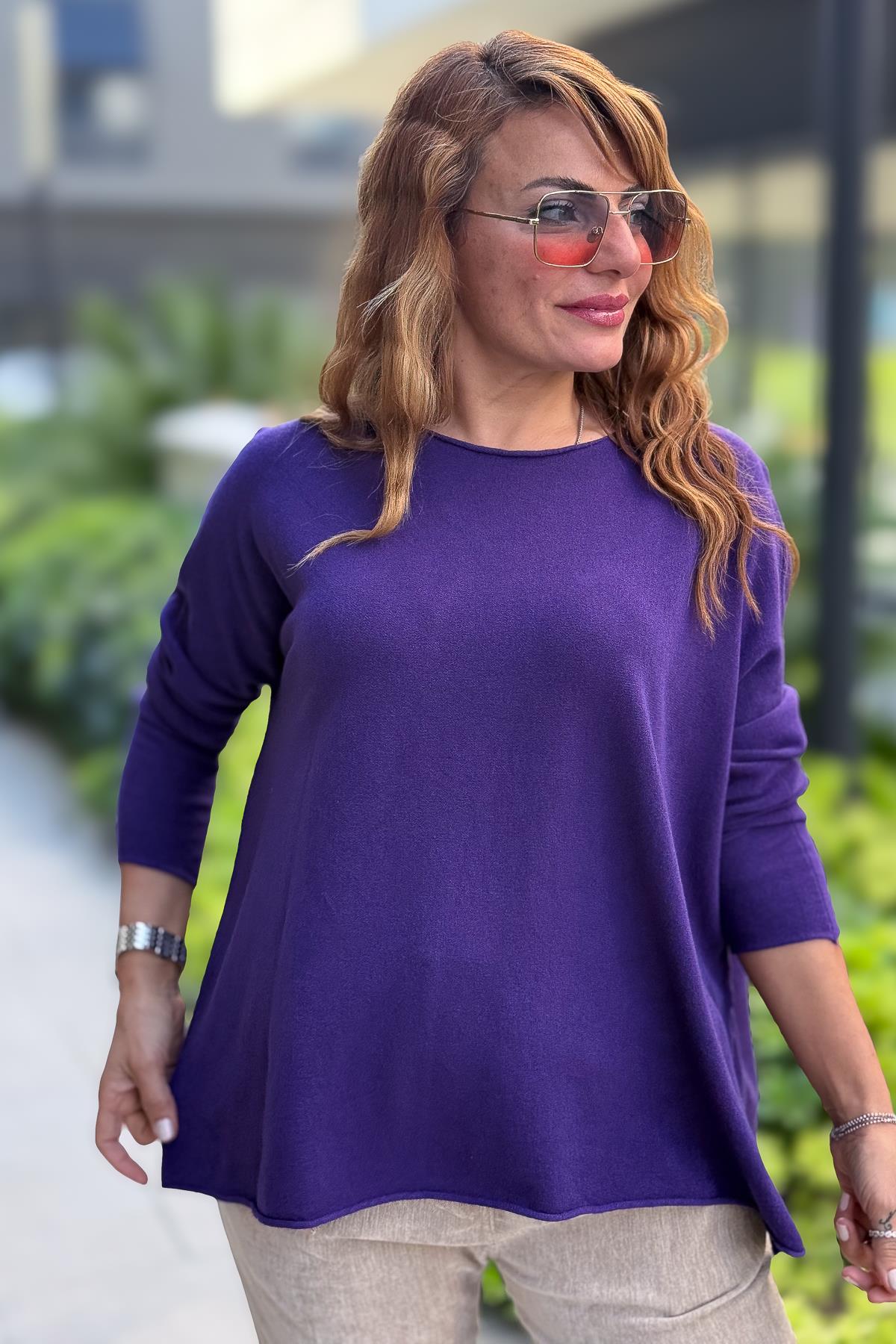 Kayık Yaka Kuzu Yünü Triko Mor Renk
