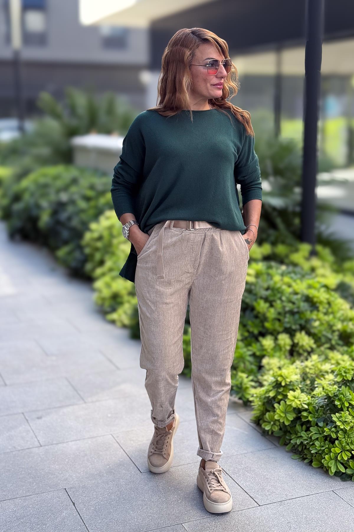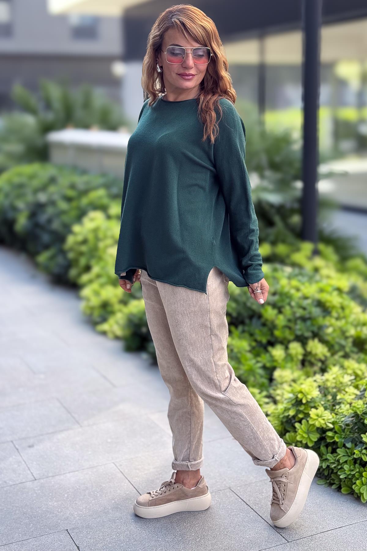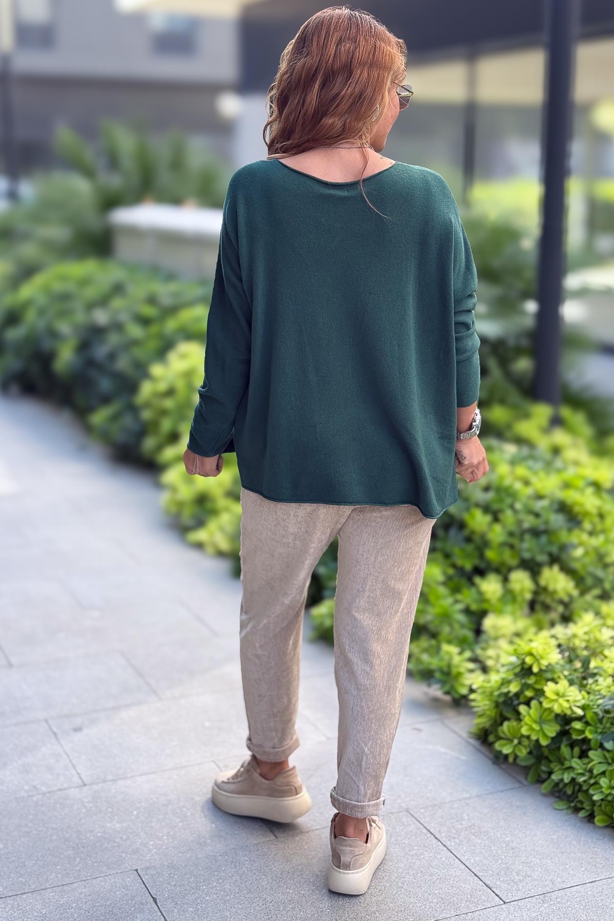 Kayık Yaka Kuzu Yünü Triko Nefti Yeşil Renk