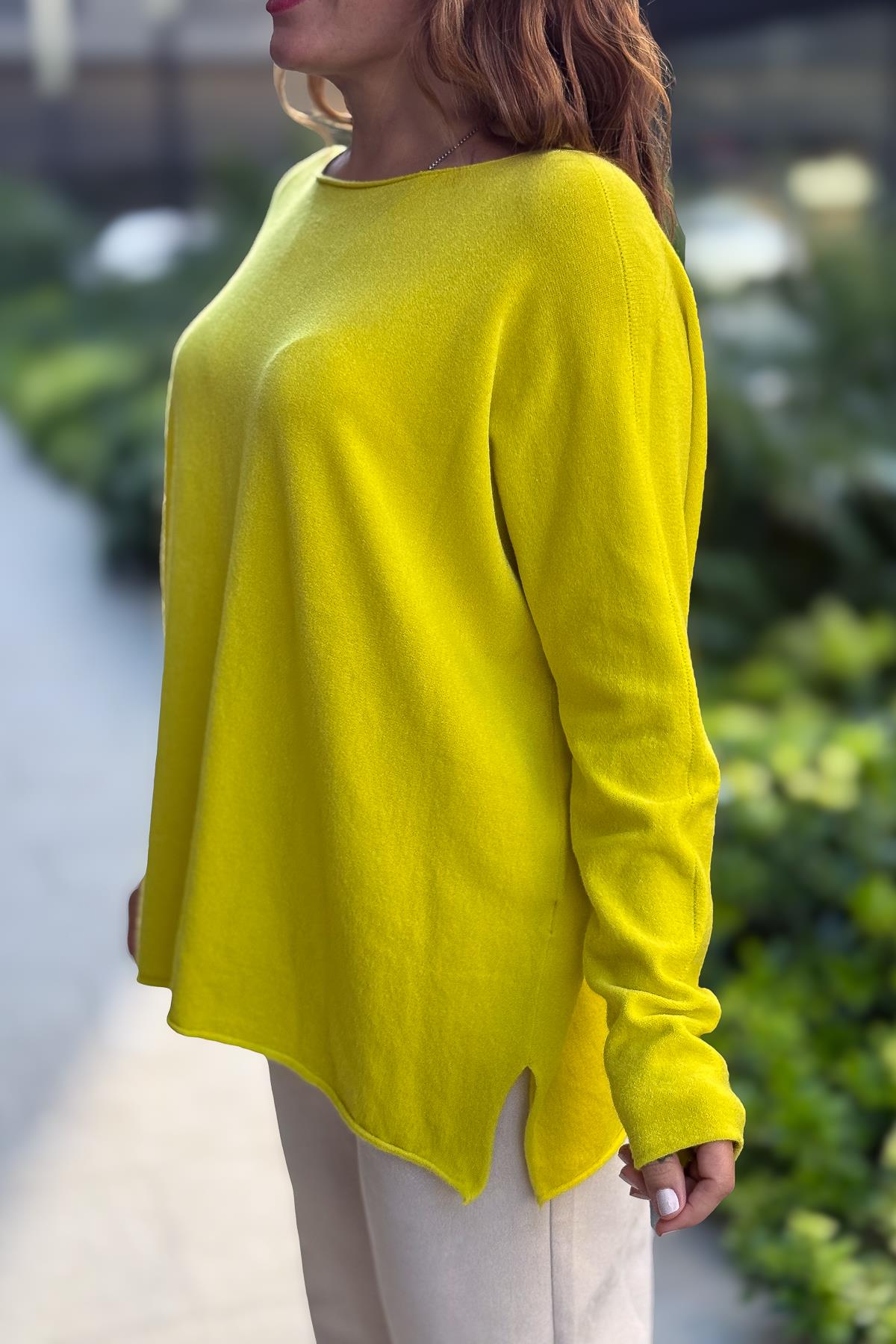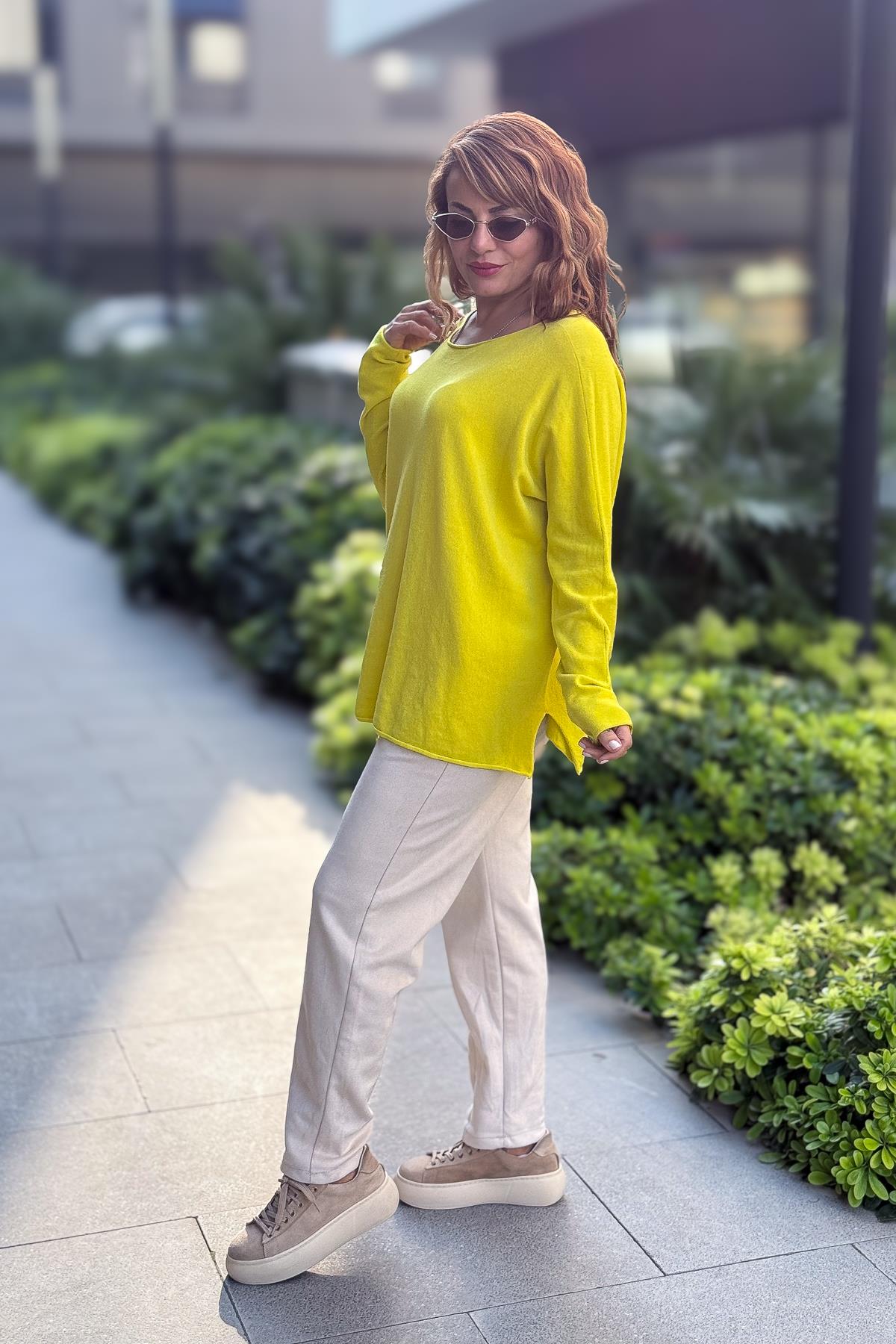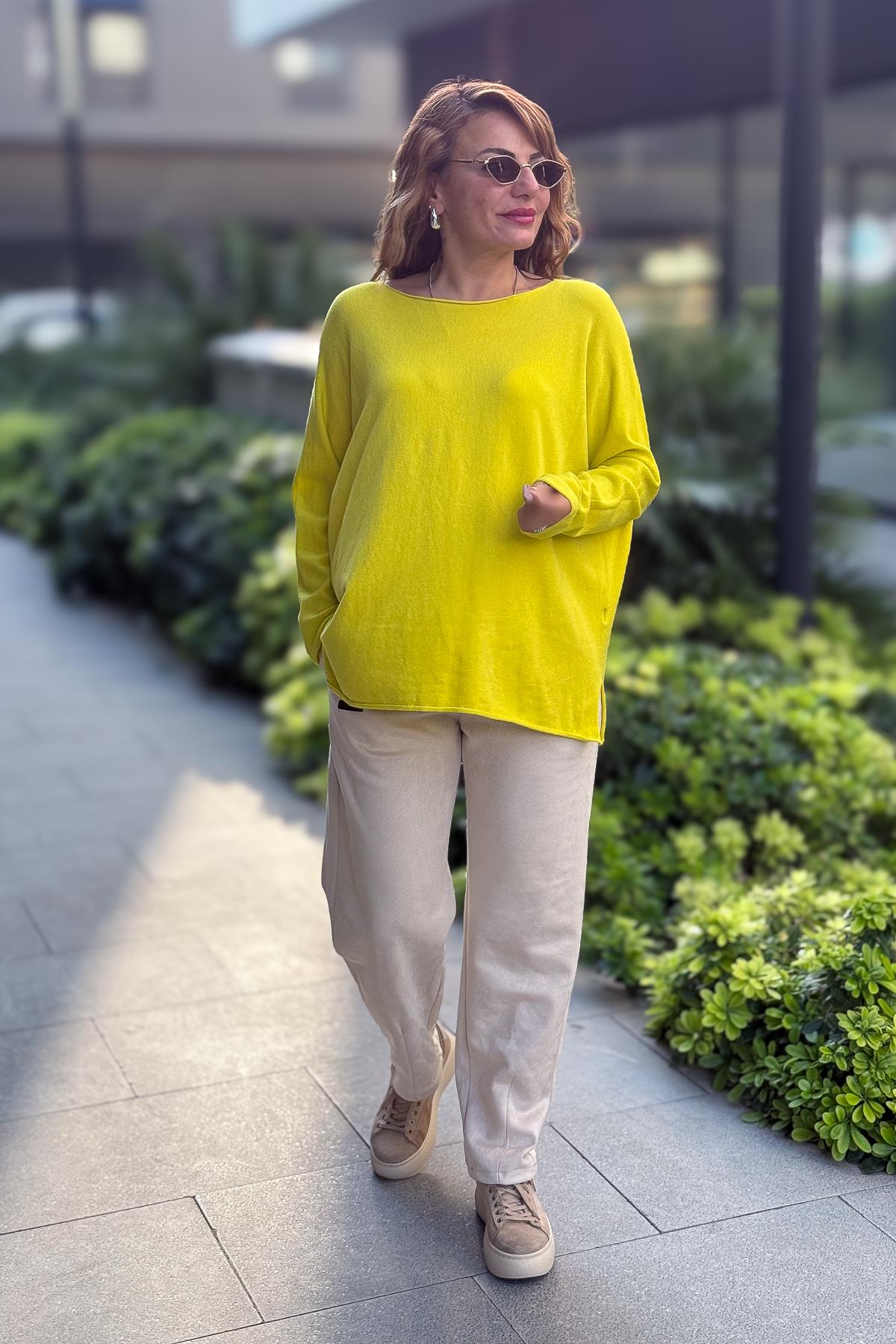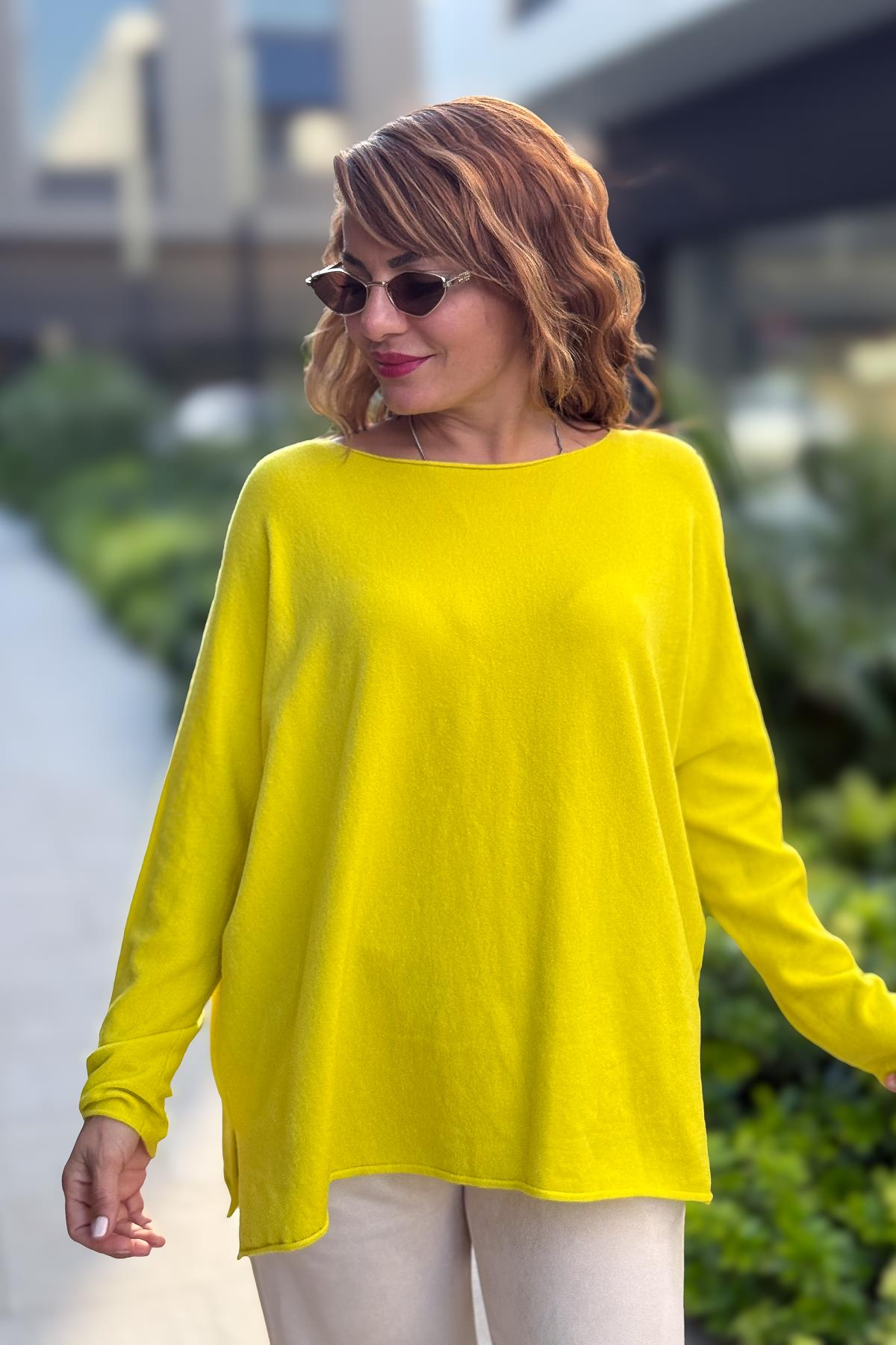Kayık Yaka Kuzu Yünü Triko Sarı Renk