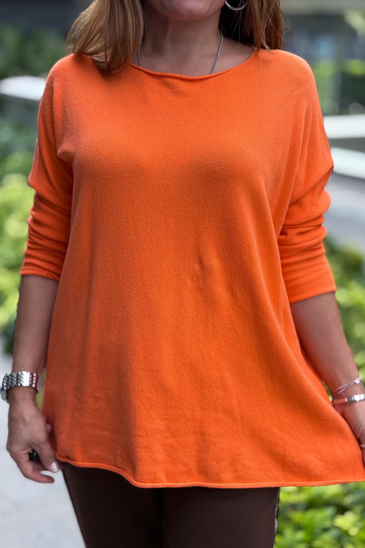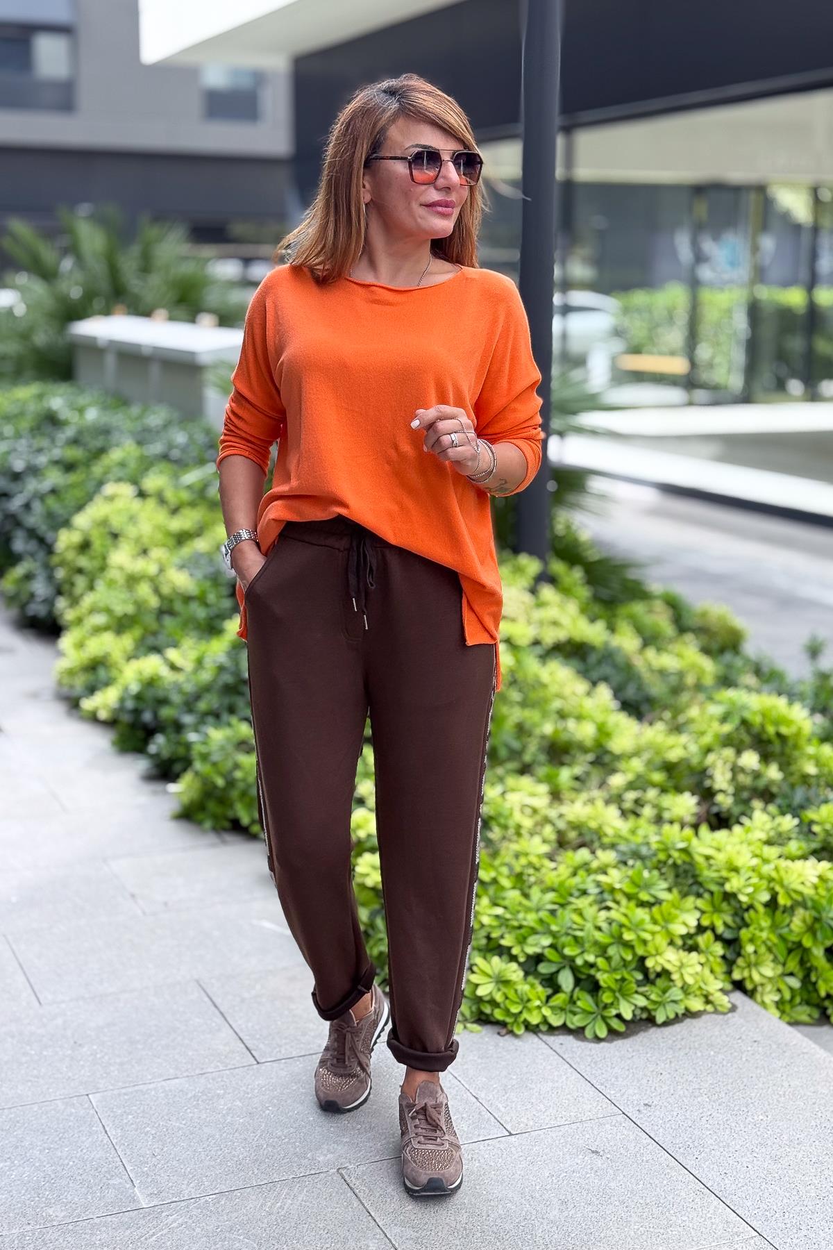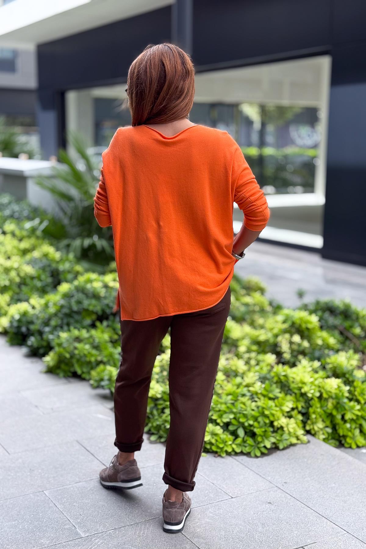 Kayık Yaka Kuzu Yünü Triko Turuncu Renk