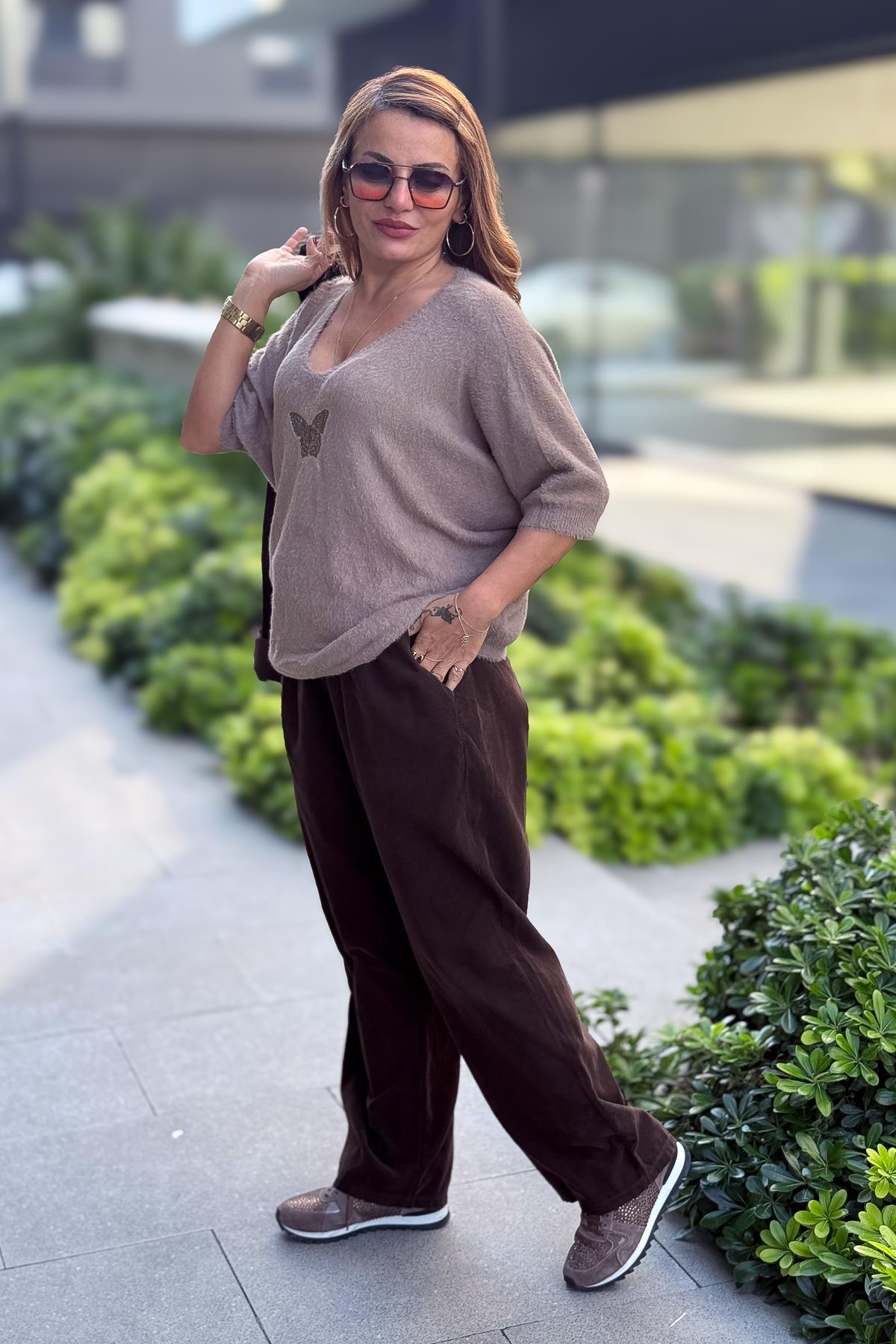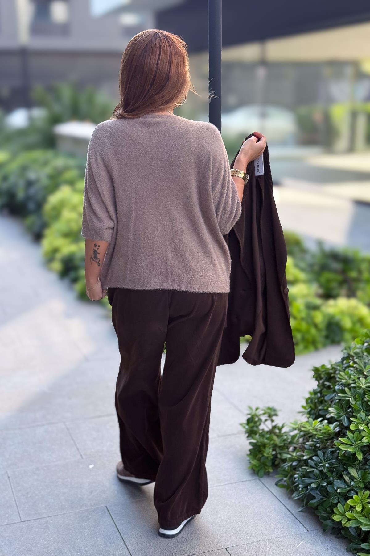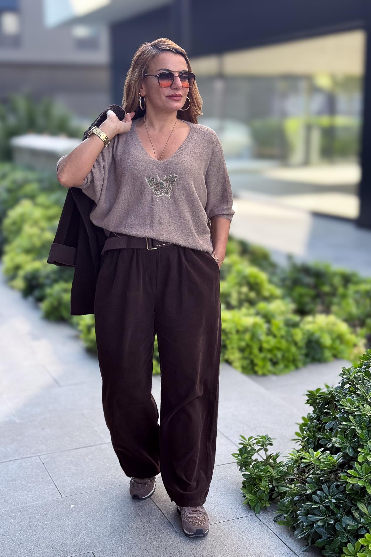 Kelebek Baskılı Yarım Kol Angora Kazak Vizon Renk