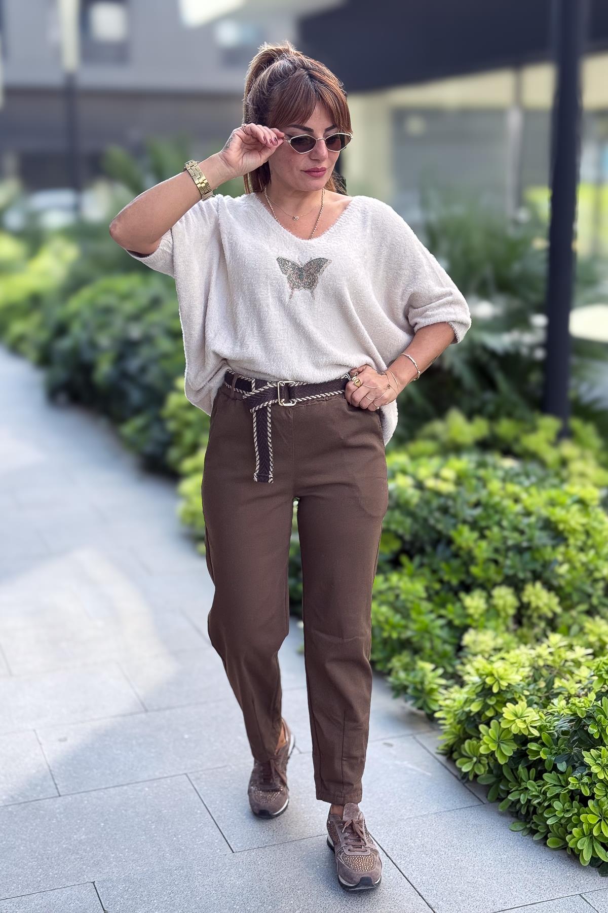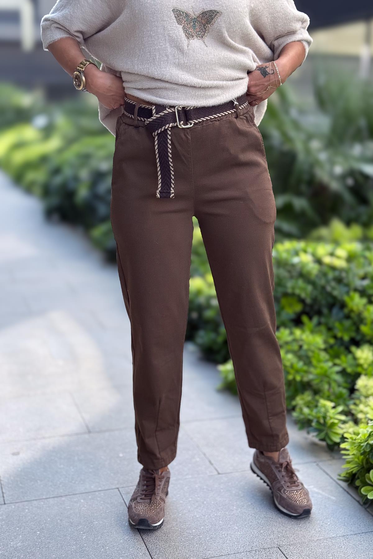Kemerli Kanvas Pantolon Kahverengi Renk
