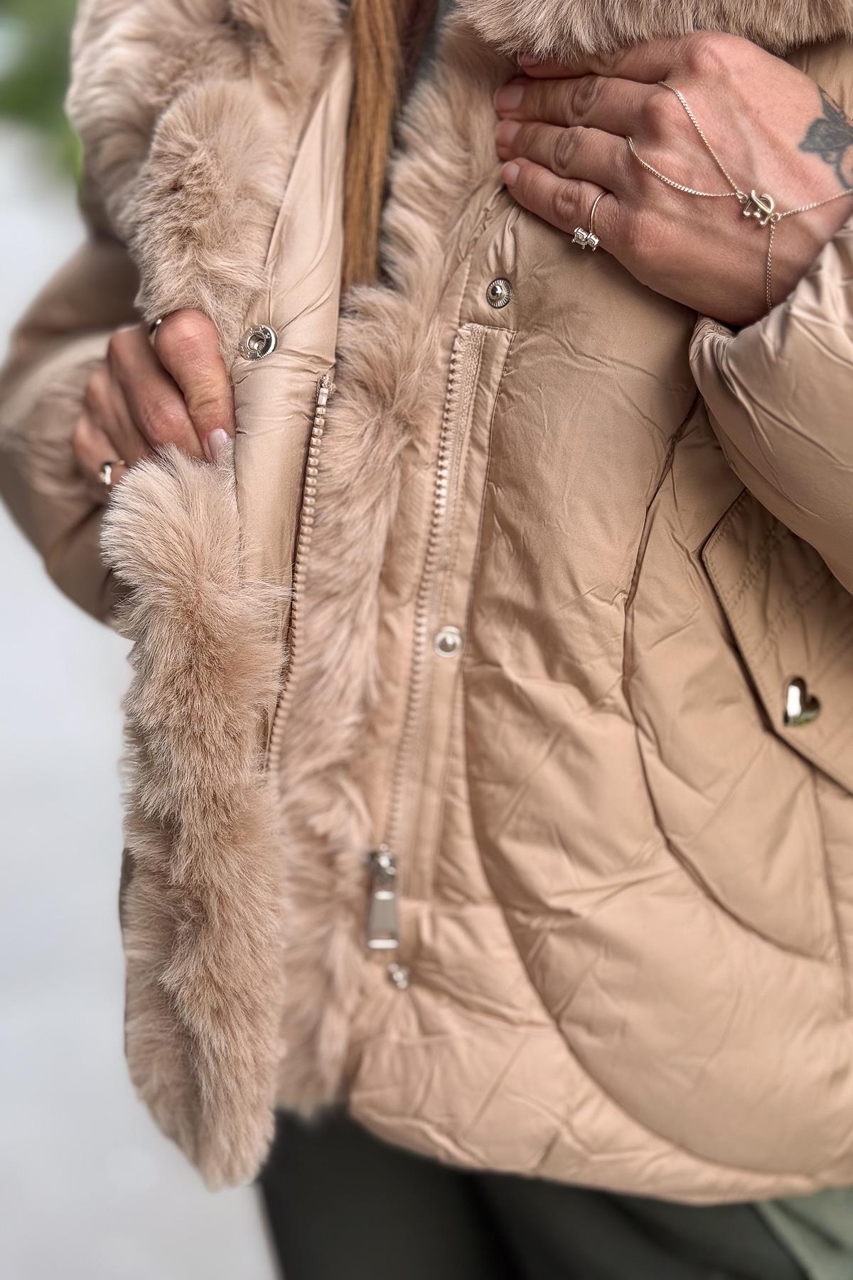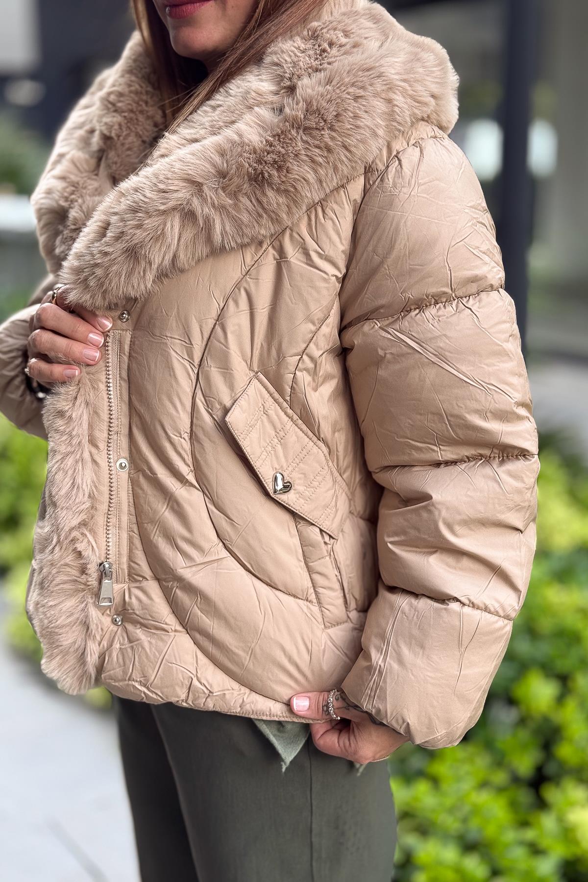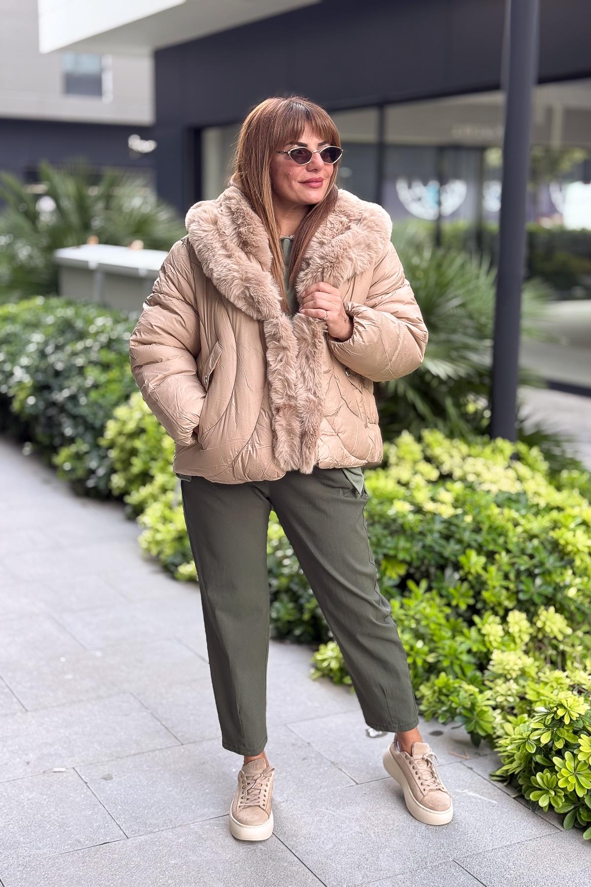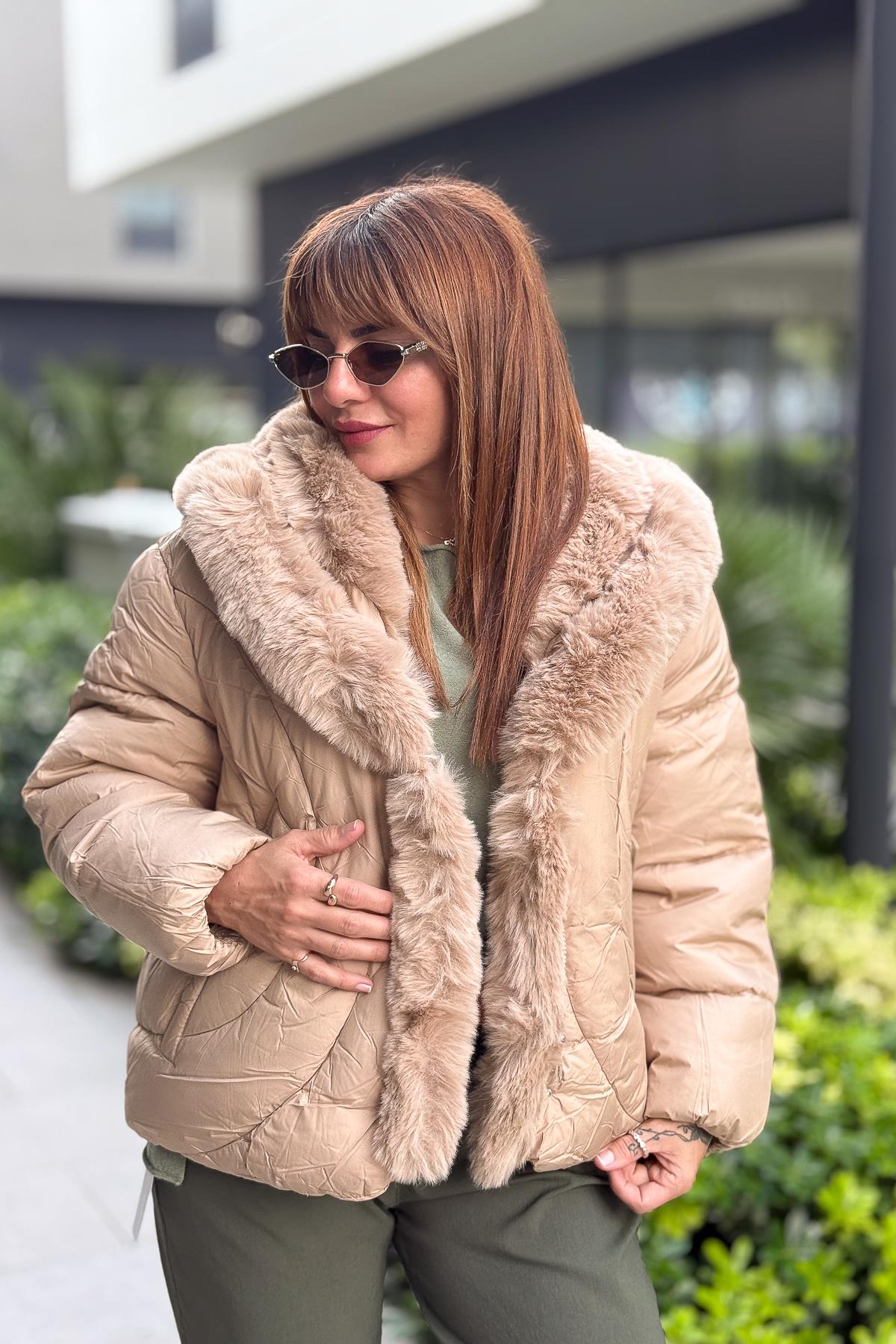 Kürk Yakalı Kalp Cıtcıtlı Mont Camel Renk