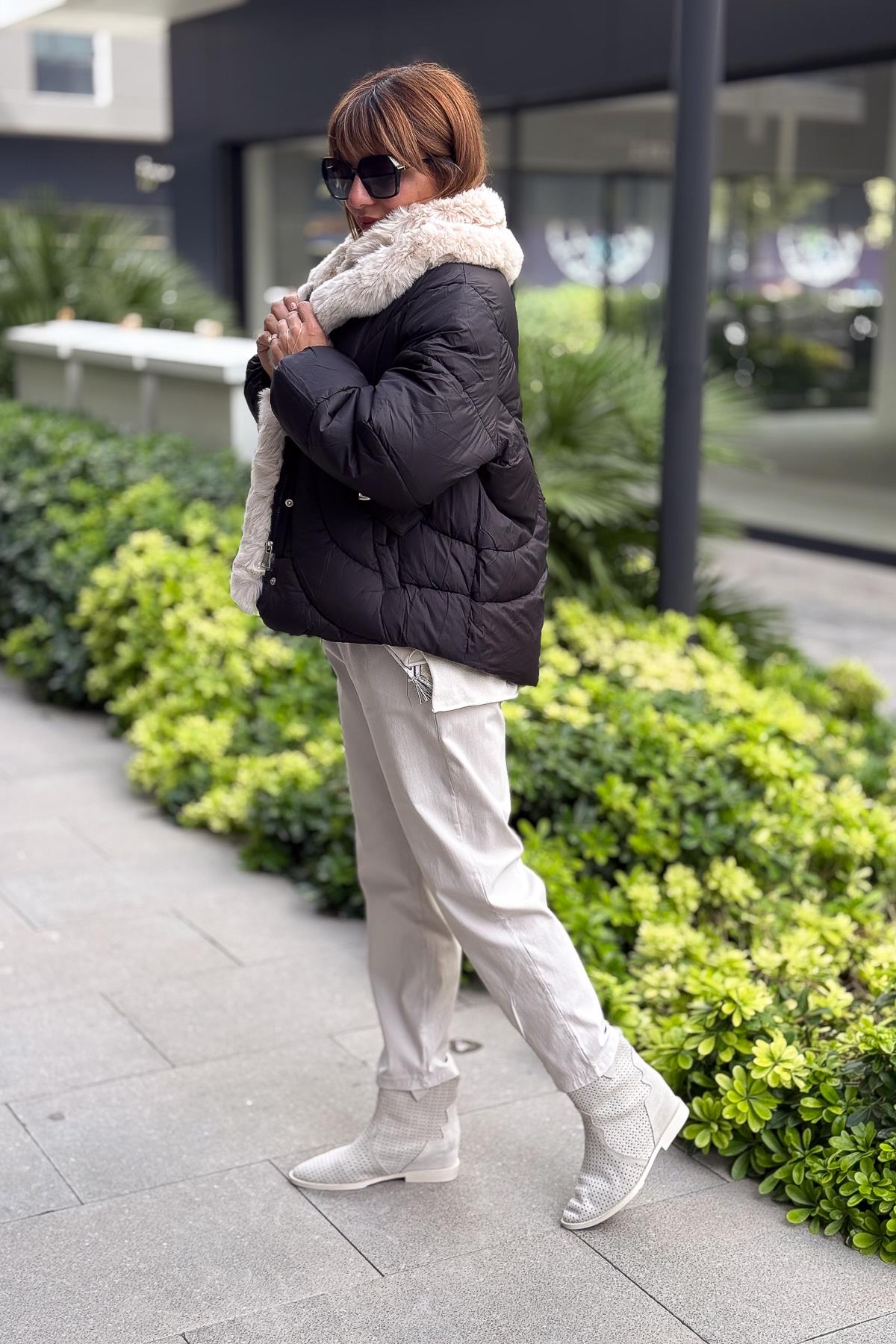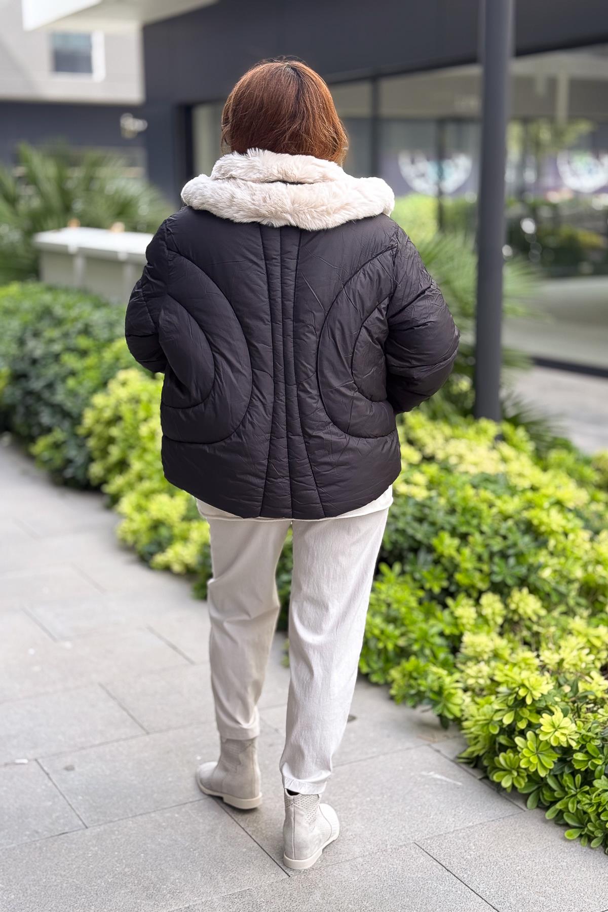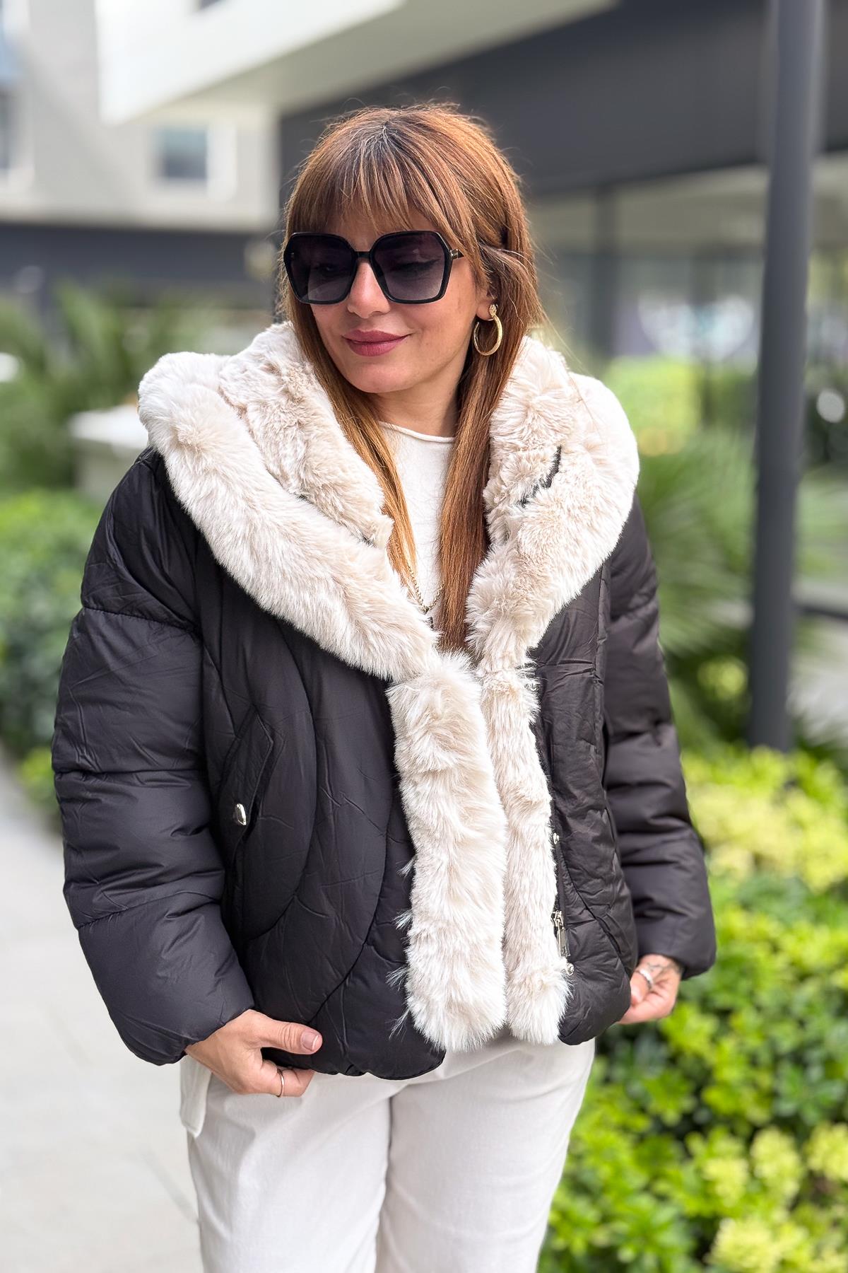 Kürk Yakalı Kalp Cıtcıtlı Mont Siyah Renk