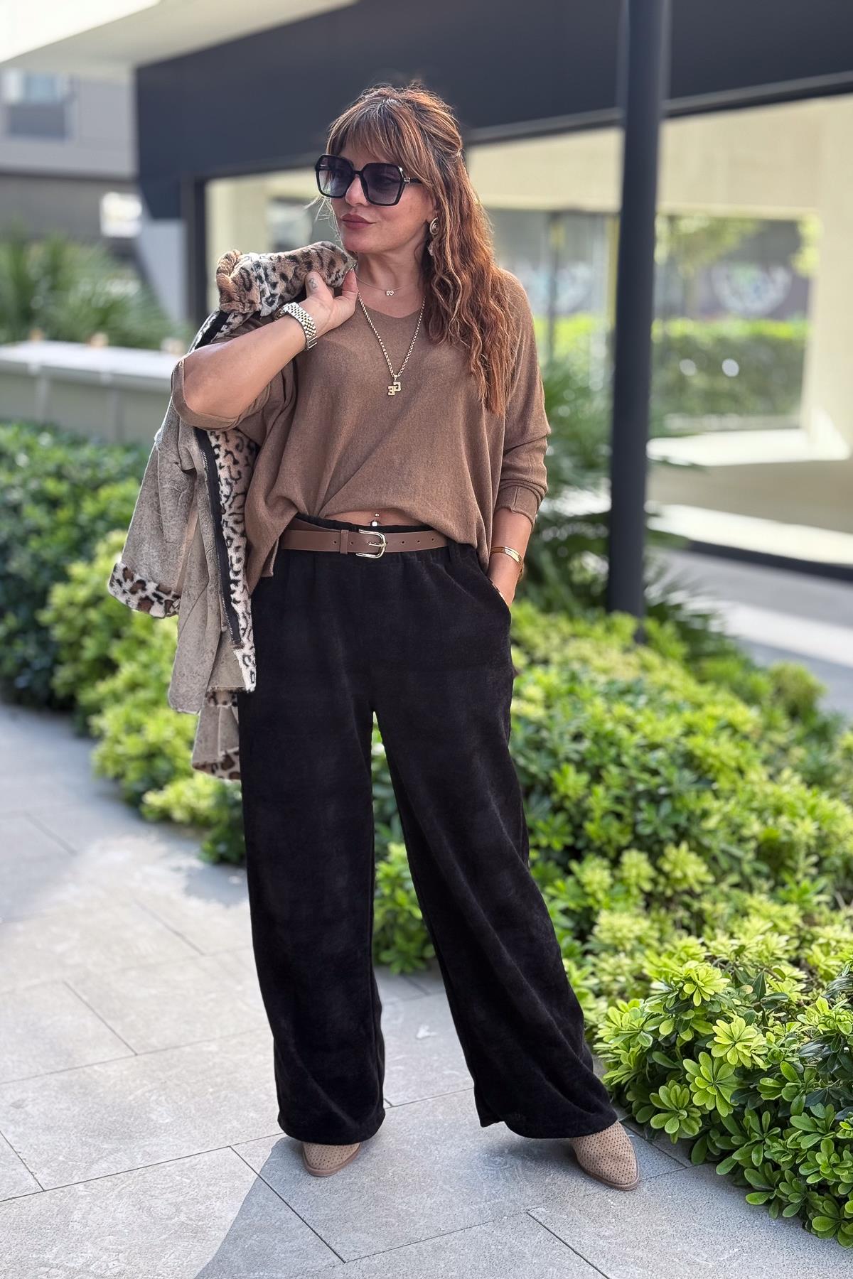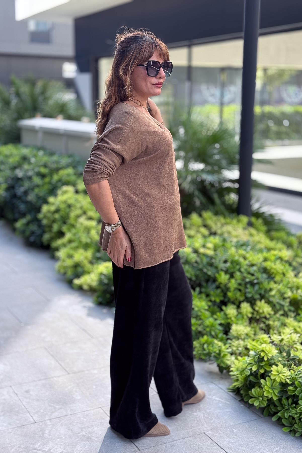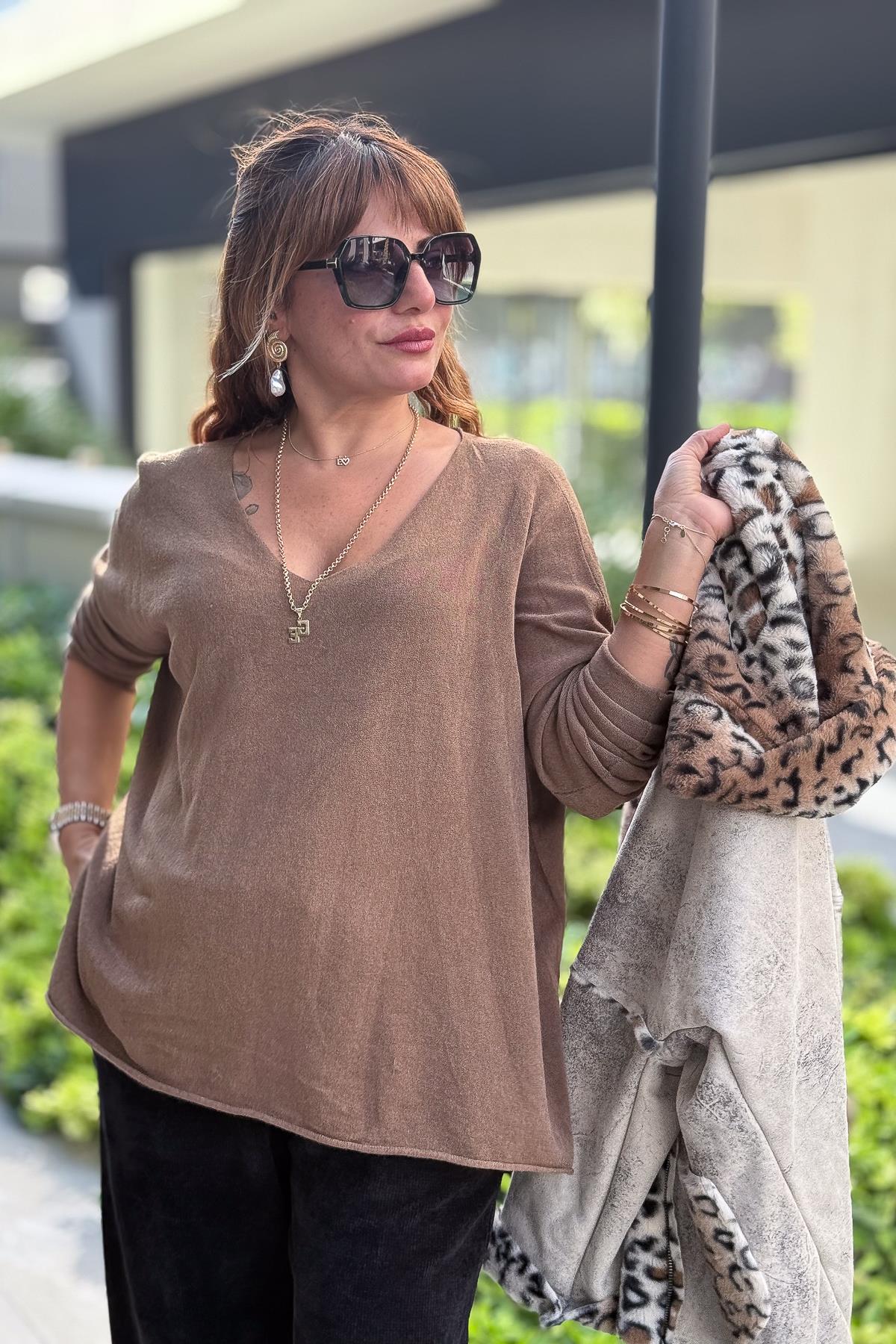 Kuzu Yünü V Yaka Triko Deve Tüyü Renk