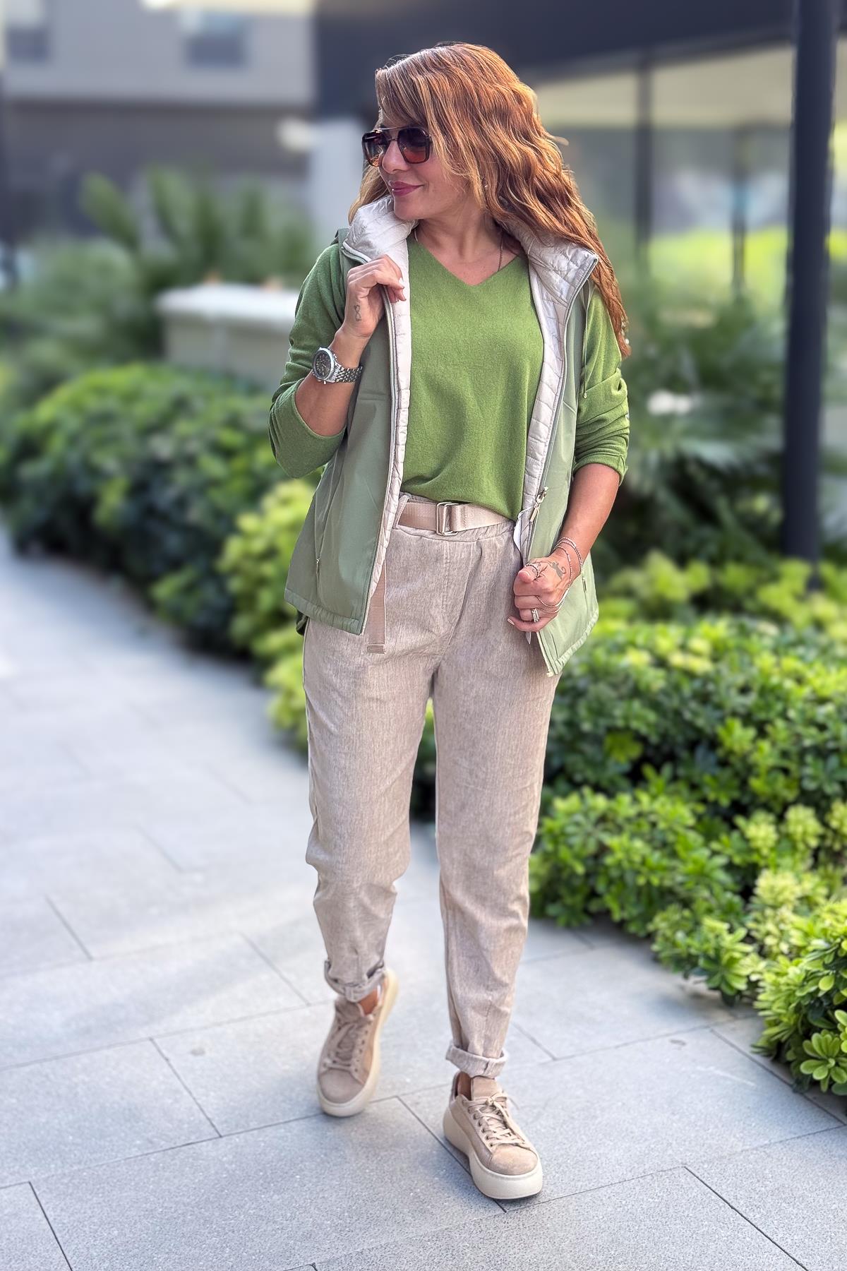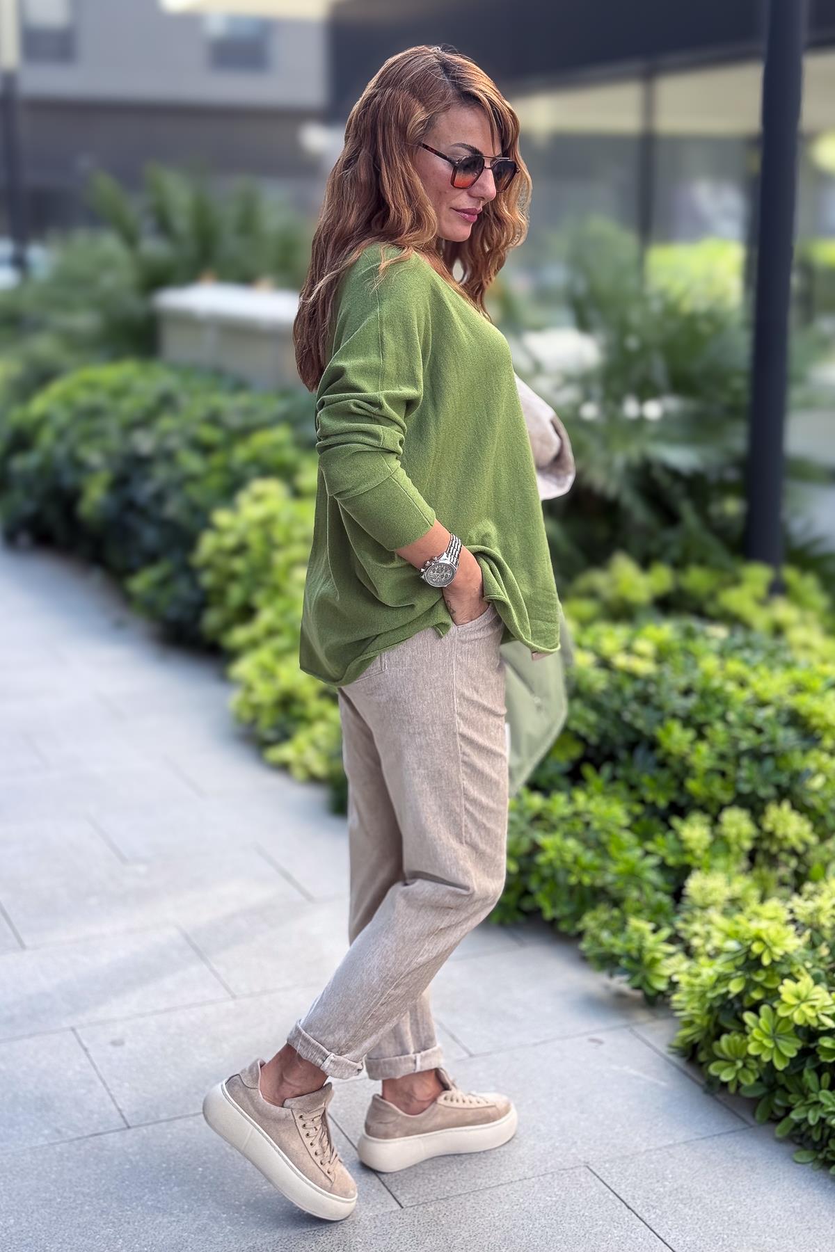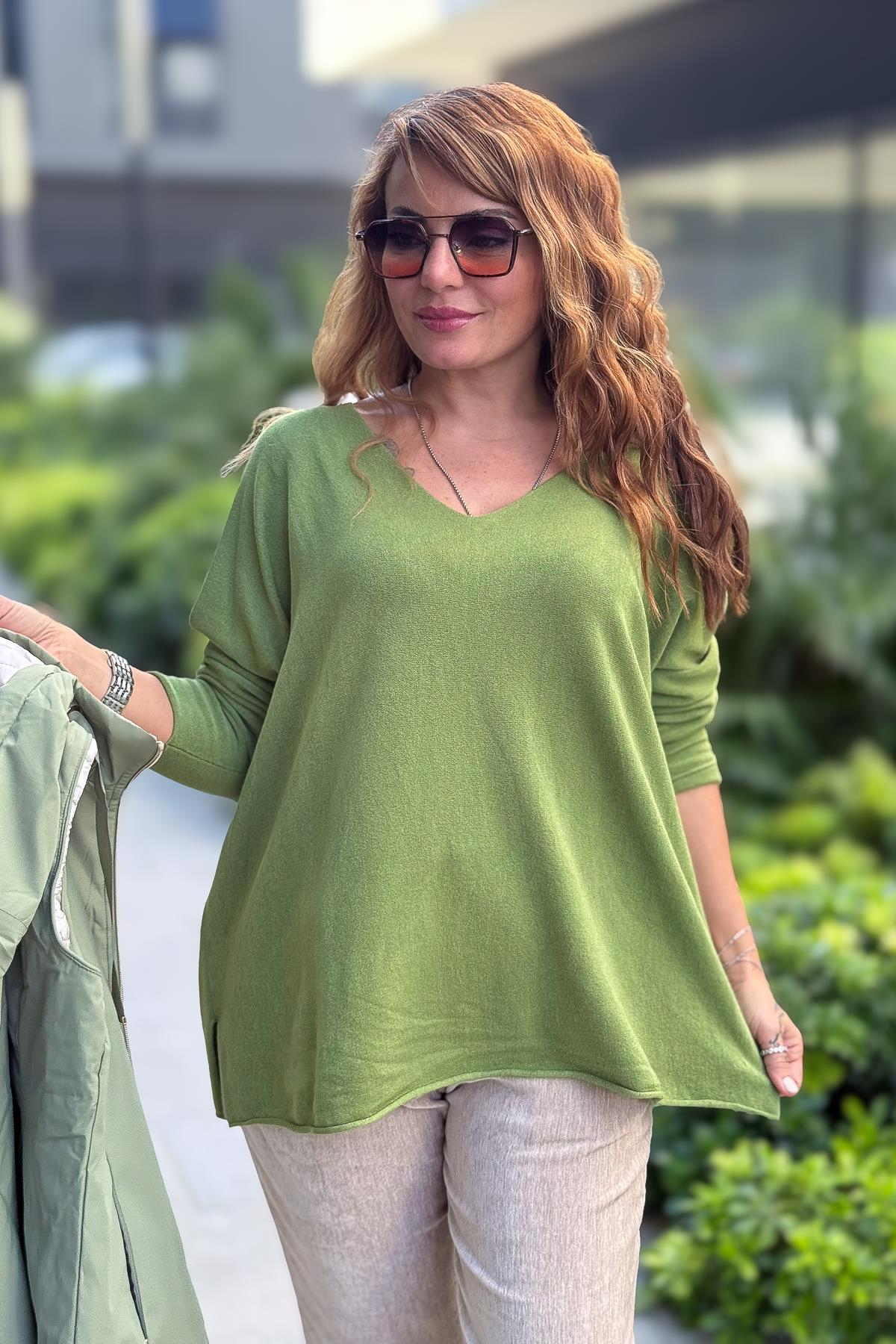 Kuzu Yünü V Yaka Triko Fıstık Yeşil Renk