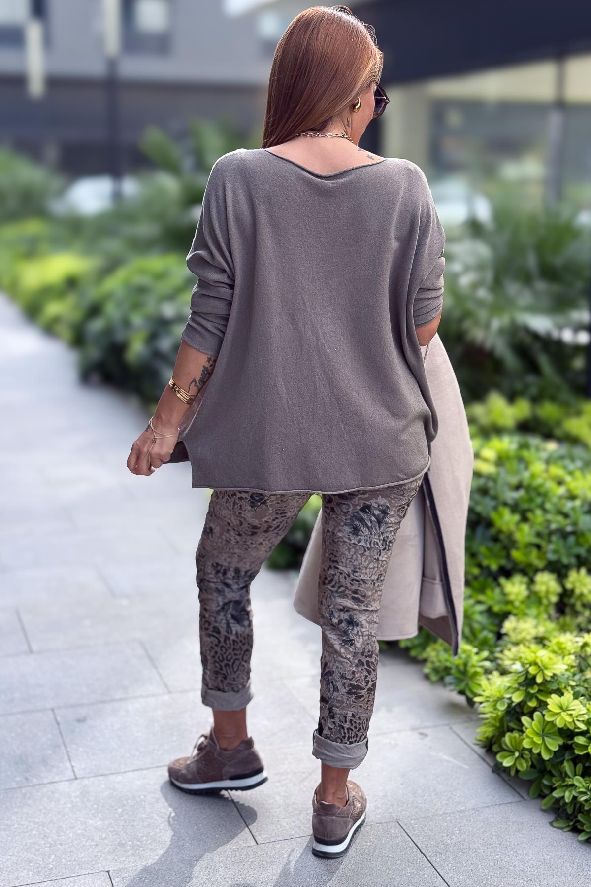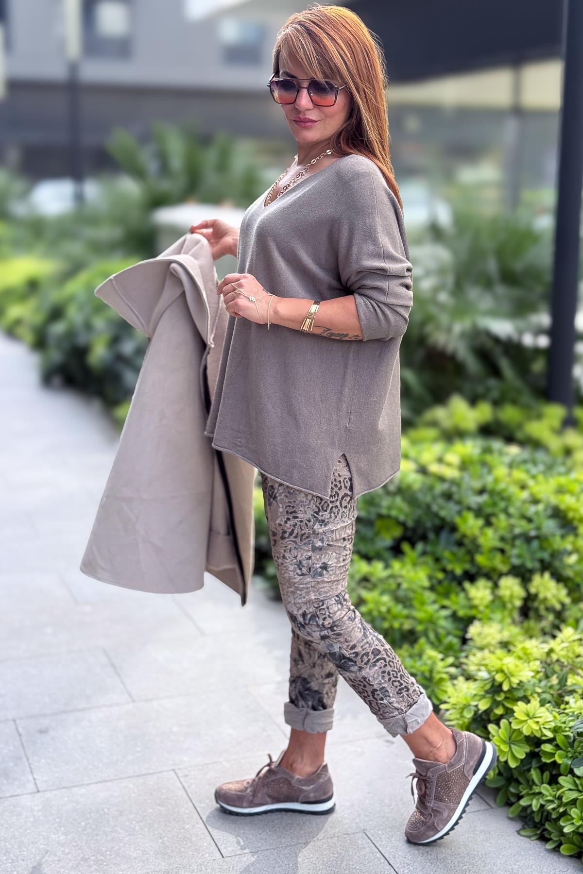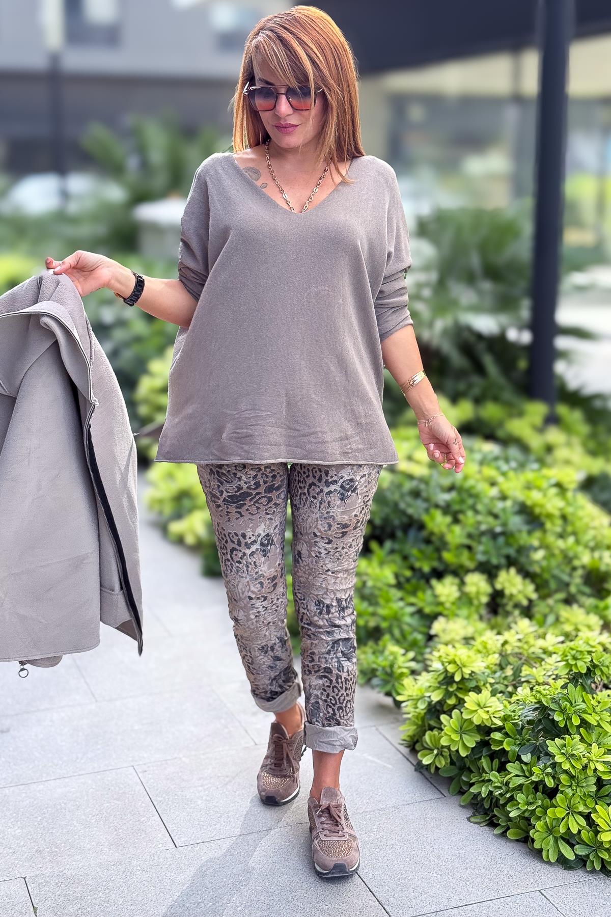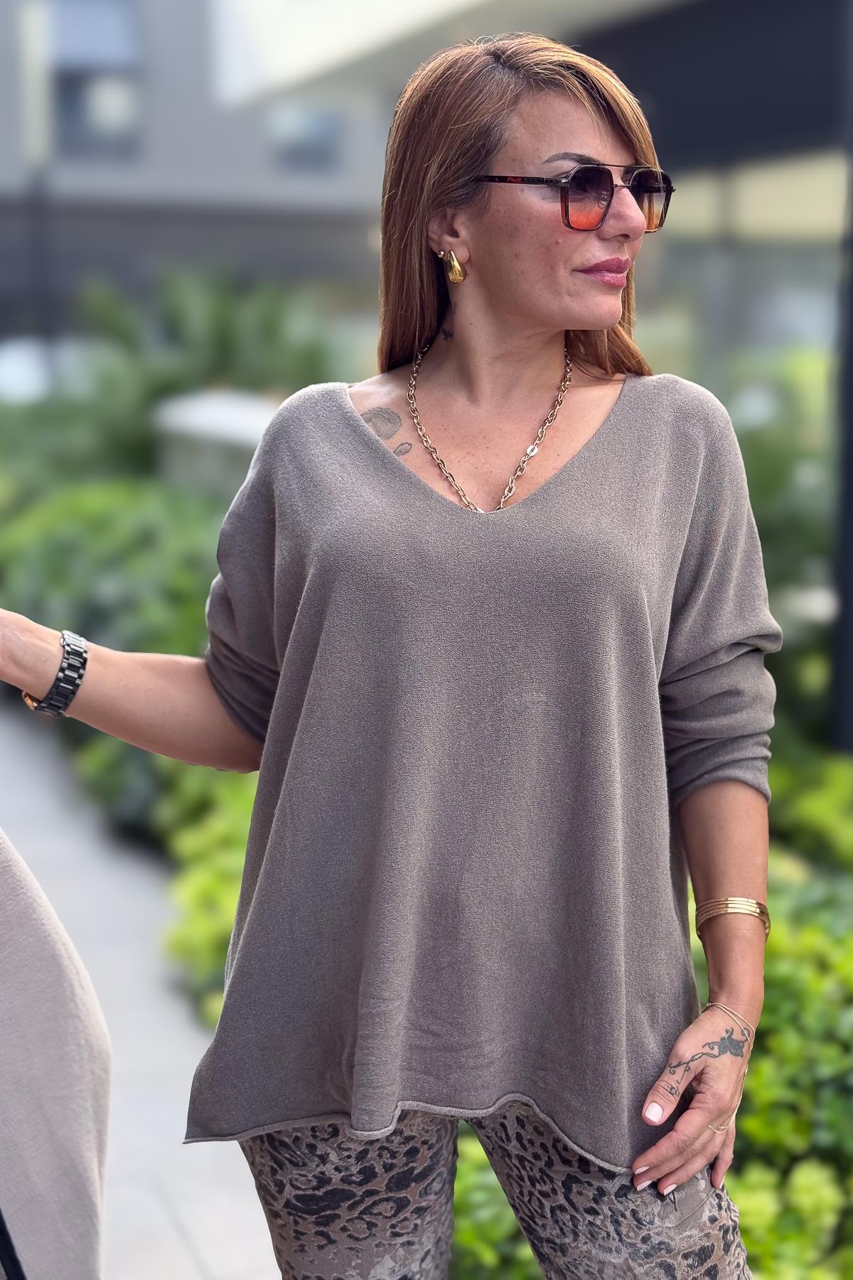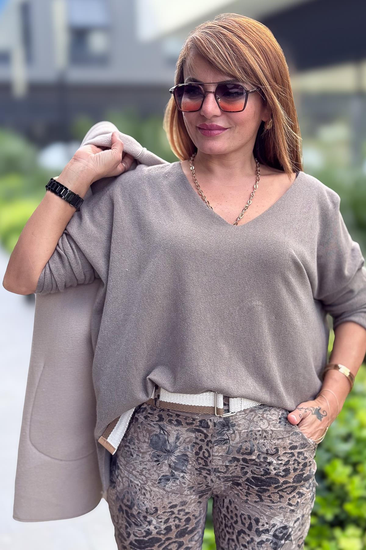 Kuzu Yünü V Yaka Triko Vizon Renk