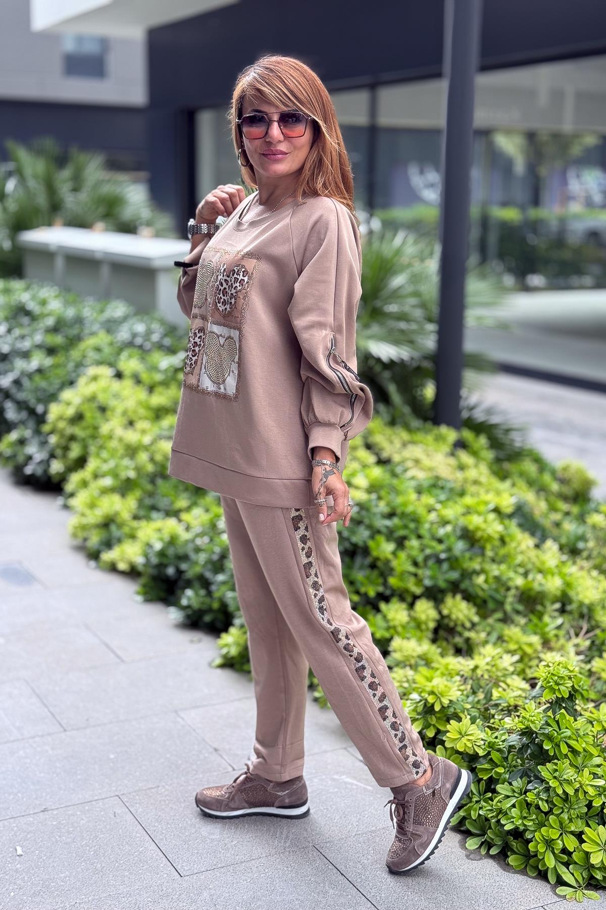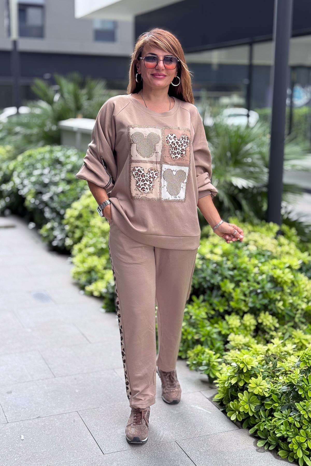 Mickey Ve Taş Detaylı Modal Kumaş Sweet Vizon Renk