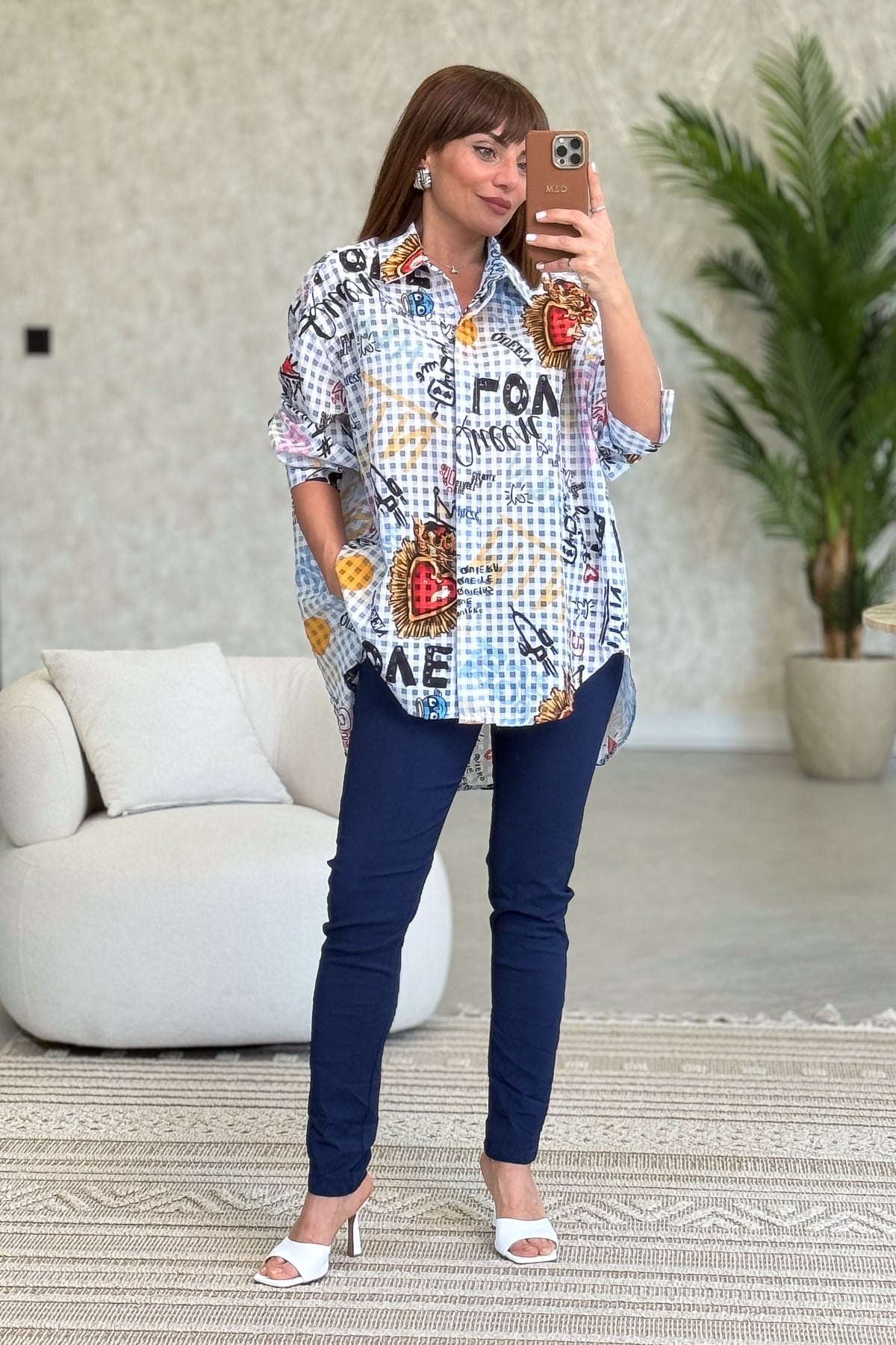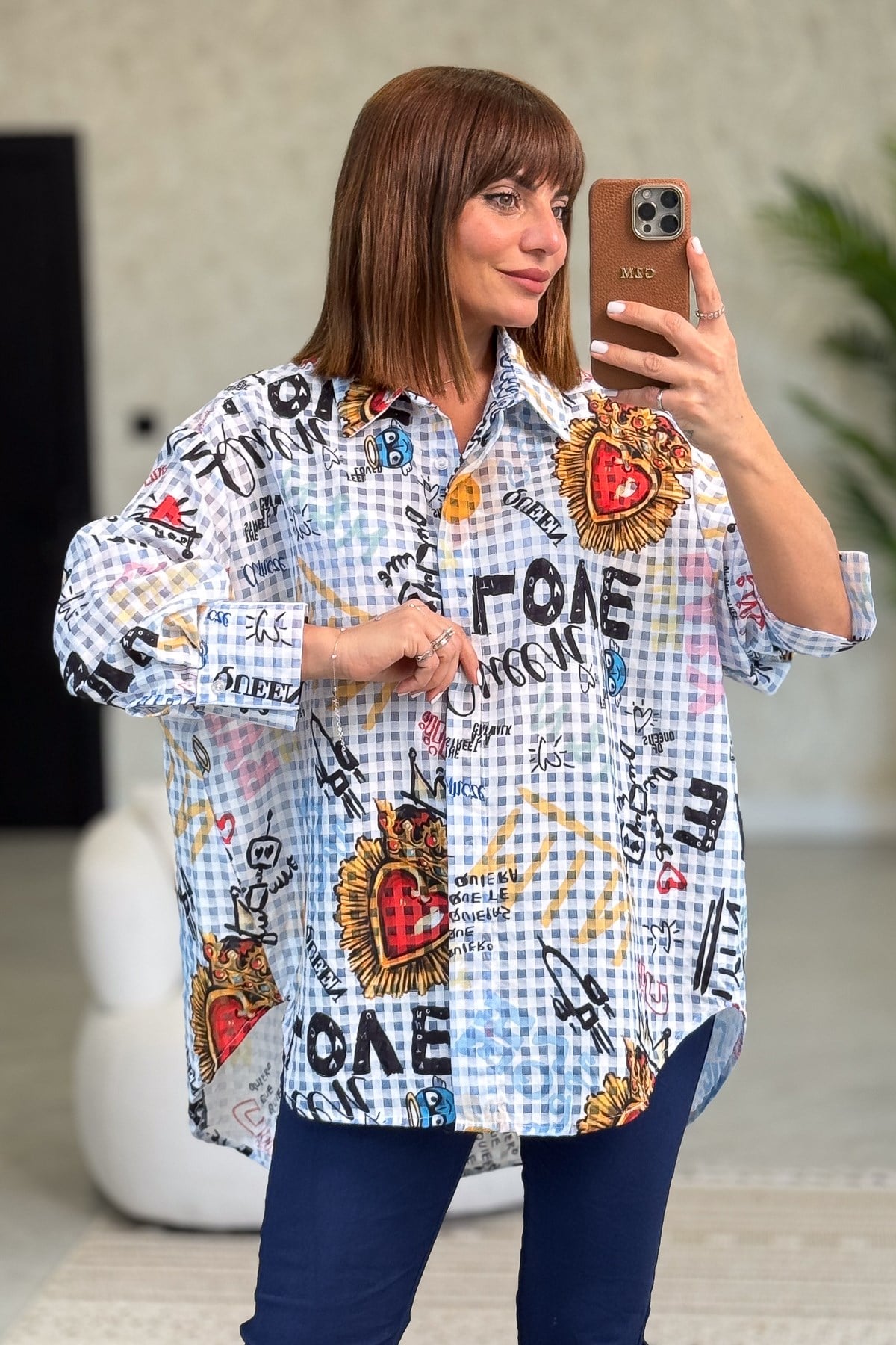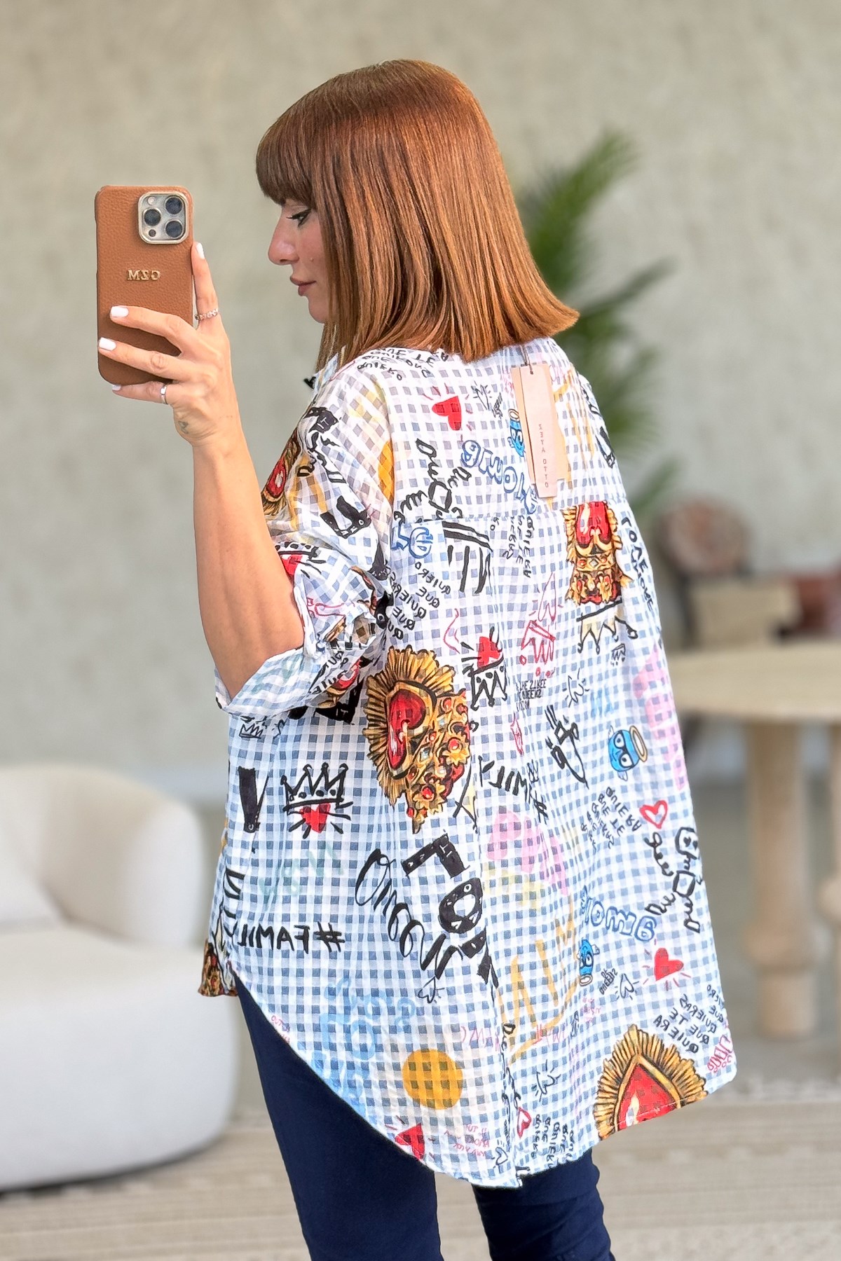 Pötikare Desen Oversize Gömlek Bebe Mavi Renk